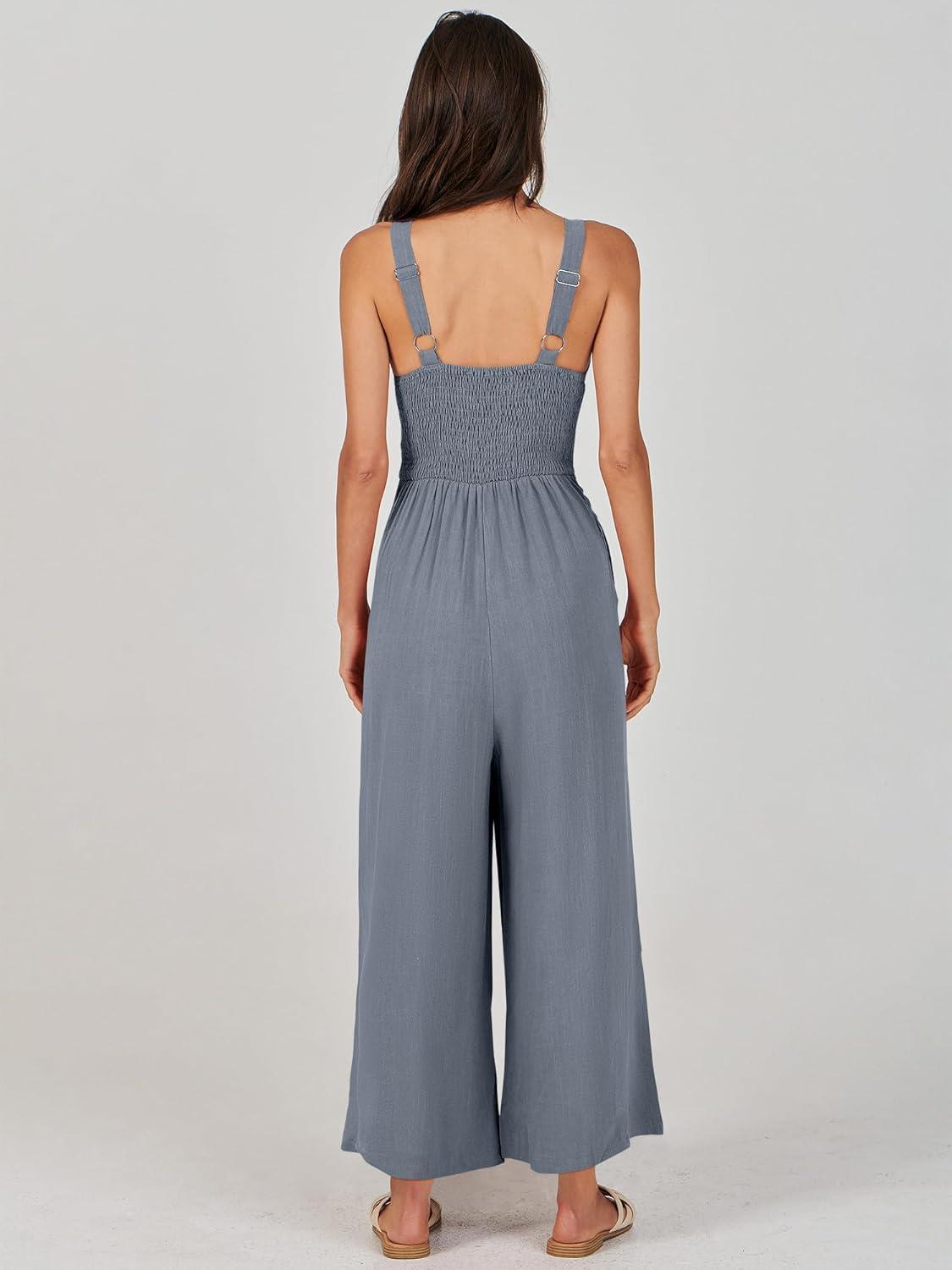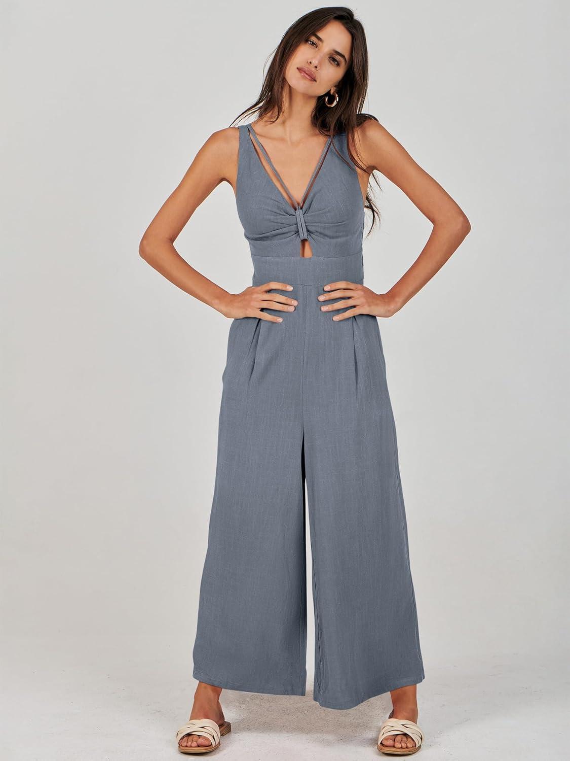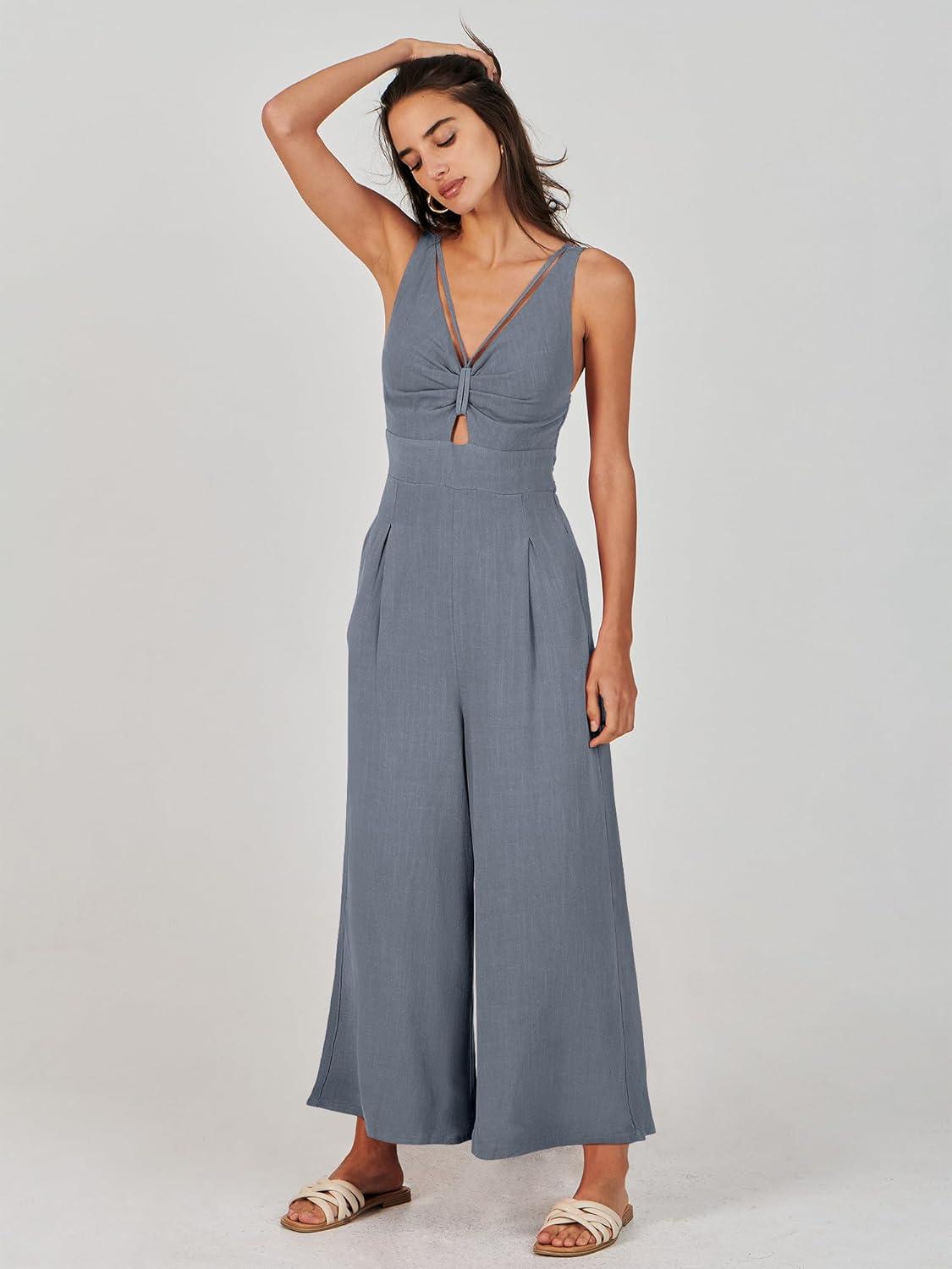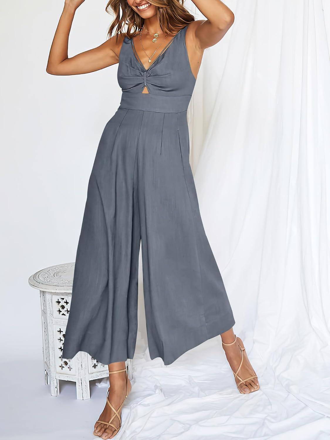 ANRABESS Women’s Jumpsuits Summer Wide Leg Sleeveless V Neck Casual Dressy Linen Pants Rompers 2025 Vacation Beach Outfits(Dark Grey)