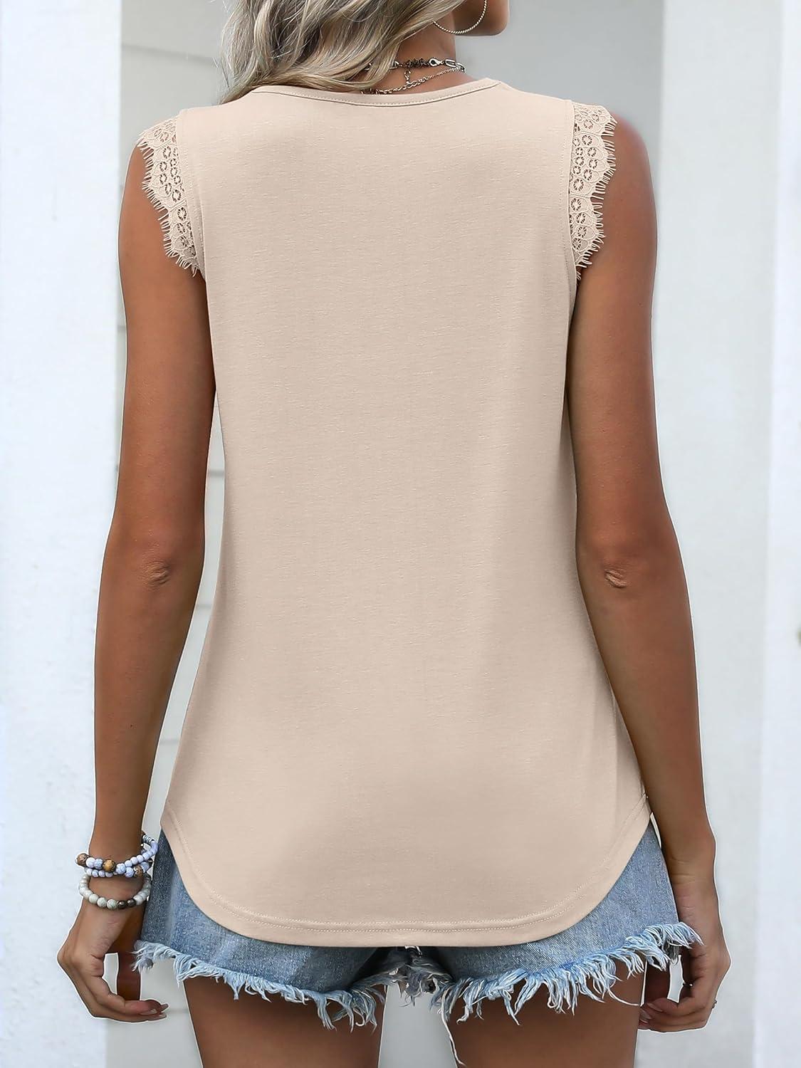 ANRABESS Womens Lace Trim Tank Tops V Neck Sleeveless Shirts 2025 Summer Casual Trendy Dressy Cami Top(Khaki)