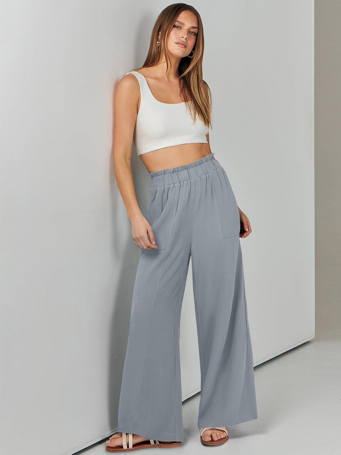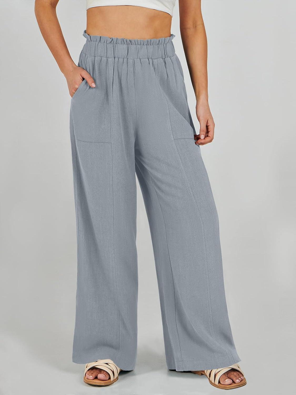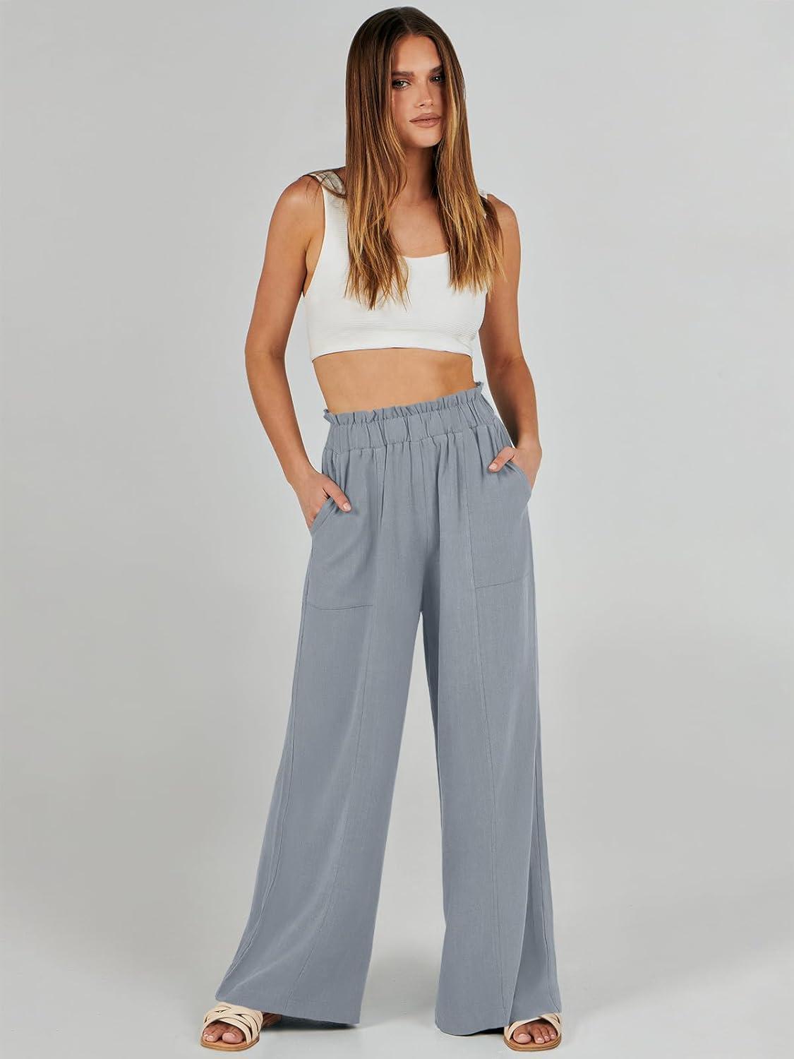 ANRABESS Womens Linen Pants 2025 Summer Casual Loose Wide Leg Palazzo Pants High Waist Flowy Beach Trousers Work Outfits(Gray)