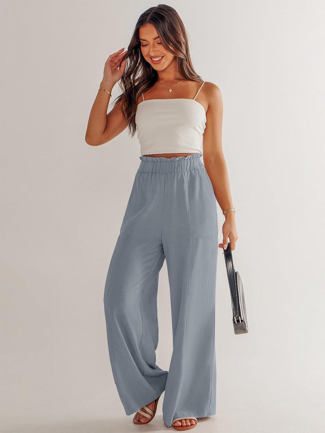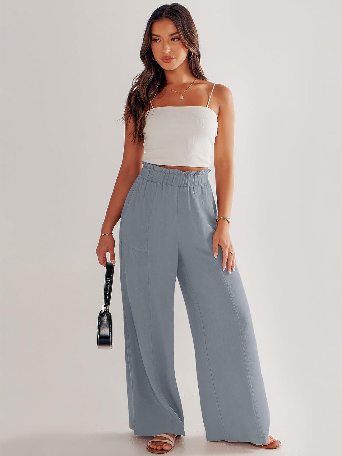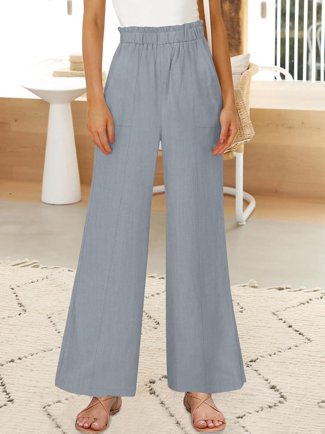 ANRABESS Womens Linen Pants 2025 Summer Casual Loose Wide Leg Palazzo Pants High Waist Flowy Beach Trousers Work Outfits(Gray)