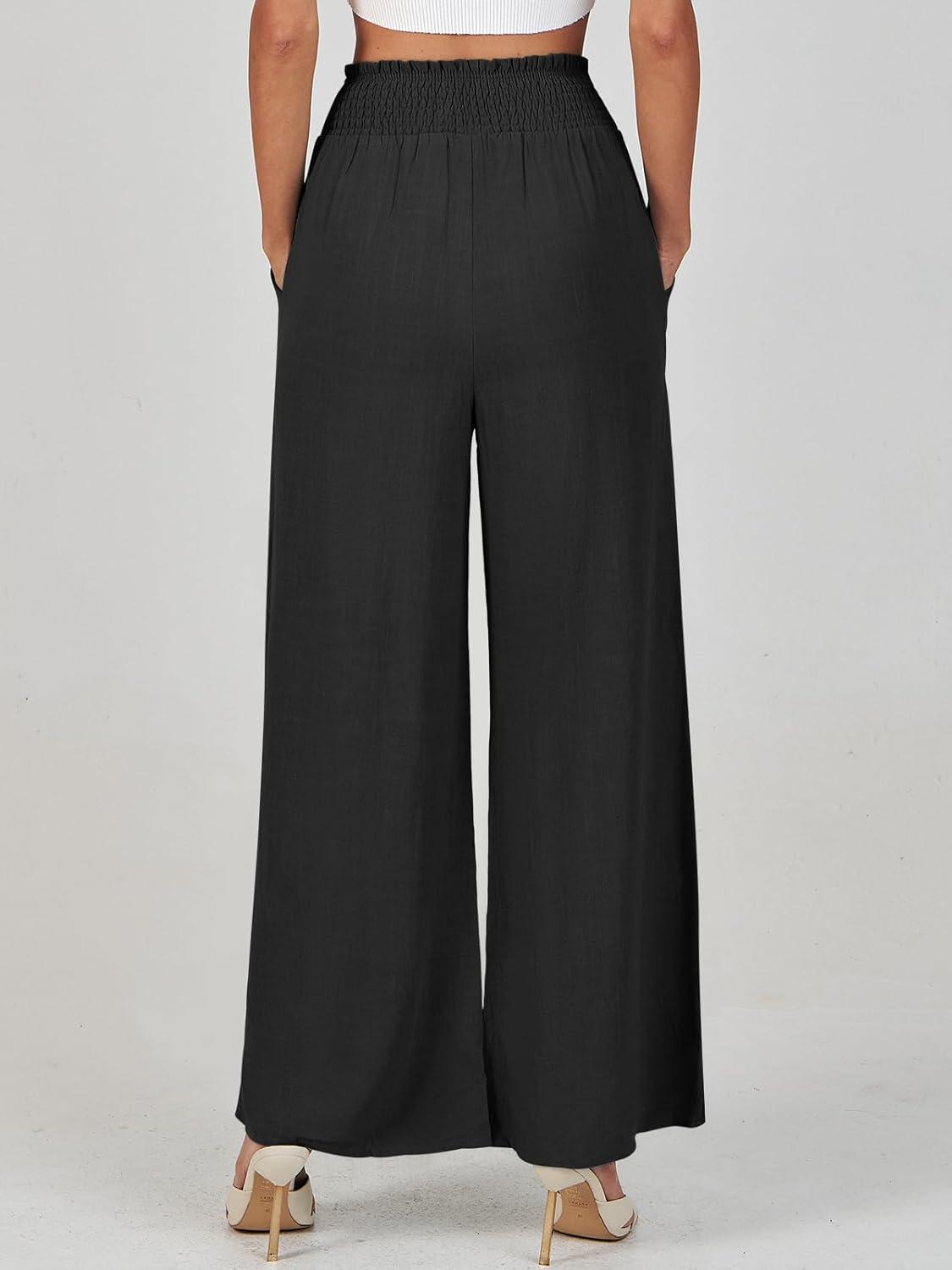 ANRABESS Women’s Linen Pants Summer Casual Palazzo Beach Pant Drawstring High Waist Wide Leg Trousers Vacation Outfits(Black)