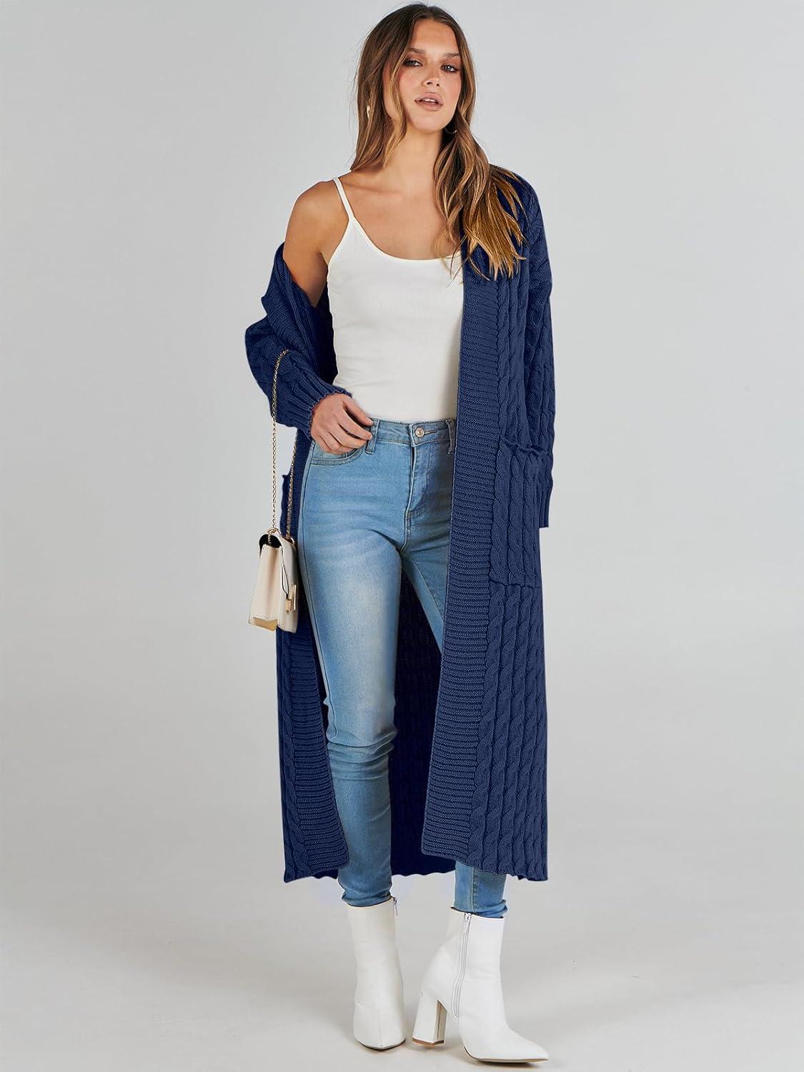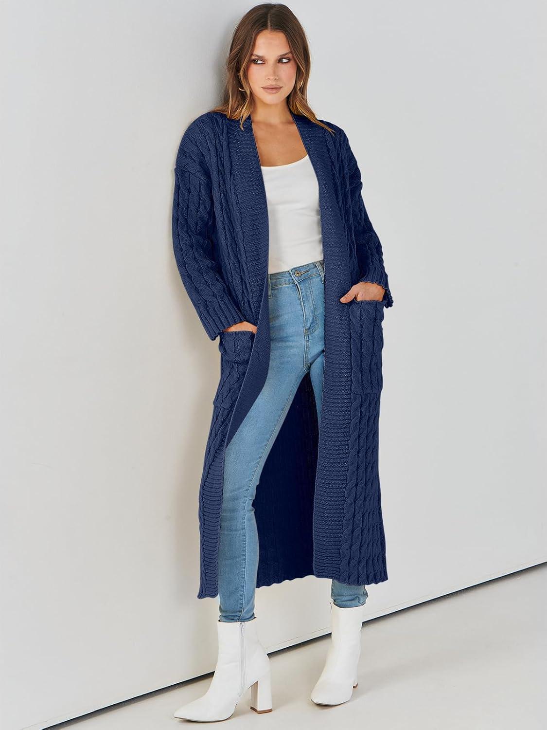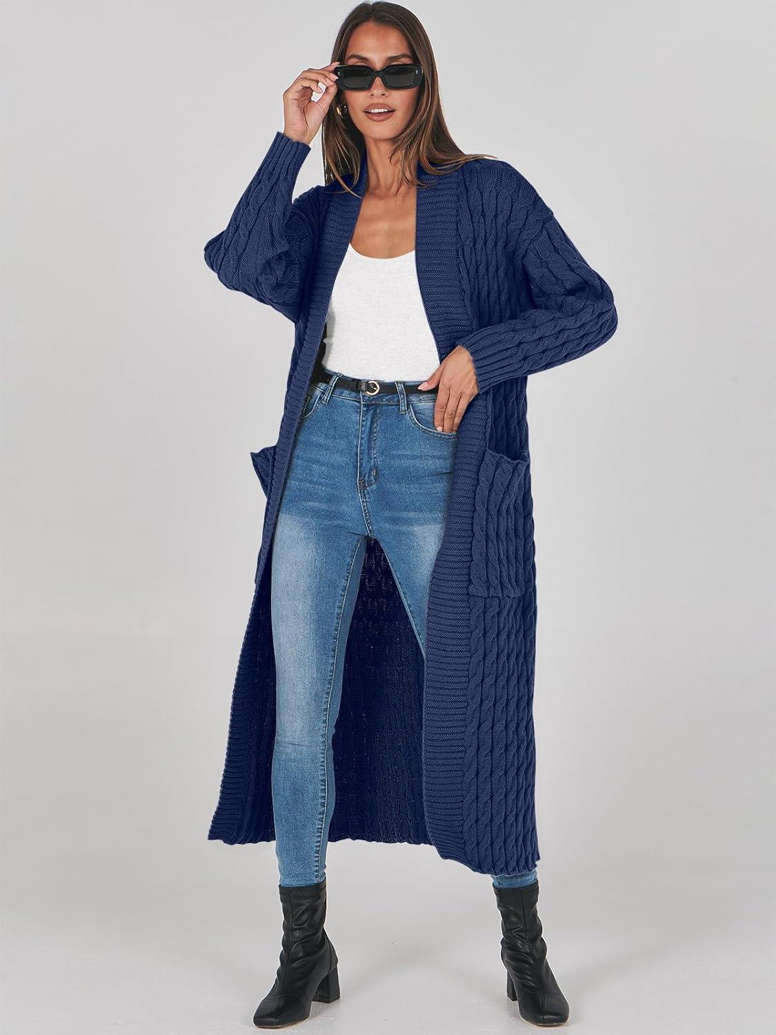 ANRABESS Womens Long Cardigan Sweater 2025 Oversized Coat Long Sleeve Open Front Knit Maxi Outwear Fall Trendy Jacket Clothes(Navy Blue)
