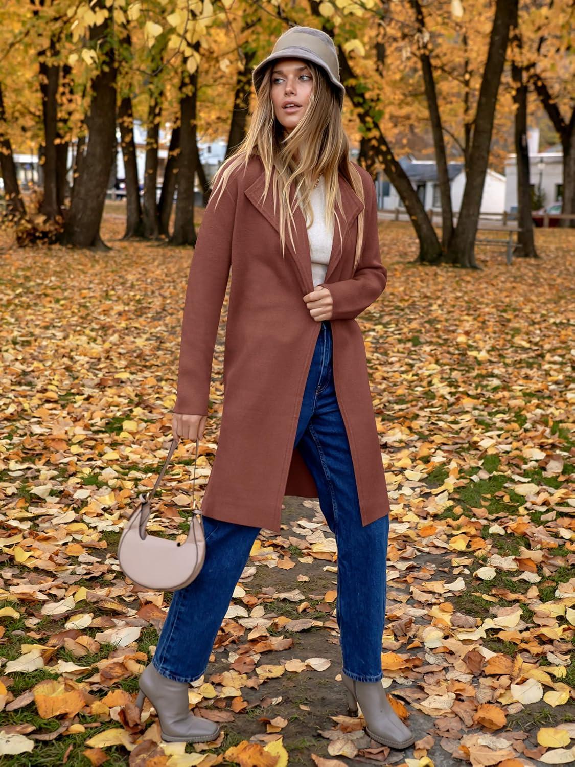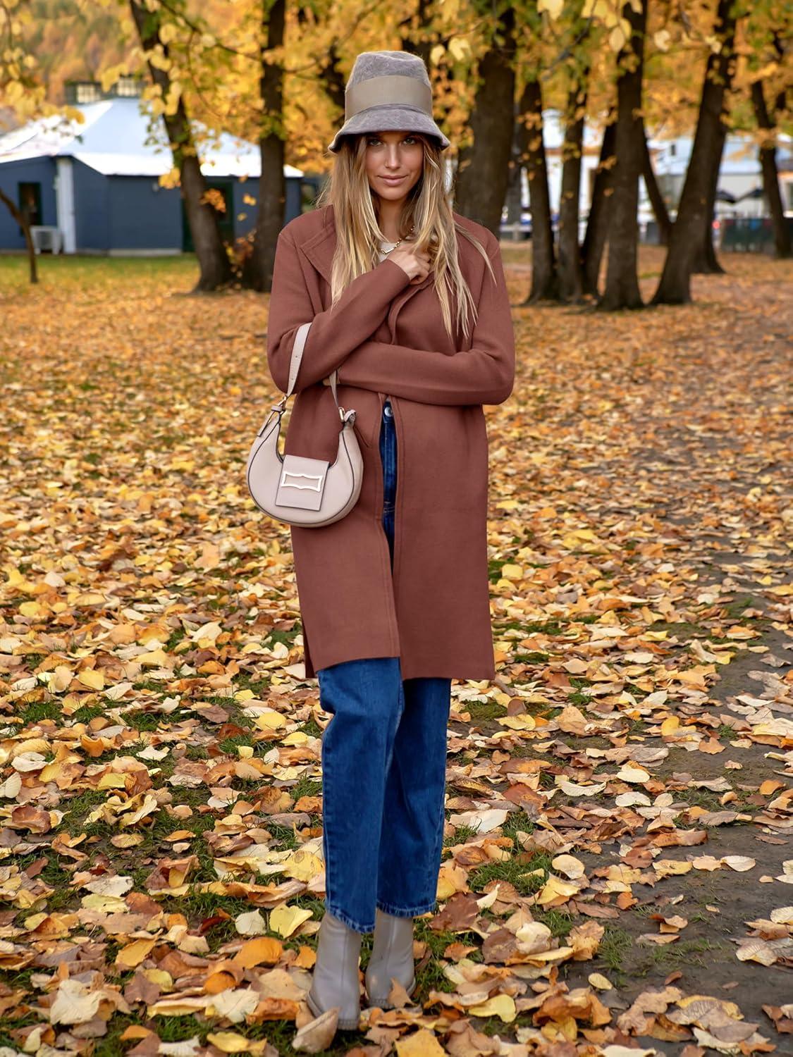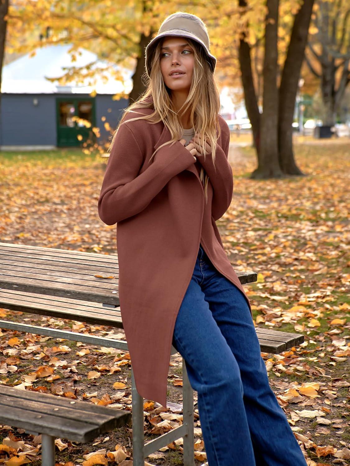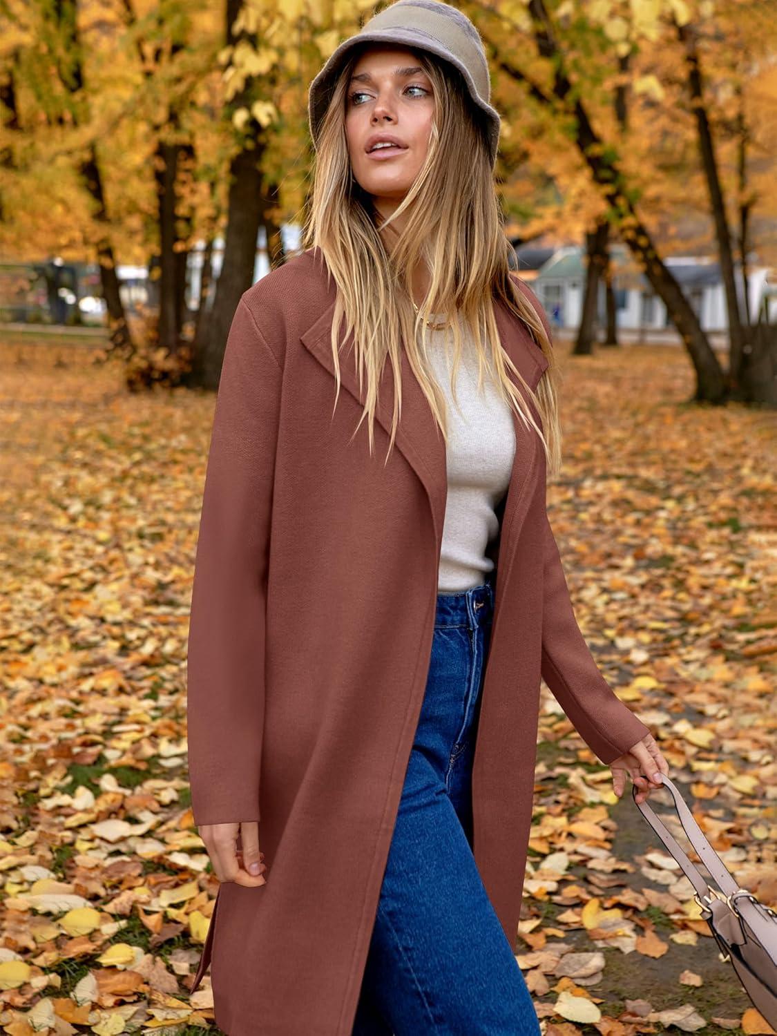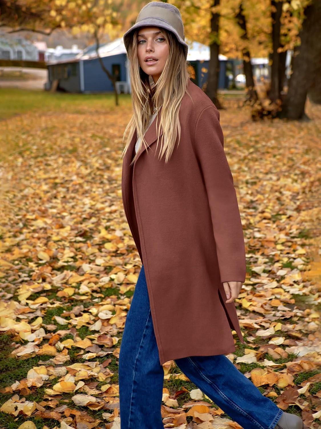 ANRABESS Women’s Long Cardigans Sweater 2025 Fall Dressy Casual Lapel Knit Warm Trench Coatigan Oversized Blazer Jacket Coat(Coffee)