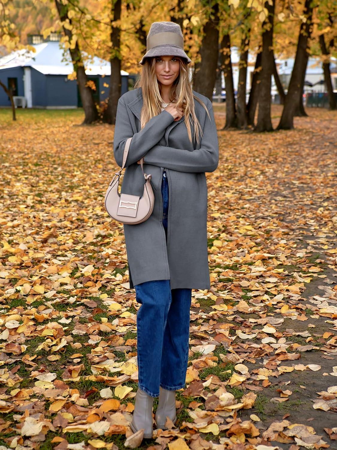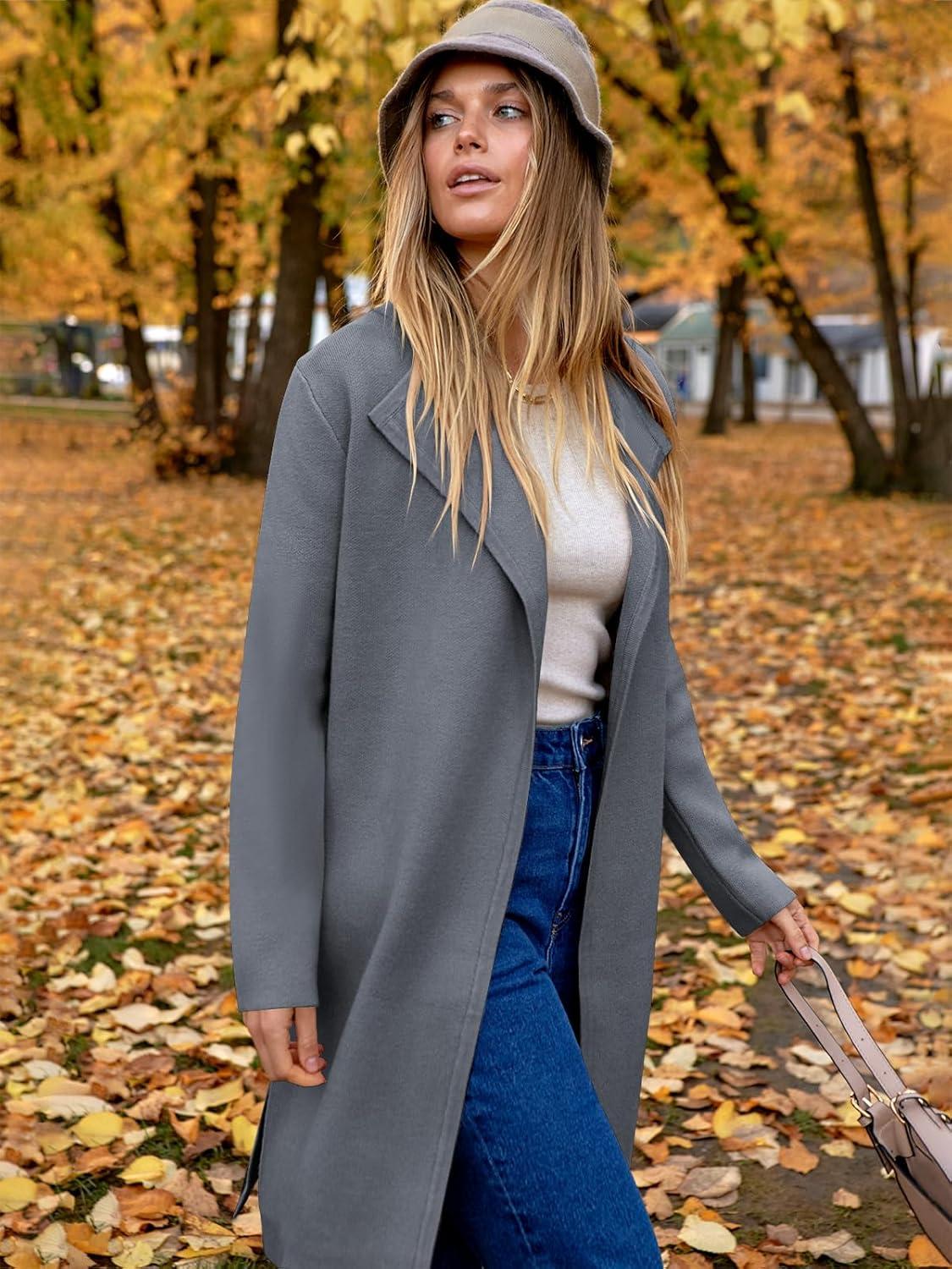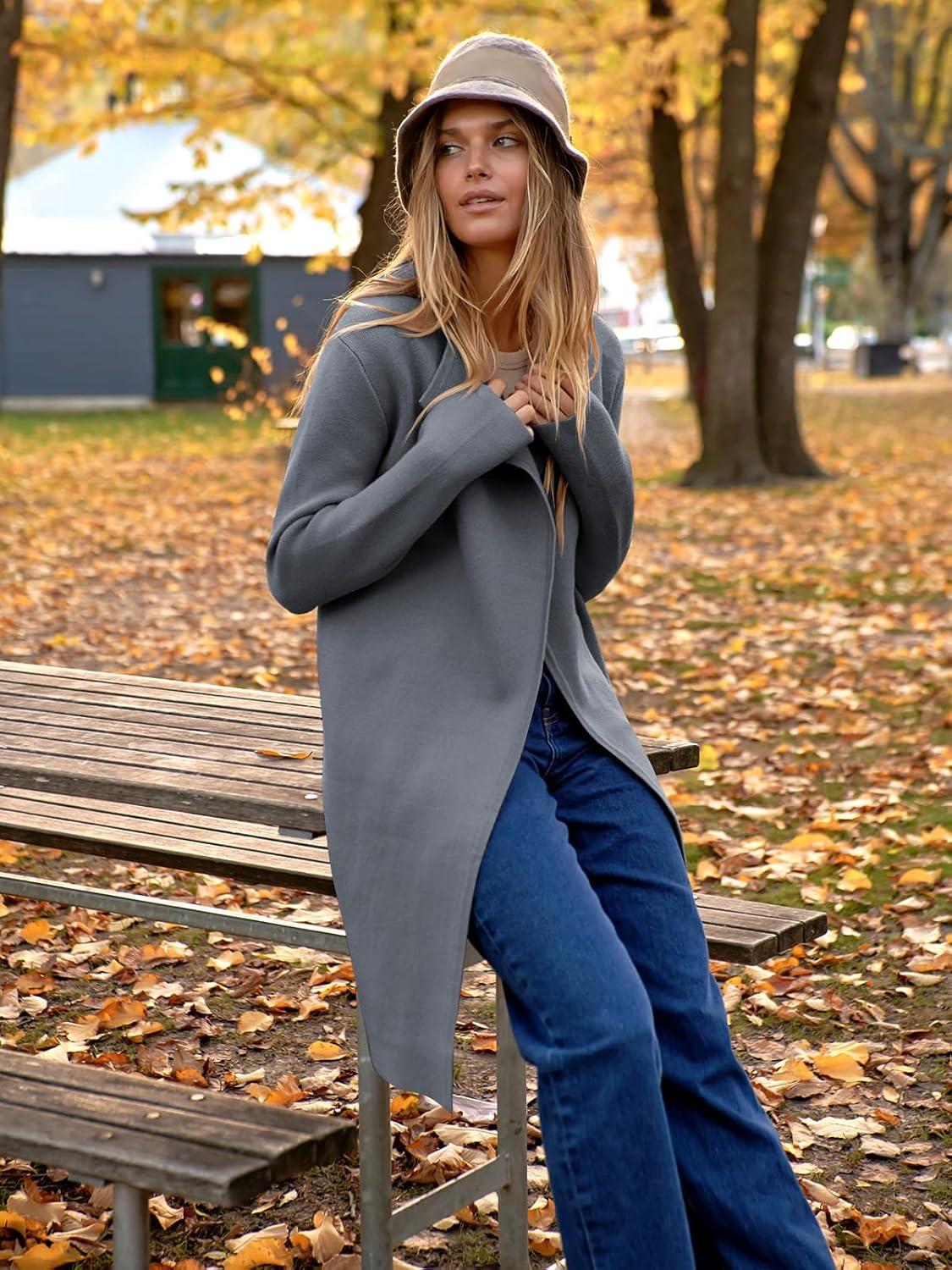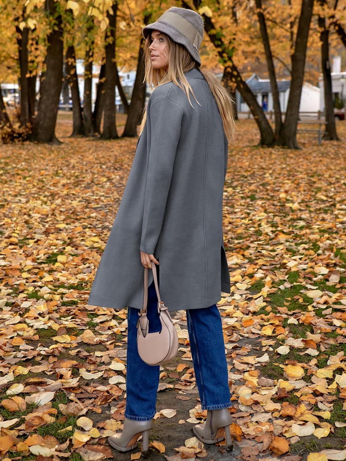 ANRABESS Women’s Long Cardigans Sweater 2025 Fall Dressy Casual Lapel Knit Warm Trench Coatigan Oversized Blazer Jacket Coat(Dark Grey)