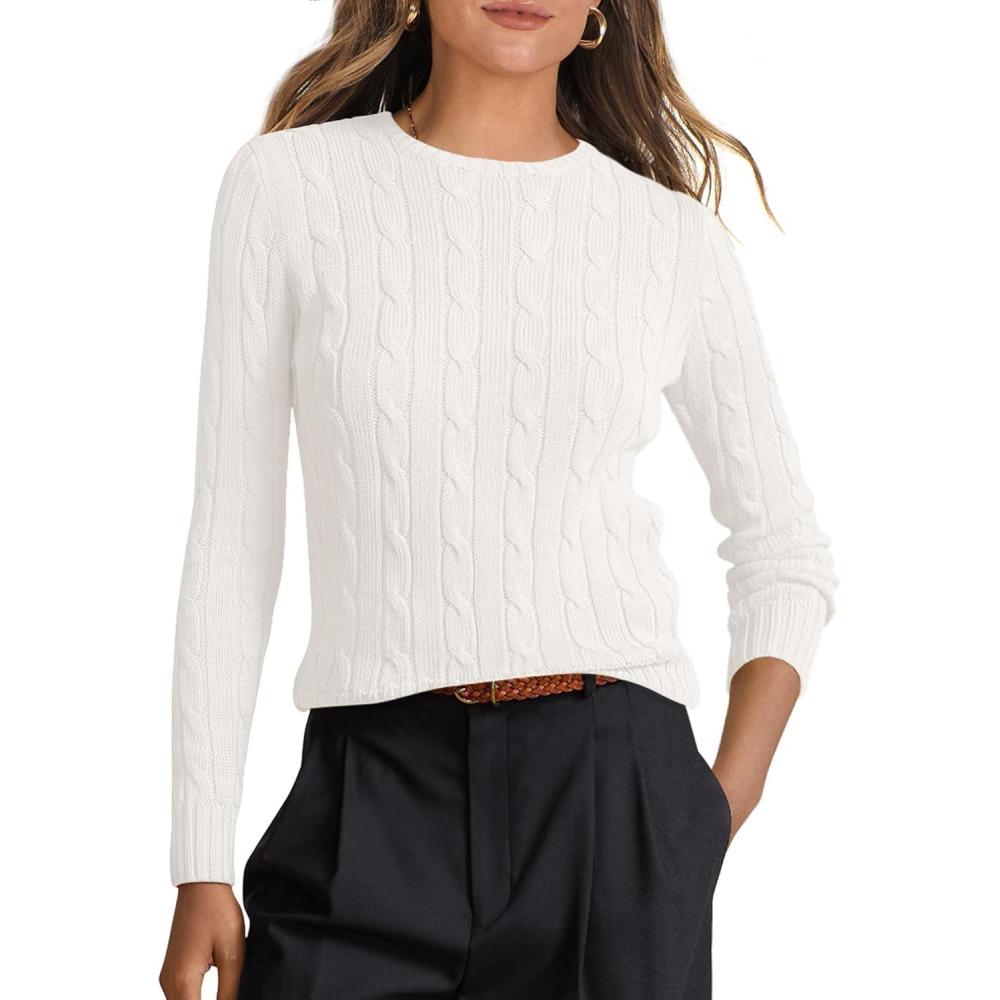 ANRABESS Womens Long Sleeve Cable Knit Sweater Jumper Crewneck Pullover Soft Dressy Casual Tops Cute 2025 Fall Trendy Outfits(Off Cream White)