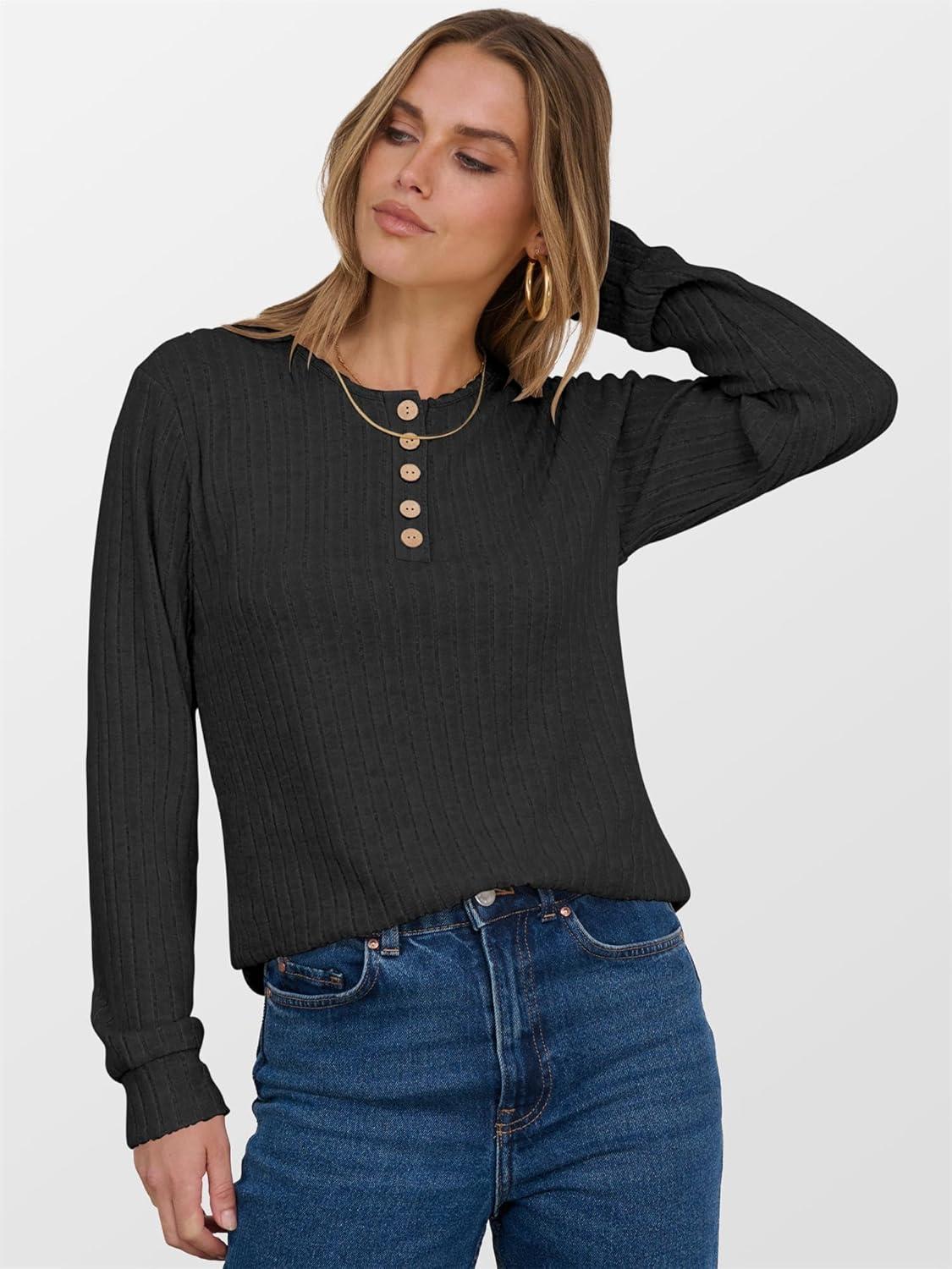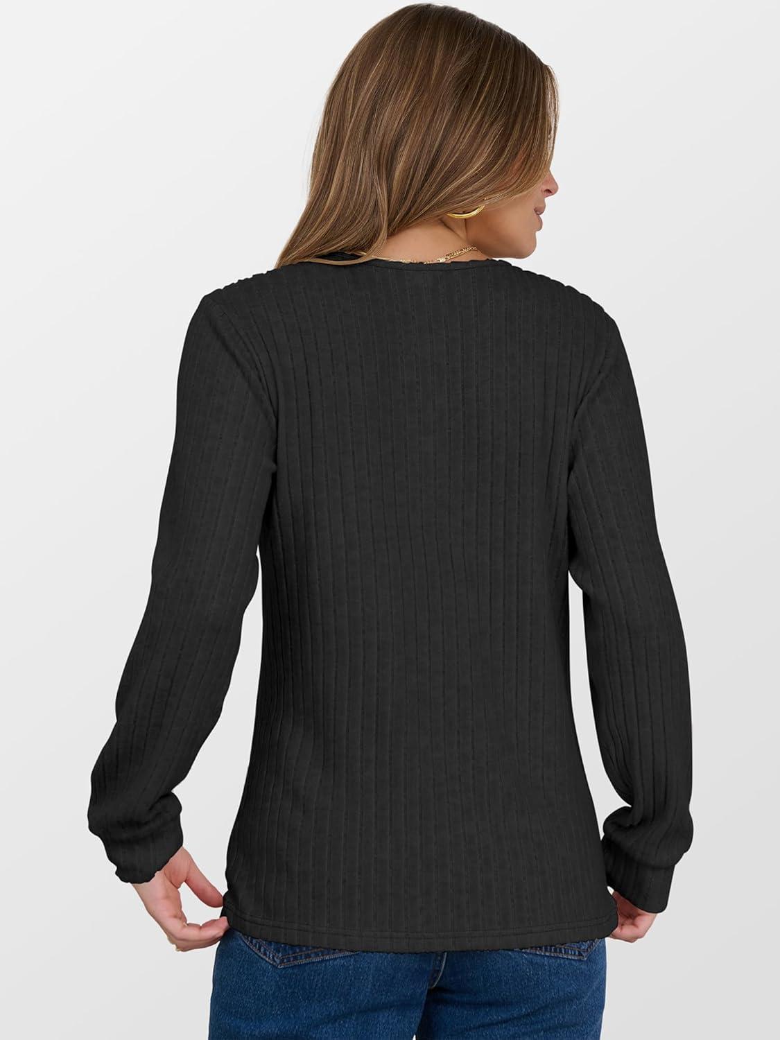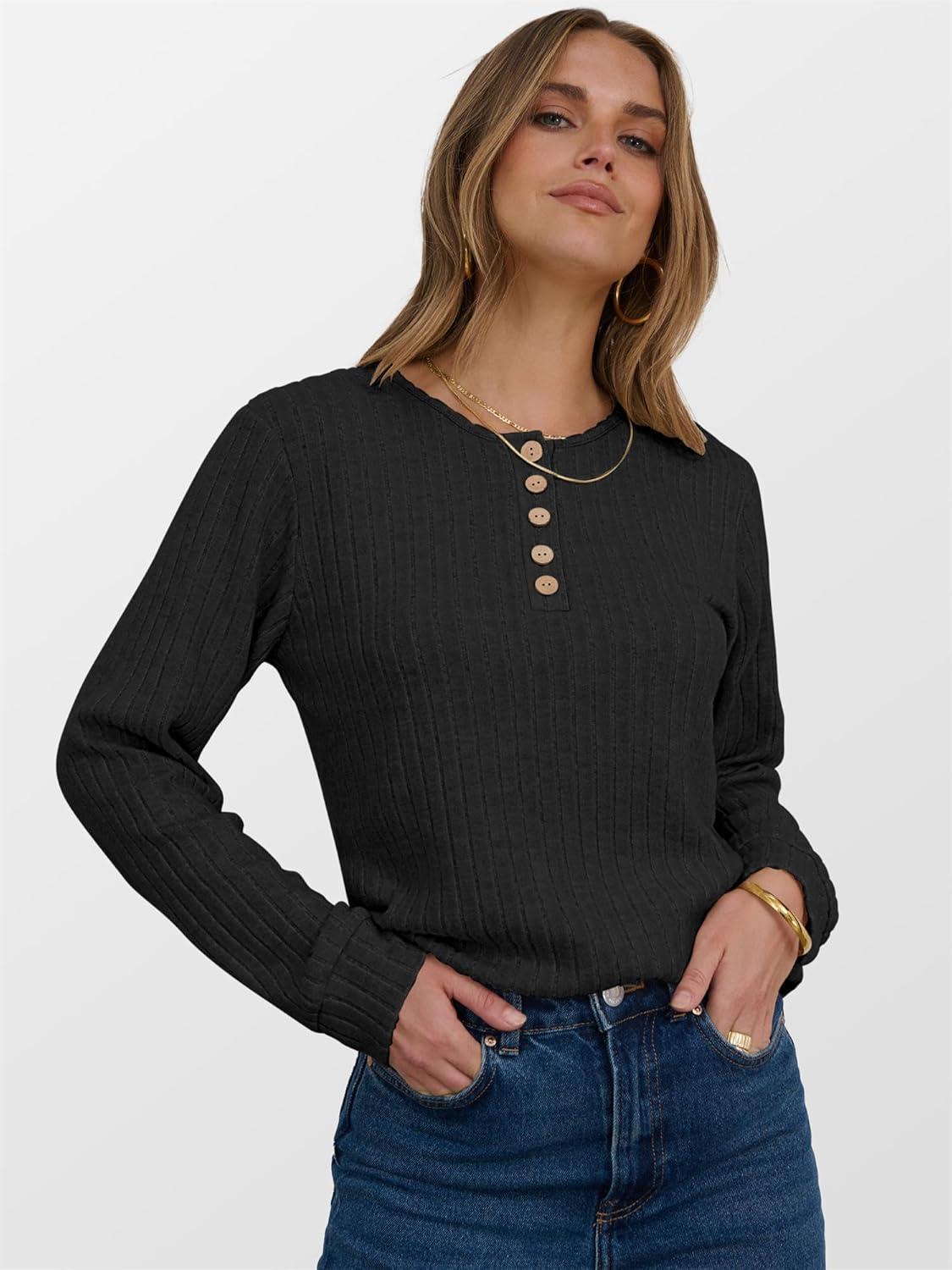 ANRABESS Womens Long Sleeve Henley Shirts Button Down Tunic Tops Fall Lightweight Sweaters Business Casual Blouses 2025(Black)