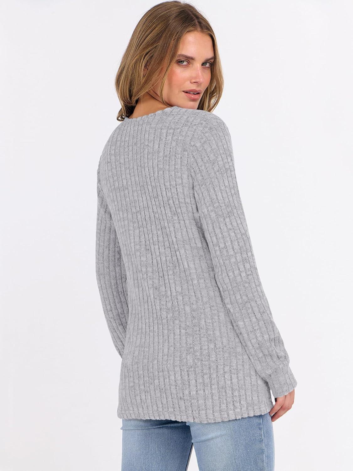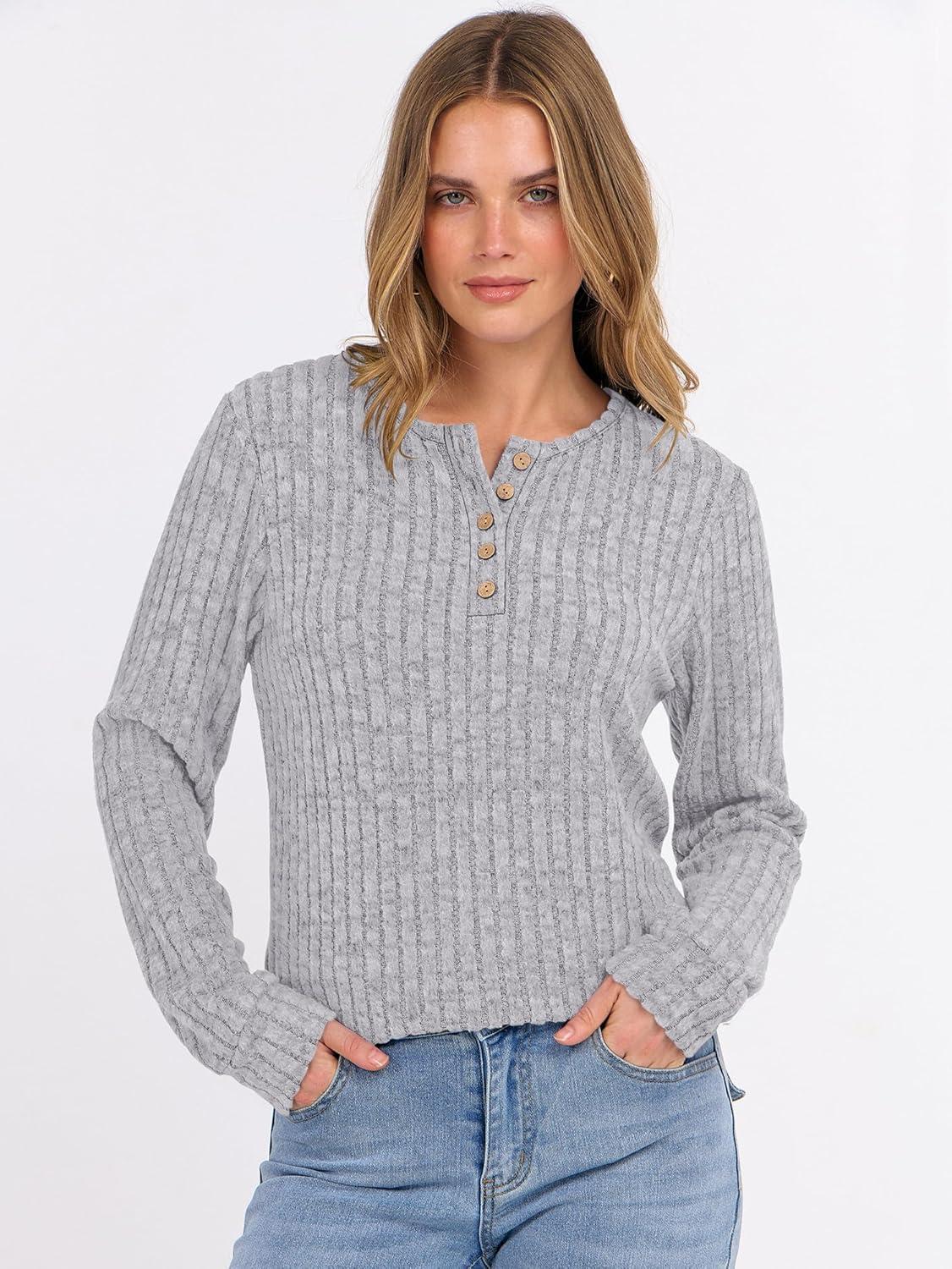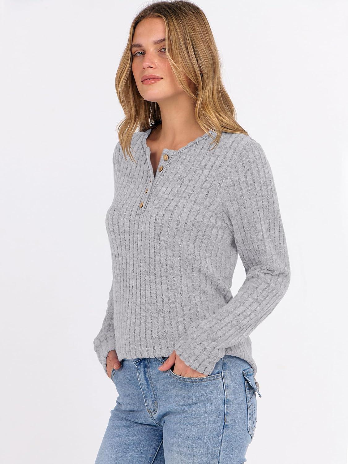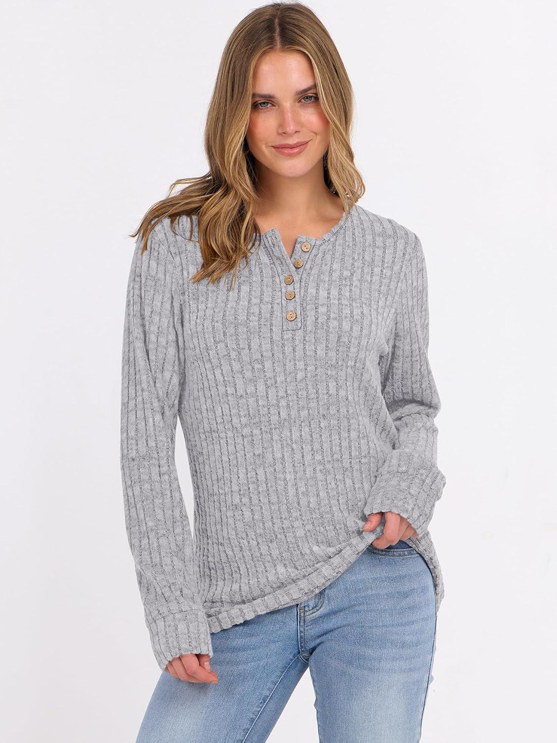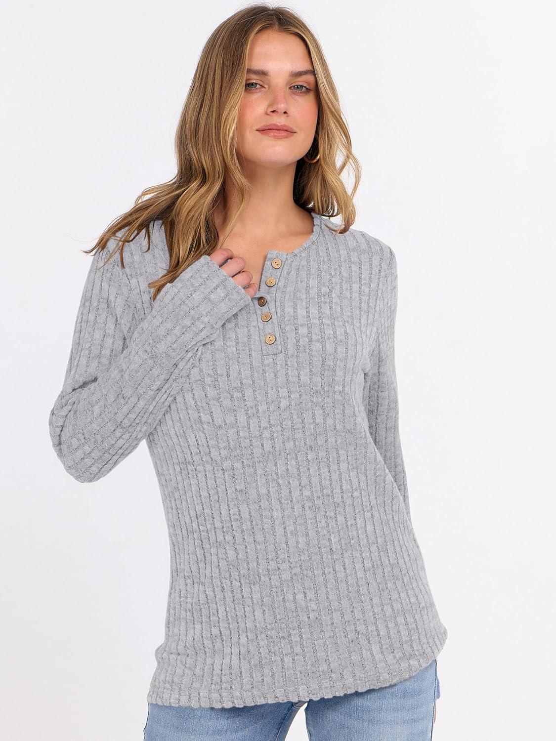ANRABESS Womens Long Sleeve Henley Shirts Button Down Tunic Tops Fall Lightweight Sweaters Business Casual Blouses 2025(Grey)