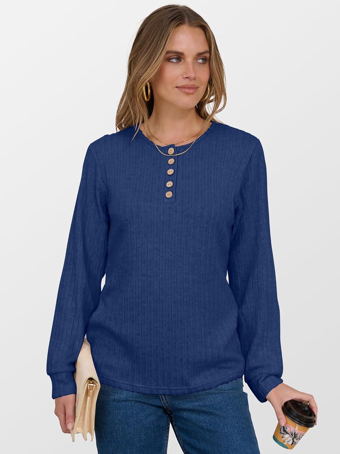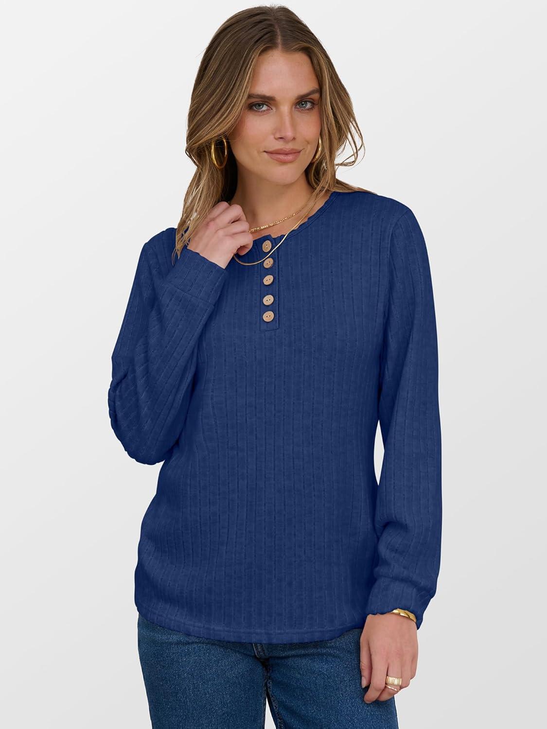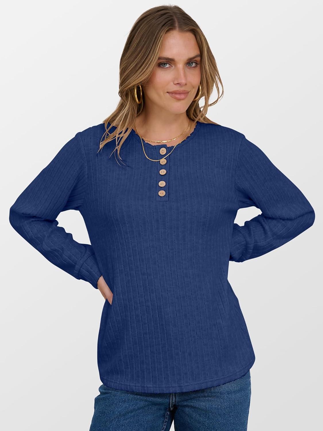ANRABESS Womens Long Sleeve Henley Shirts Button Down Tunic Tops Fall Lightweight Sweaters Business Casual Blouses 2025(Navy Blue)