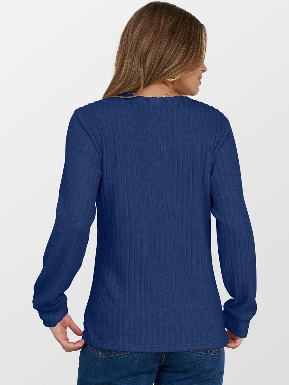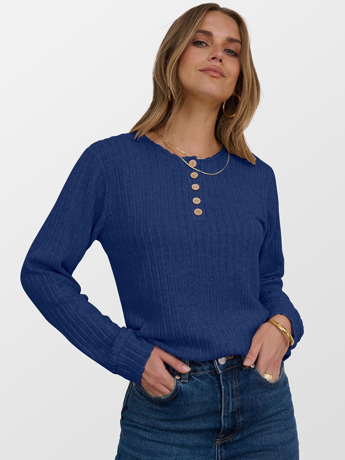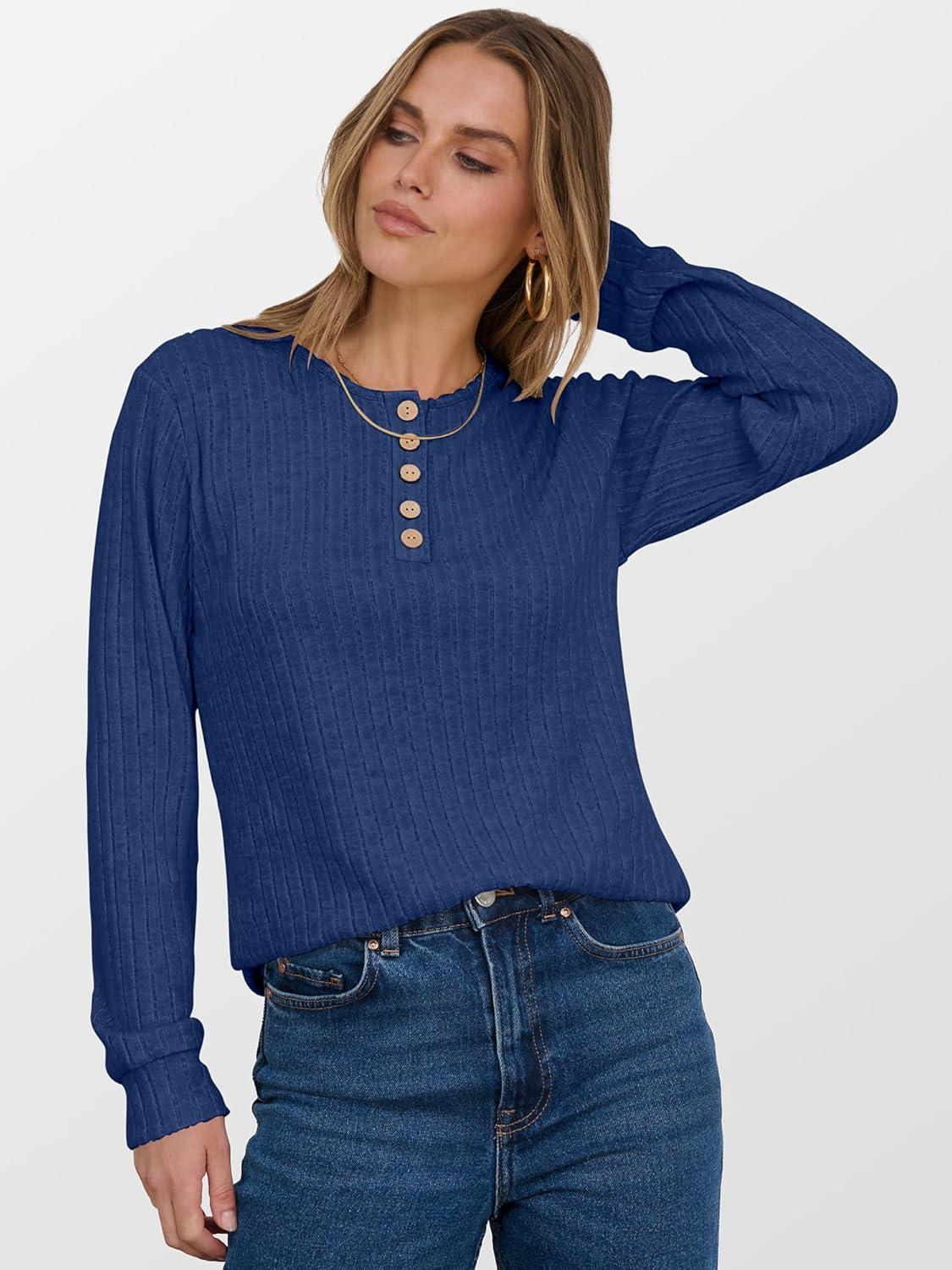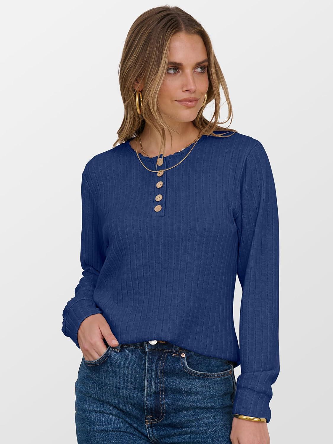 ANRABESS Womens Long Sleeve Henley Shirts Button Down Tunic Tops Fall Lightweight Sweaters Business Casual Blouses 2025(Navy Blue)