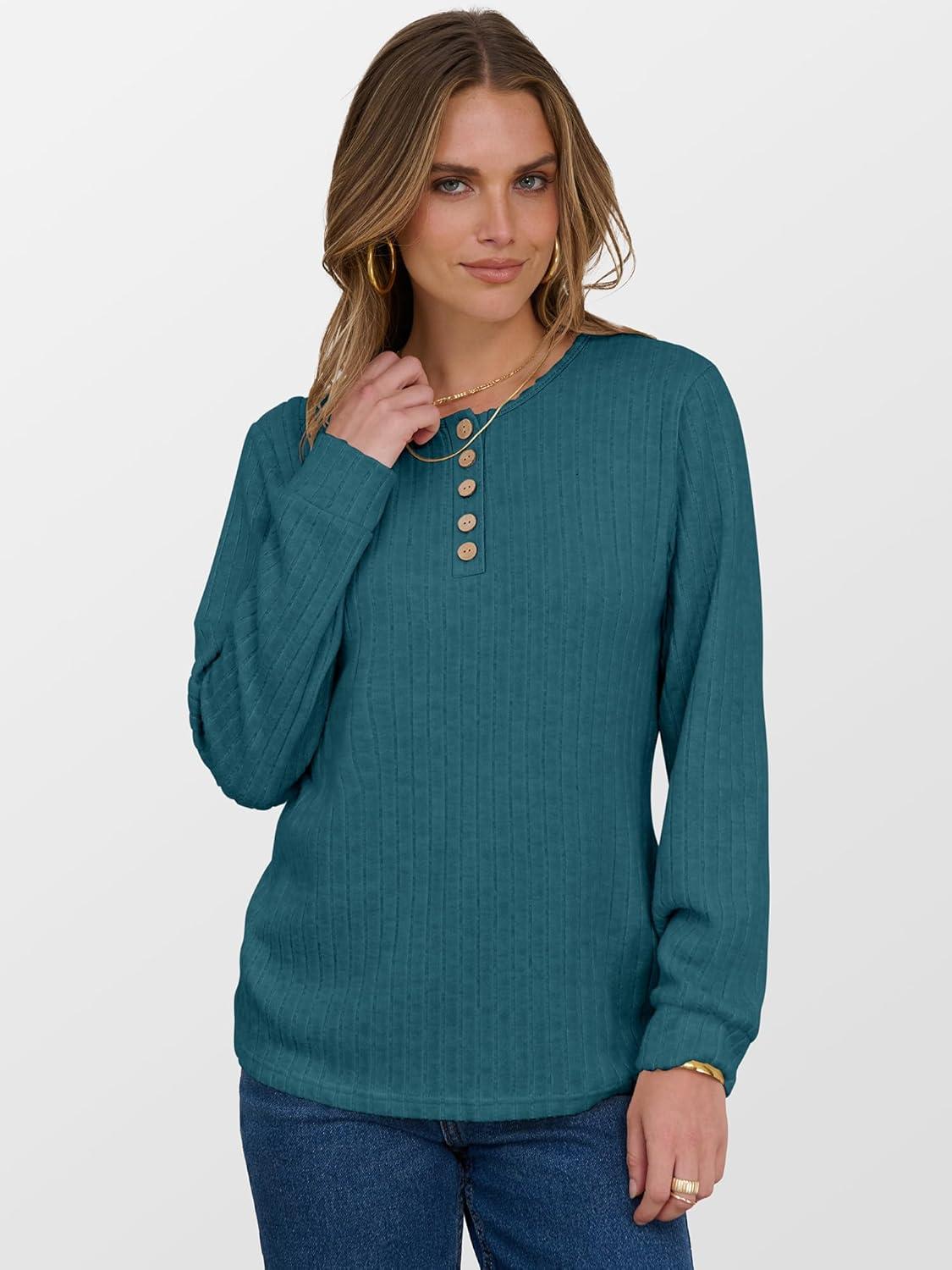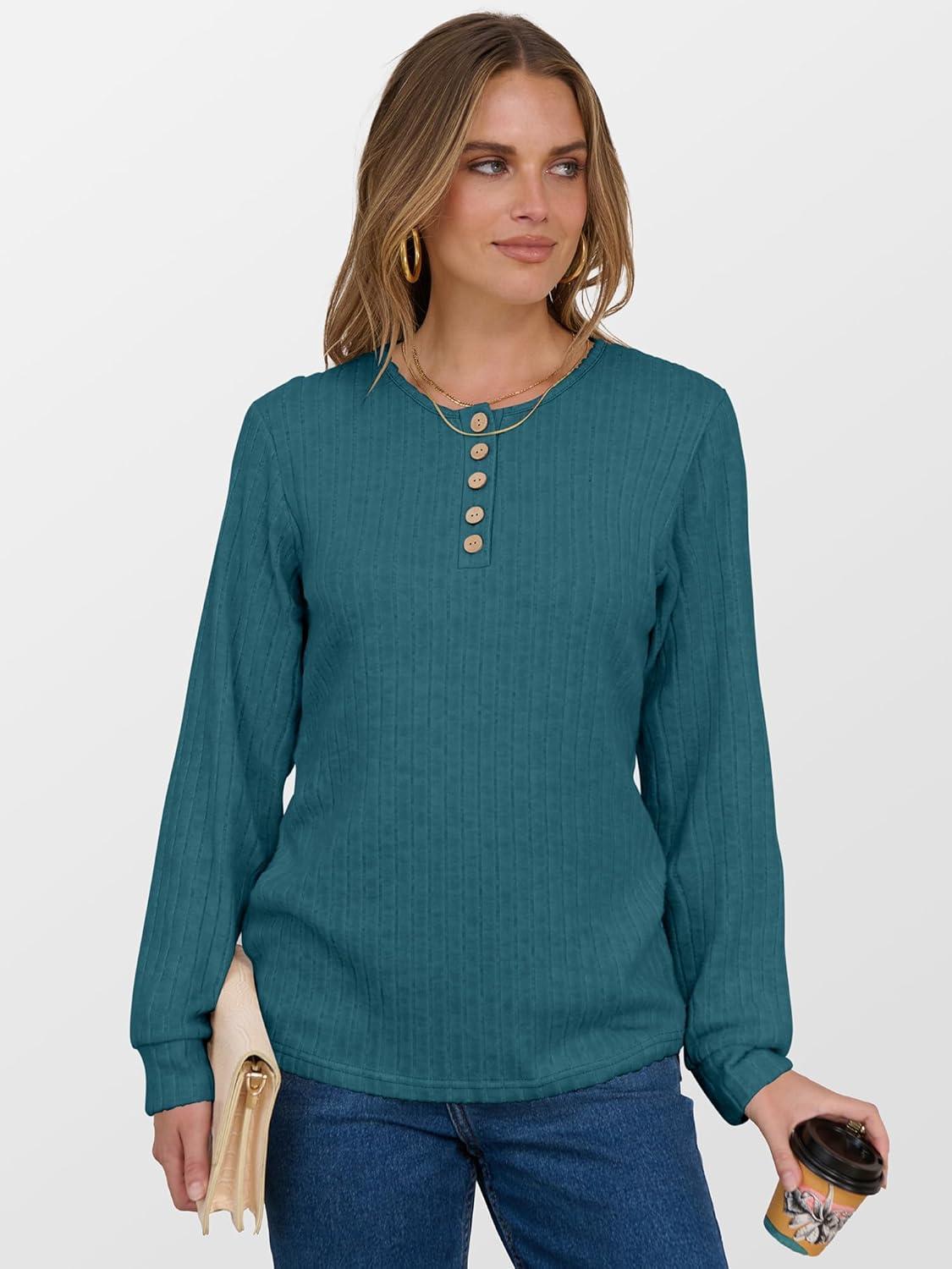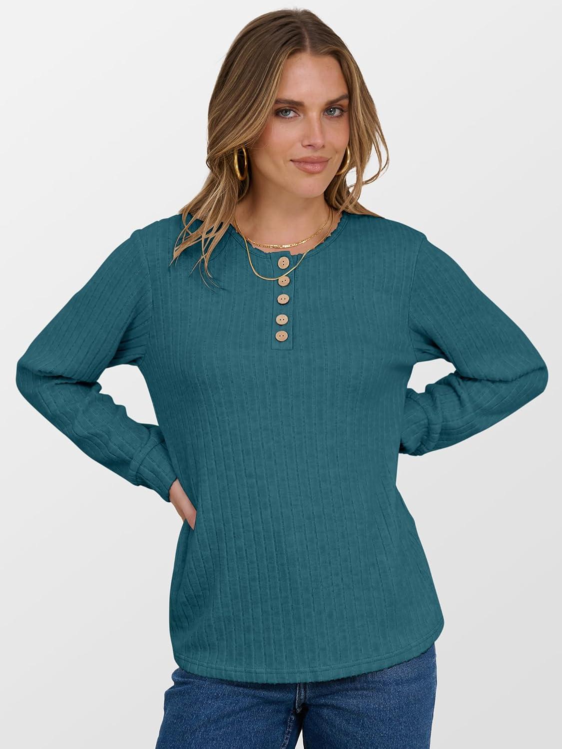 ANRABESS Womens Long Sleeve Henley Shirts Button Down Tunic Tops Fall Lightweight Sweaters Business Casual Blouses 2025(Teal)