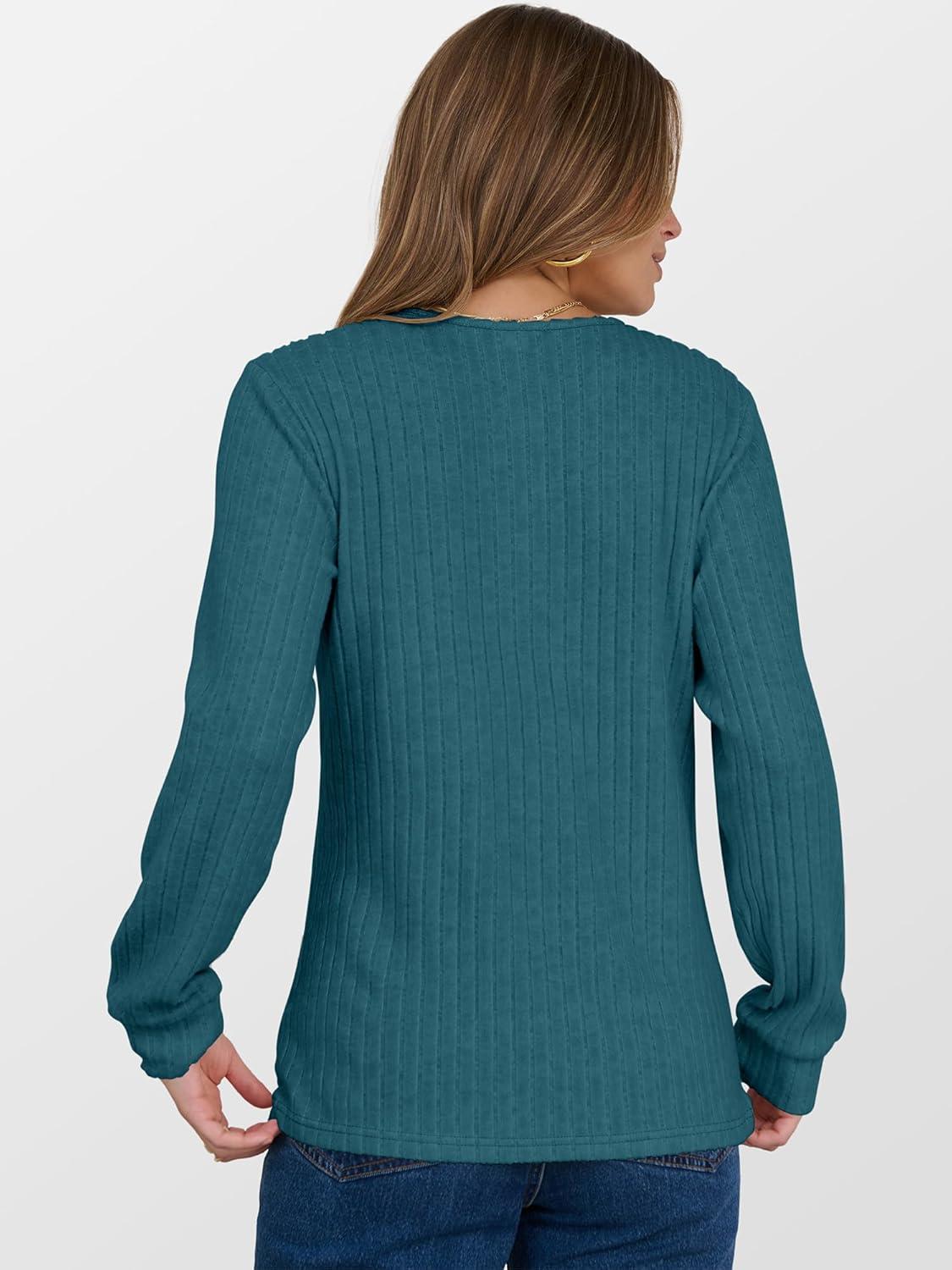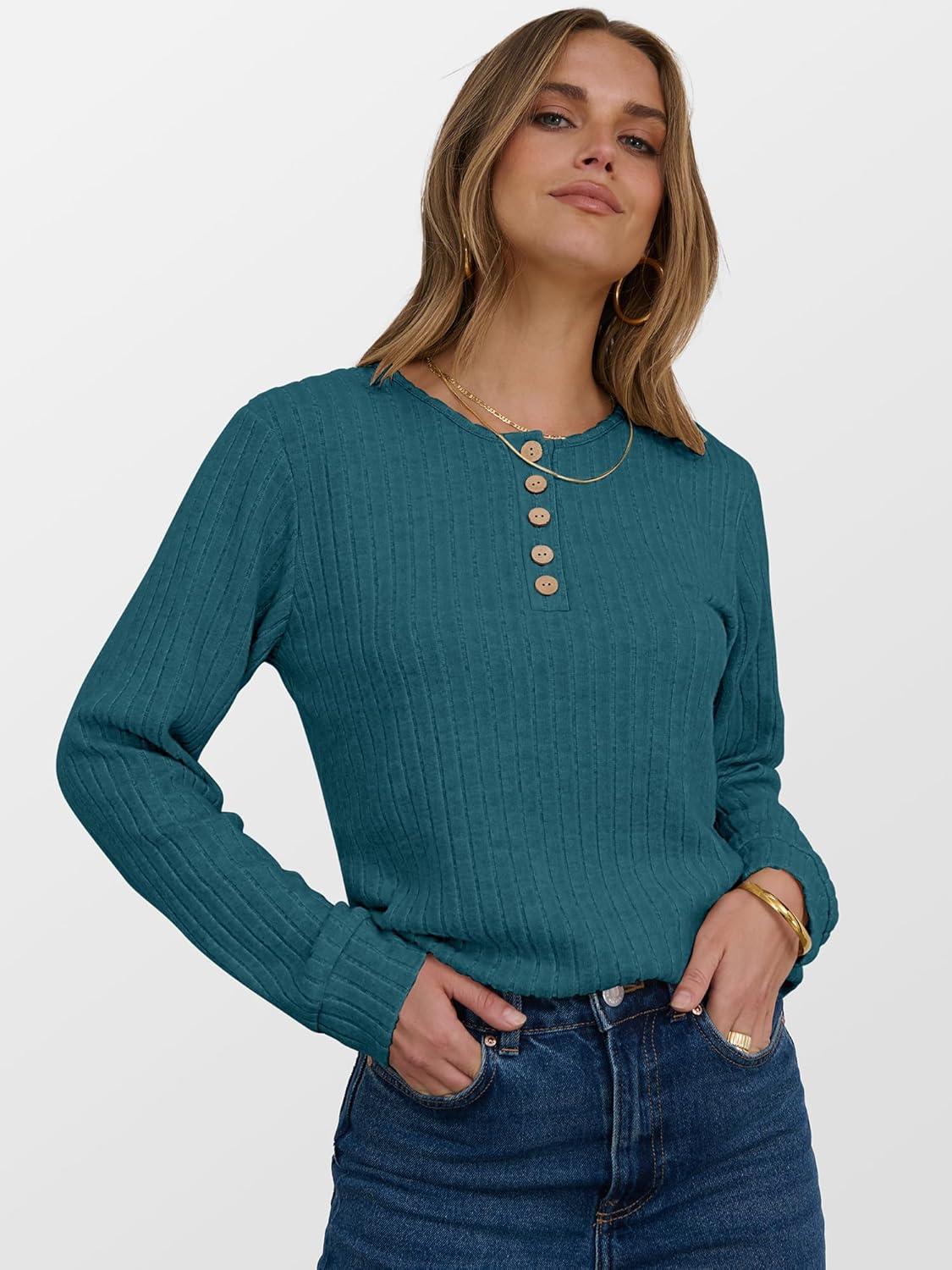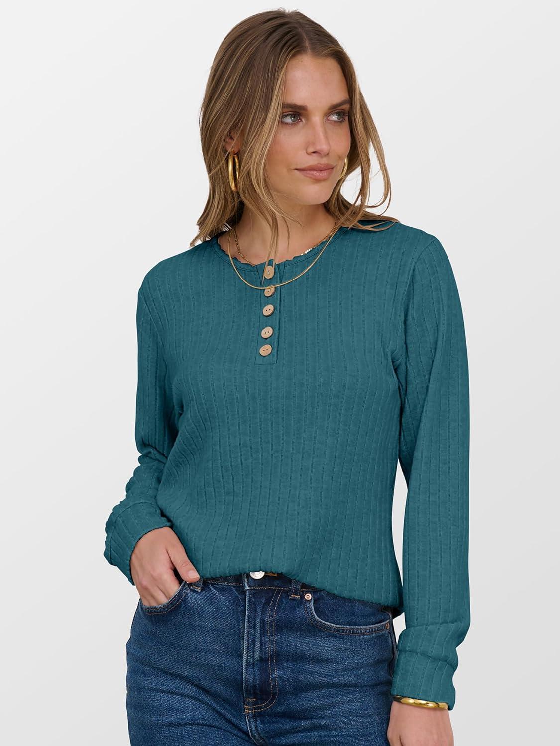 ANRABESS Womens Long Sleeve Henley Shirts Button Down Tunic Tops Fall Lightweight Sweaters Business Casual Blouses 2025(Teal)