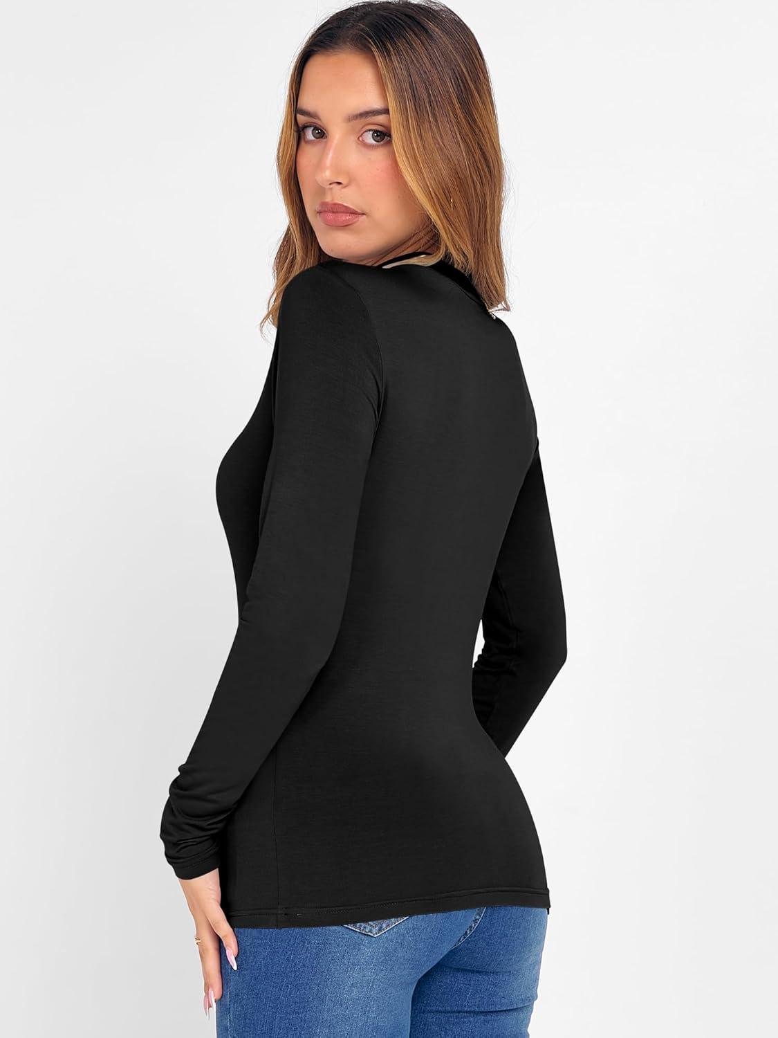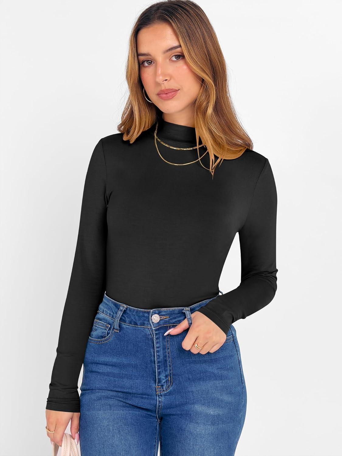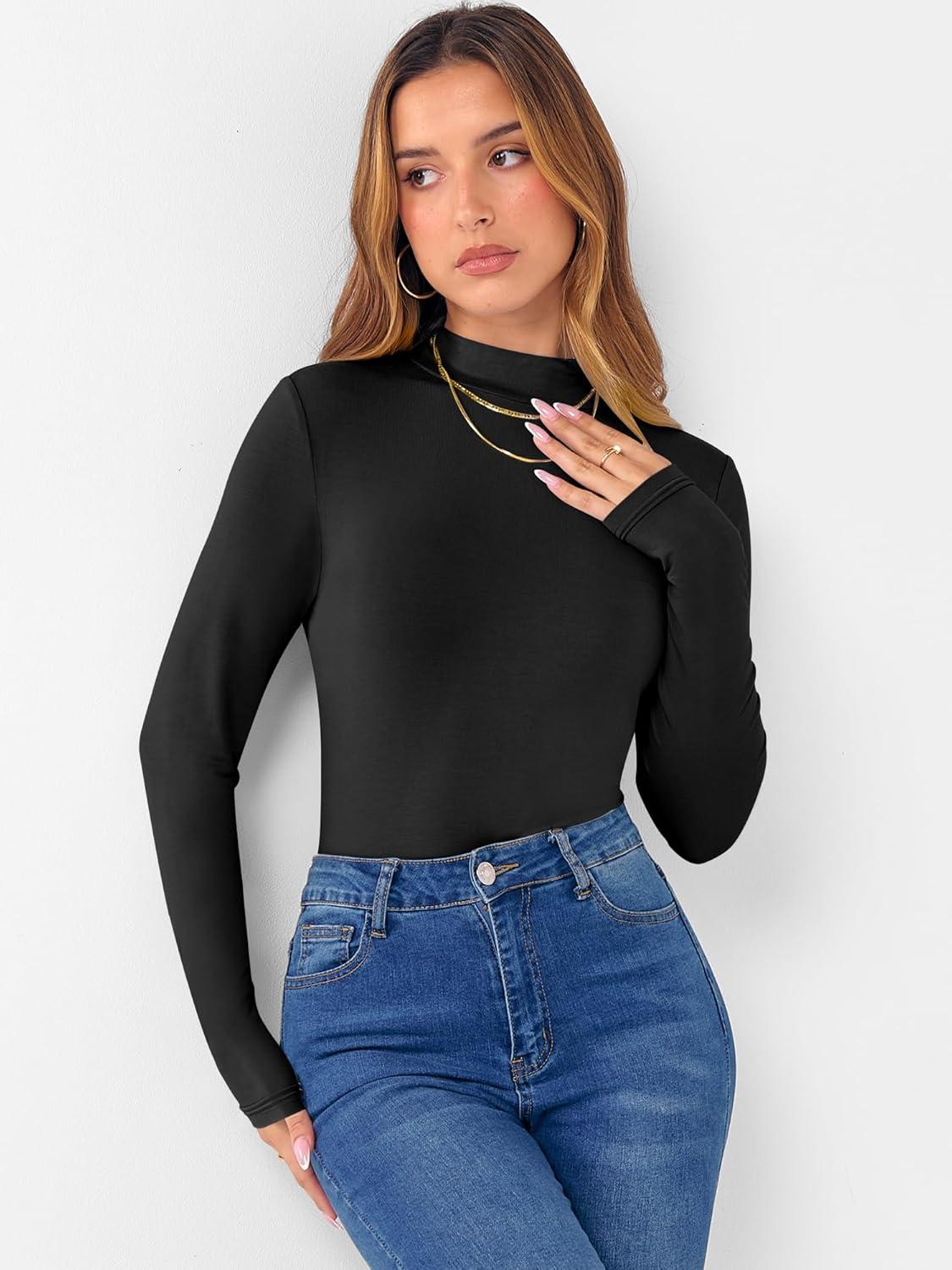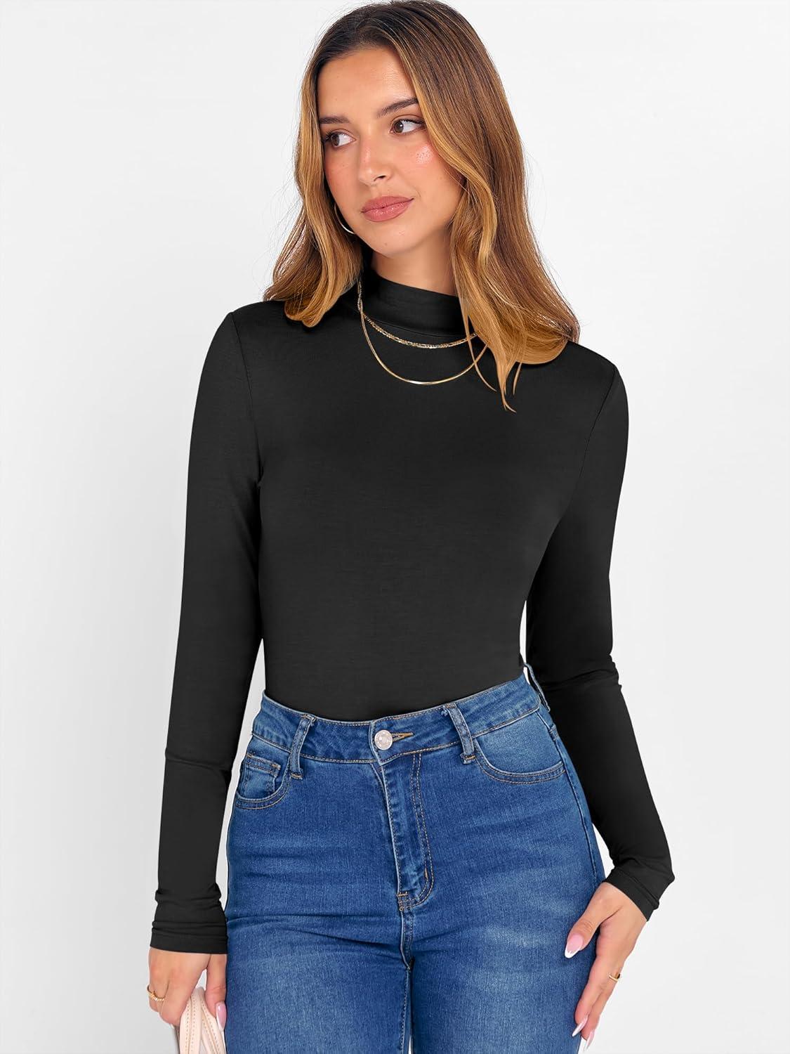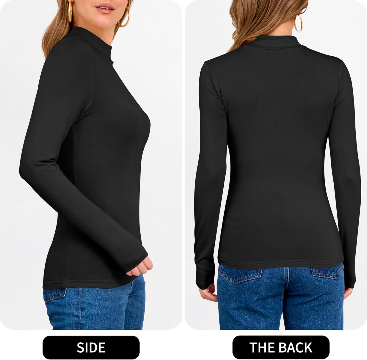 ANRABESS Womens Long Sleeve Mock Neck Tops Slim Fitted Basic Layer Office Work Shirts 2025 Fall Outfits Y2K Clothes(Black)