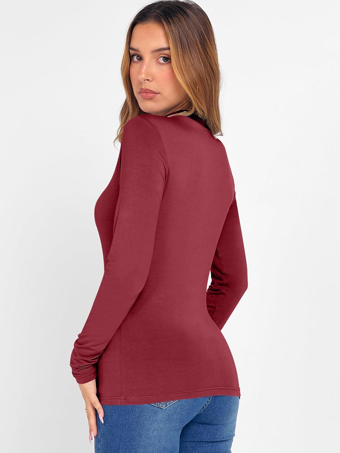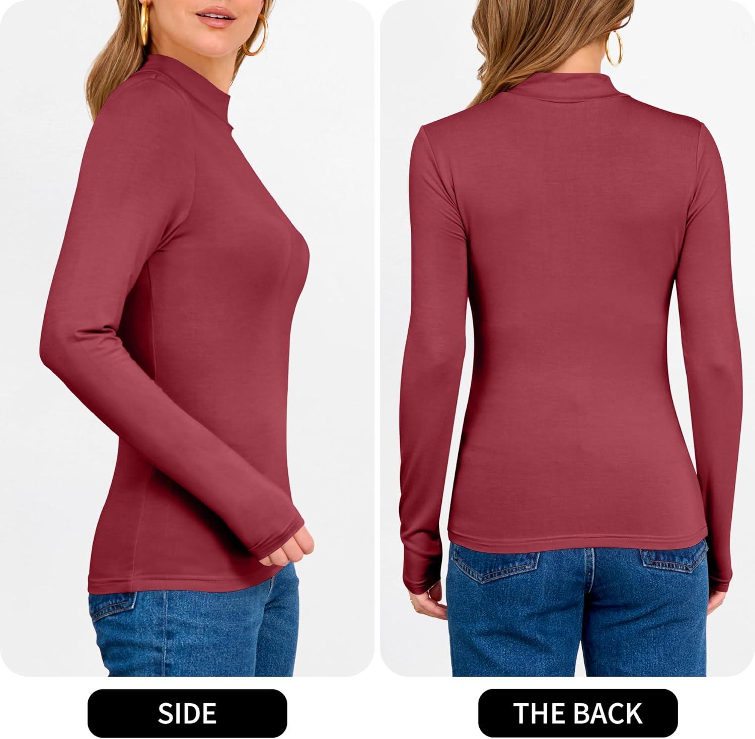 ANRABESS Womens Long Sleeve Mock Neck Tops Slim Fitted Basic Layer Office Work Shirts 2025 Fall Outfits Y2K Clothes(Burgundy)