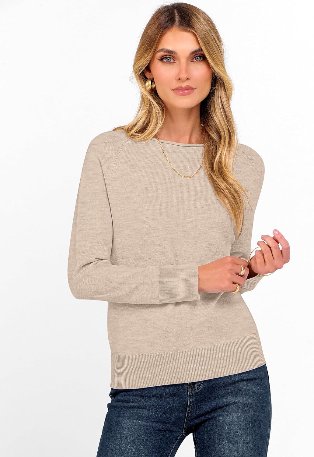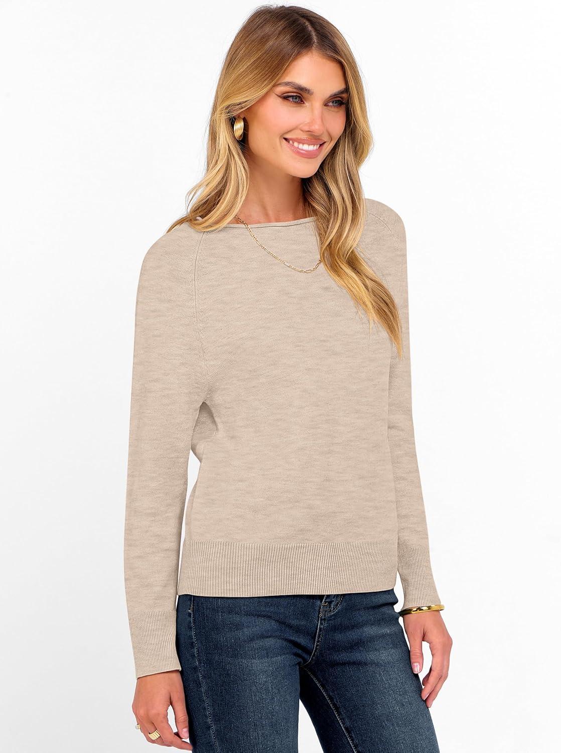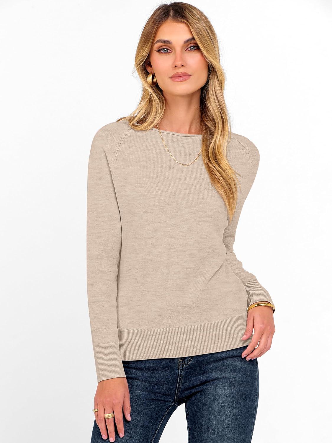 ANRABESS Womens Long Sleeve Rolled Boat Neck Casual Soft Lightweight Basic Pullover Sweater Top 2025 Fall Shirt Work Outfits(Almond)