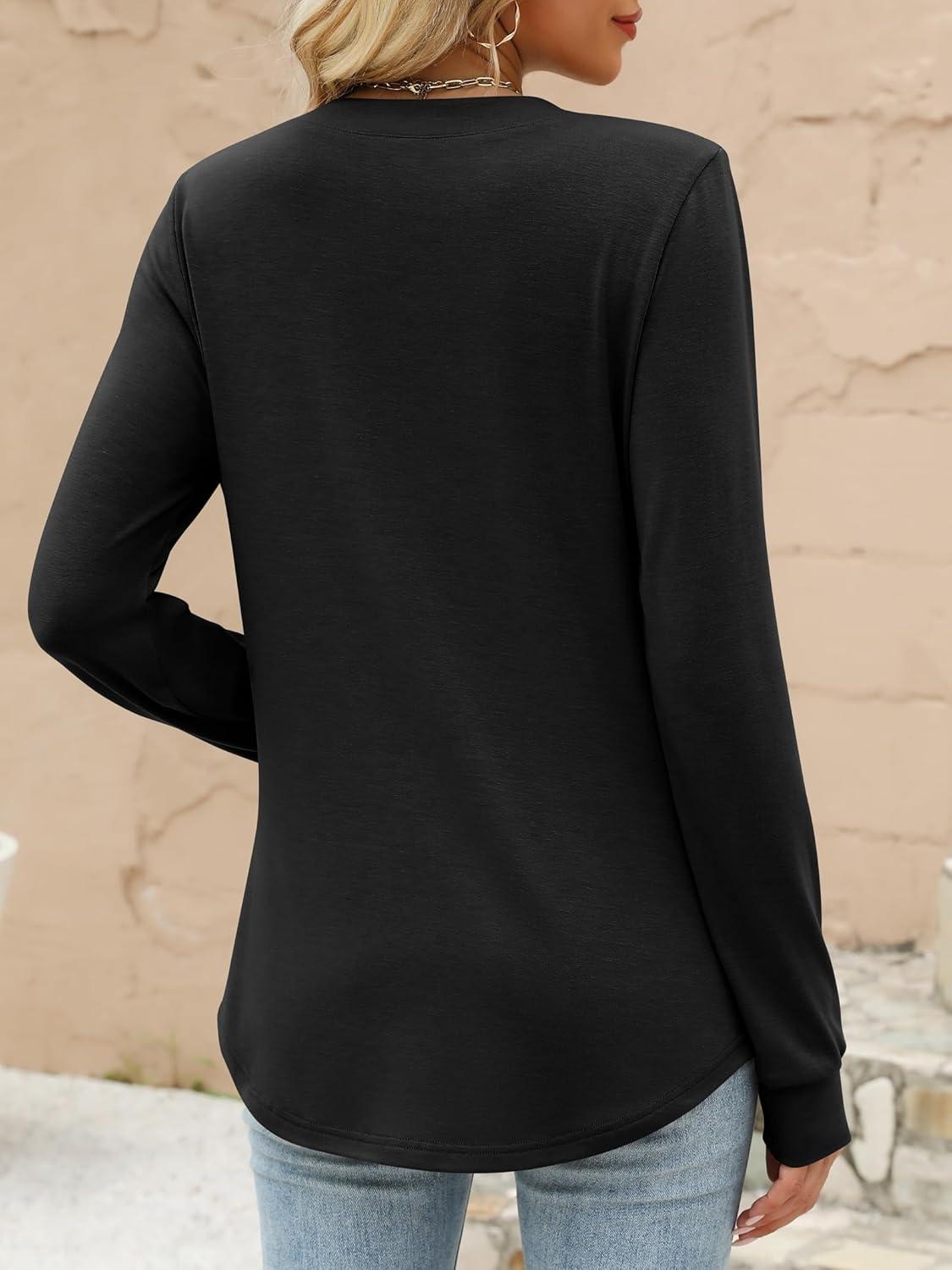 ANRABESS Women’s Long Sleeve Shirts 2025 Fall Henley Business Casual Tops Cute T-Shirts Work Blouses Outfits Vacation Clothes(Black)