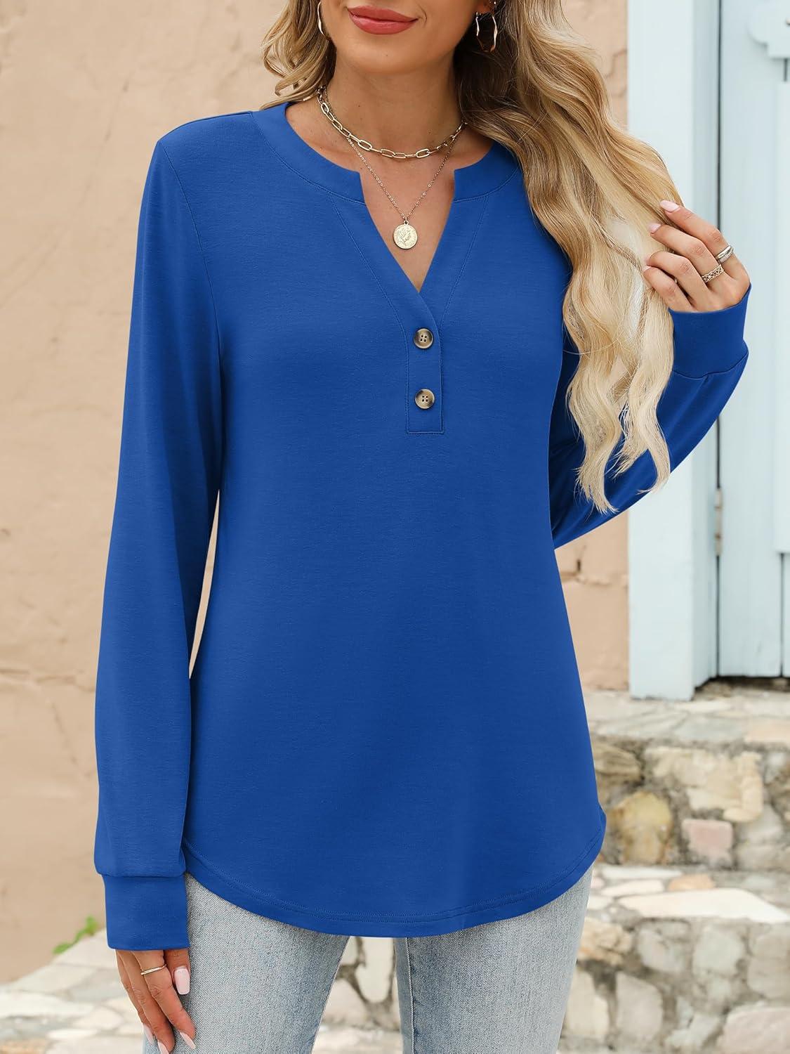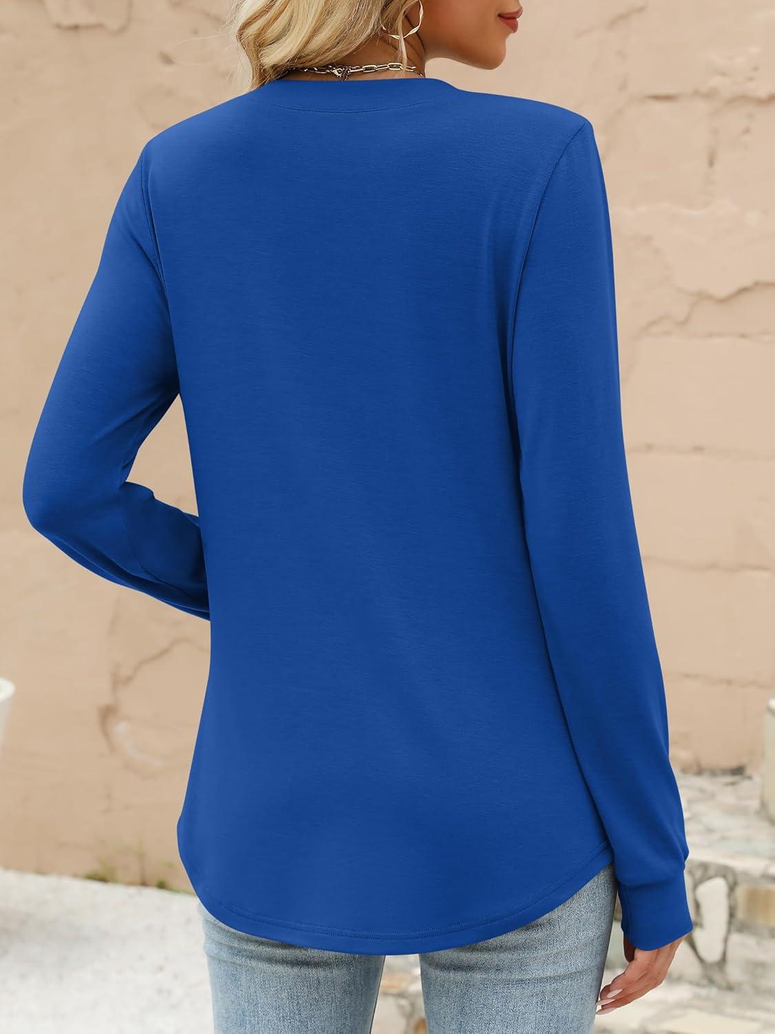 ANRABESS Women’s Long Sleeve Shirts 2025 Fall Henley Business Casual Tops Cute T-Shirts Work Blouses Outfits Vacation Clothes(Boyal Blue)