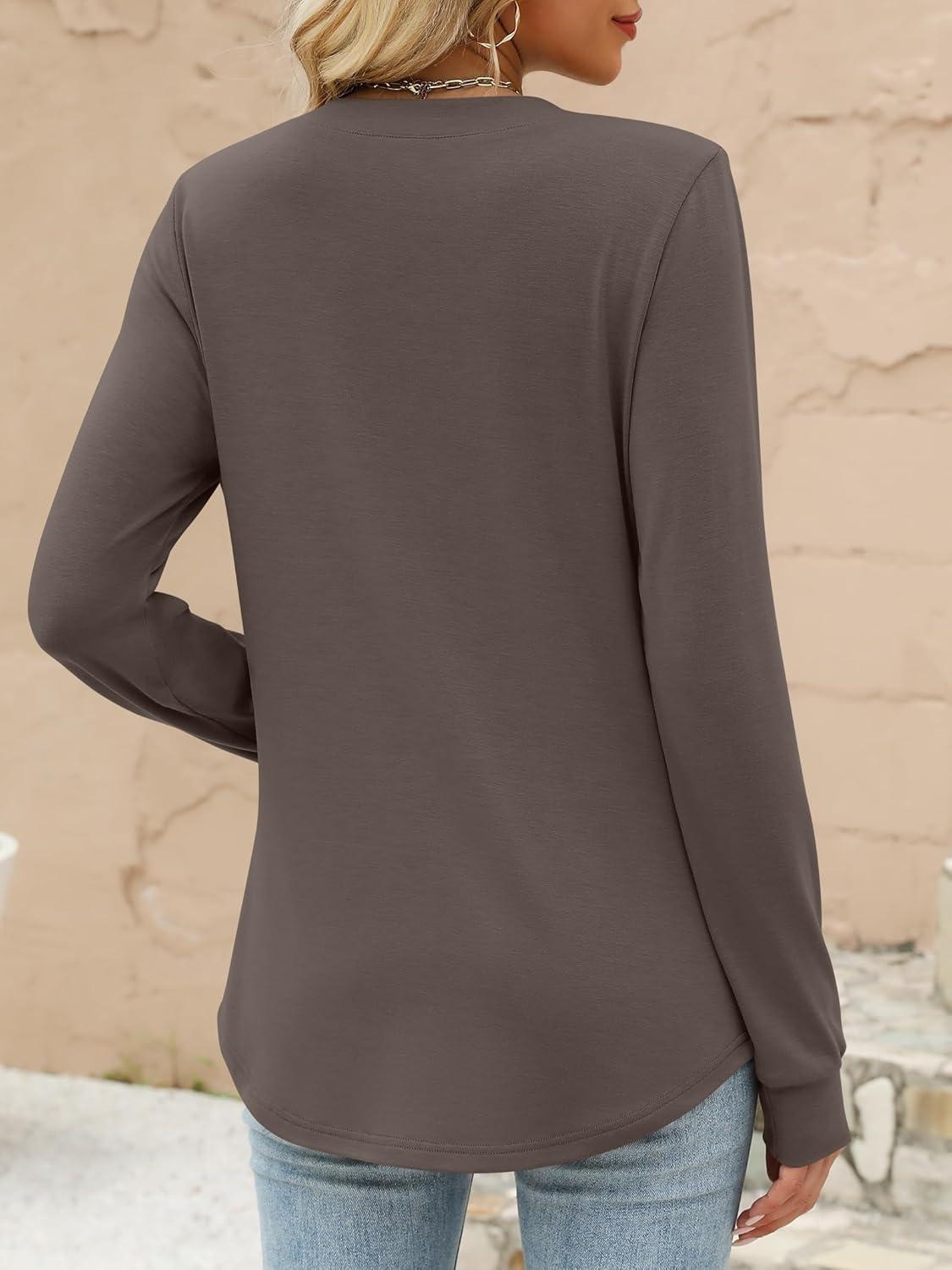 ANRABESS Women’s Long Sleeve Shirts 2025 Fall Henley Business Casual Tops Cute T-Shirts Work Blouses Outfits Vacation Clothes(Brown)