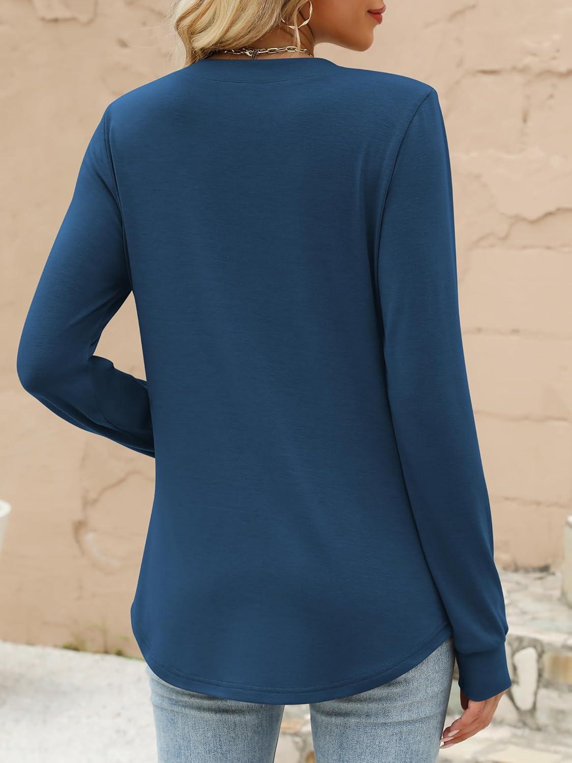 ANRABESS Women’s Long Sleeve Shirts 2025 Fall Henley Business Casual Tops Cute T-Shirts Work Blouses Outfits Vacation Clothes(Dark Blue)