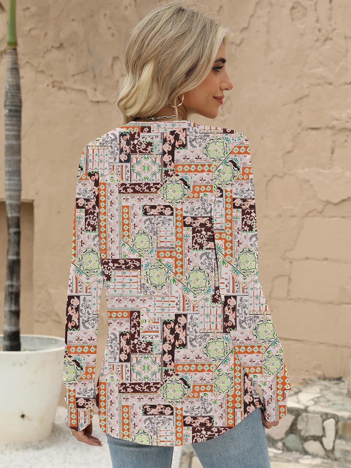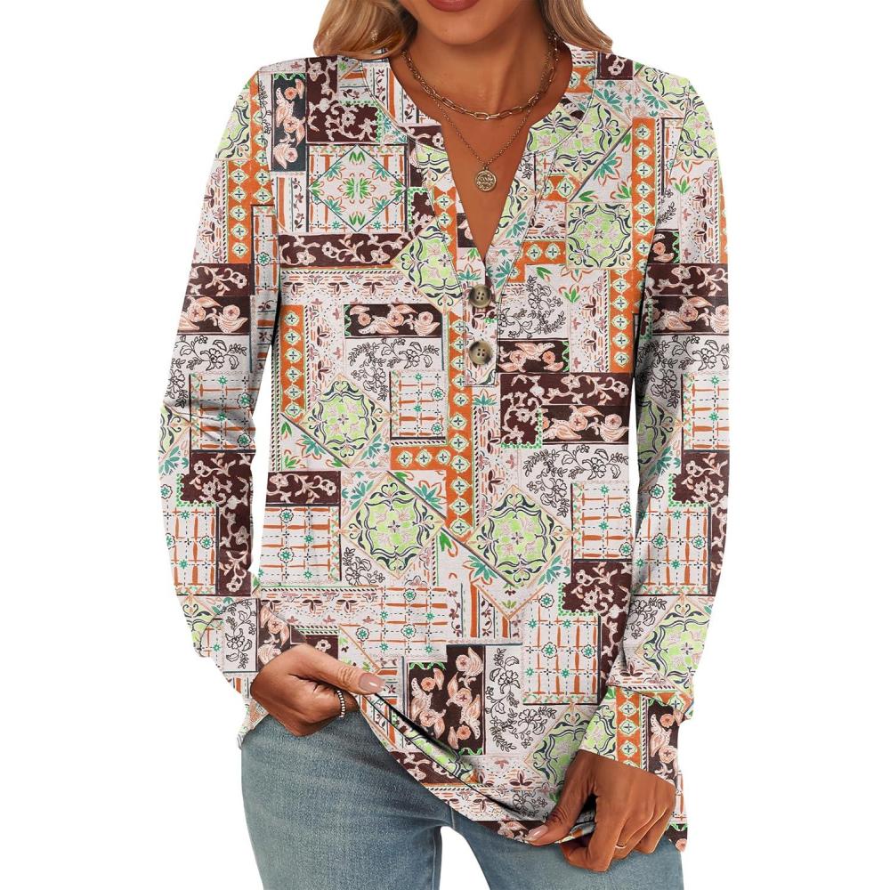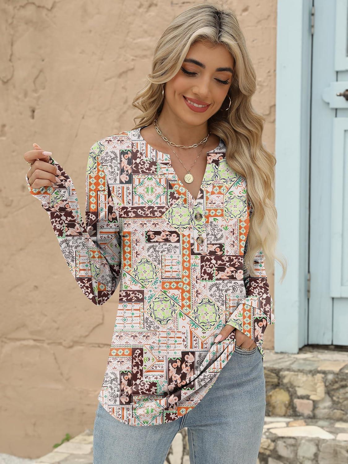 ANRABESS Women’s Long Sleeve Shirts 2025 Fall Henley Business Casual Tops Cute T-Shirts Work Blouses Outfits Vacation Clothes(Mix Color Block)