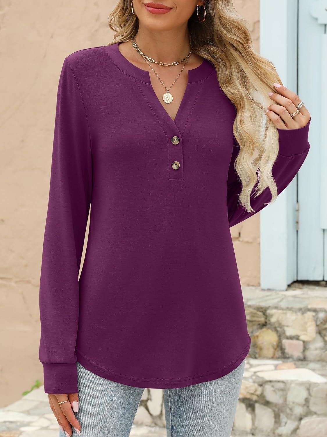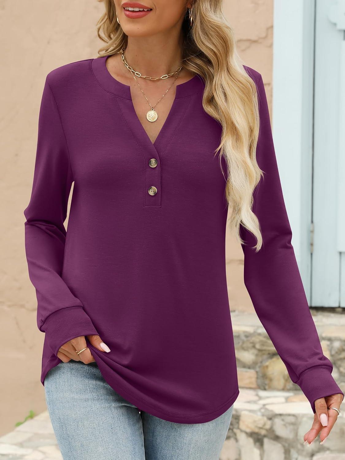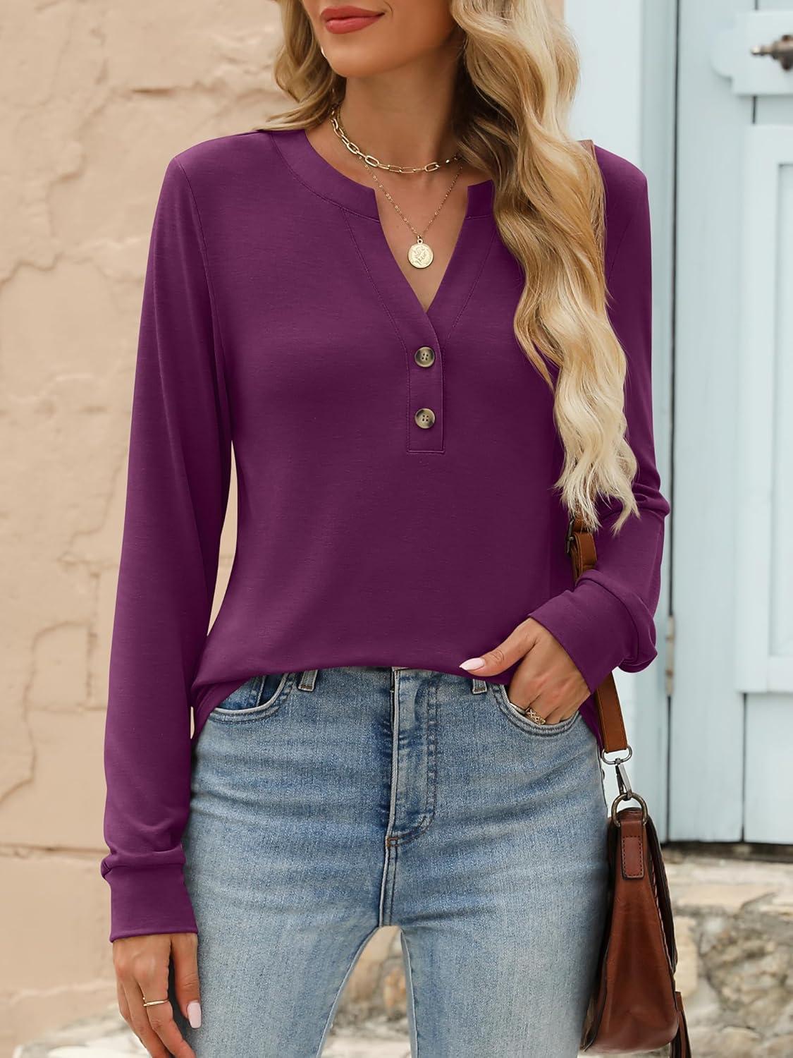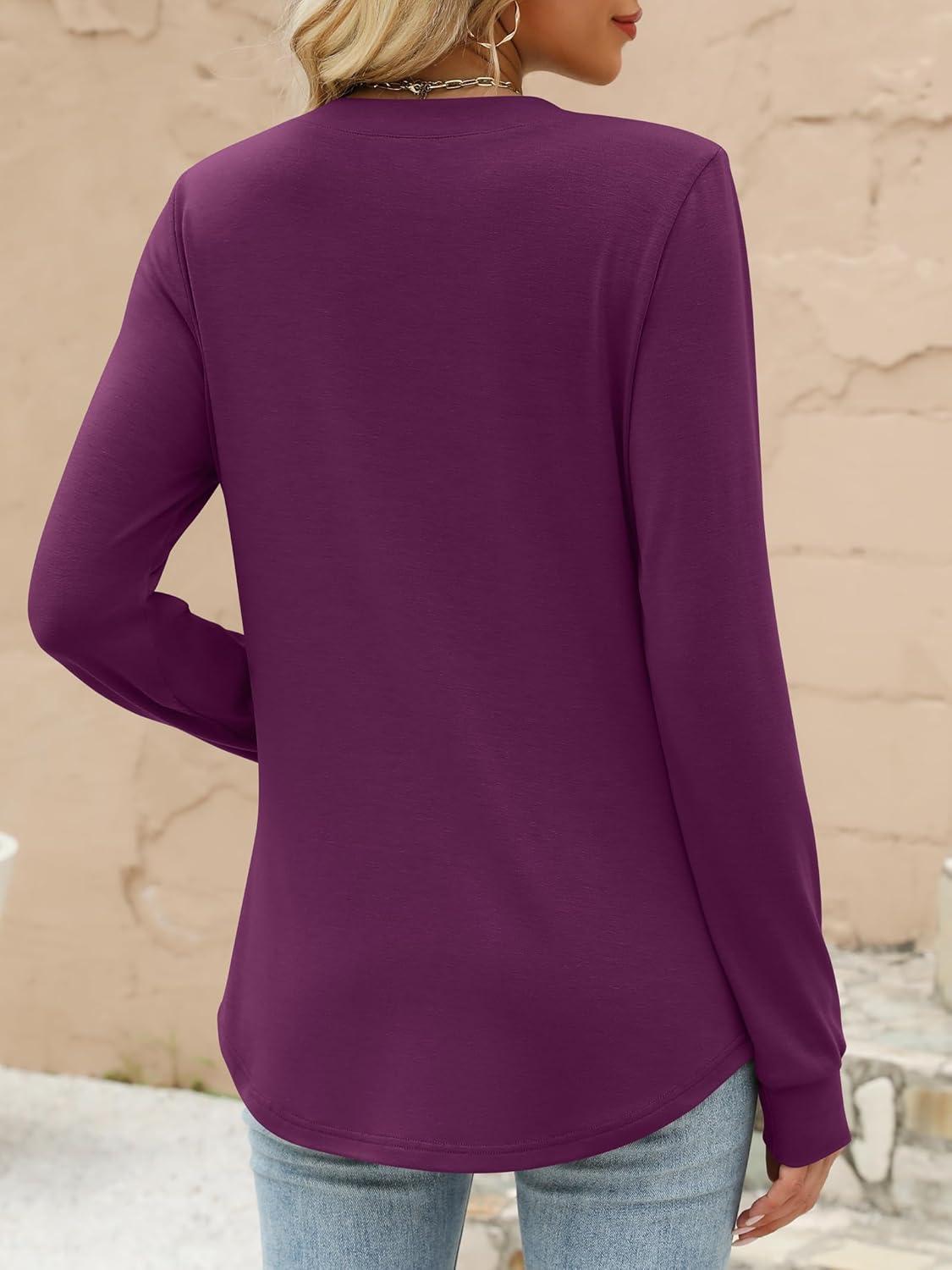 ANRABESS Women’s Long Sleeve Shirts 2025 Fall Henley Business Casual Tops Cute T-Shirts Work Blouses Outfits Vacation Clothes(Purple)