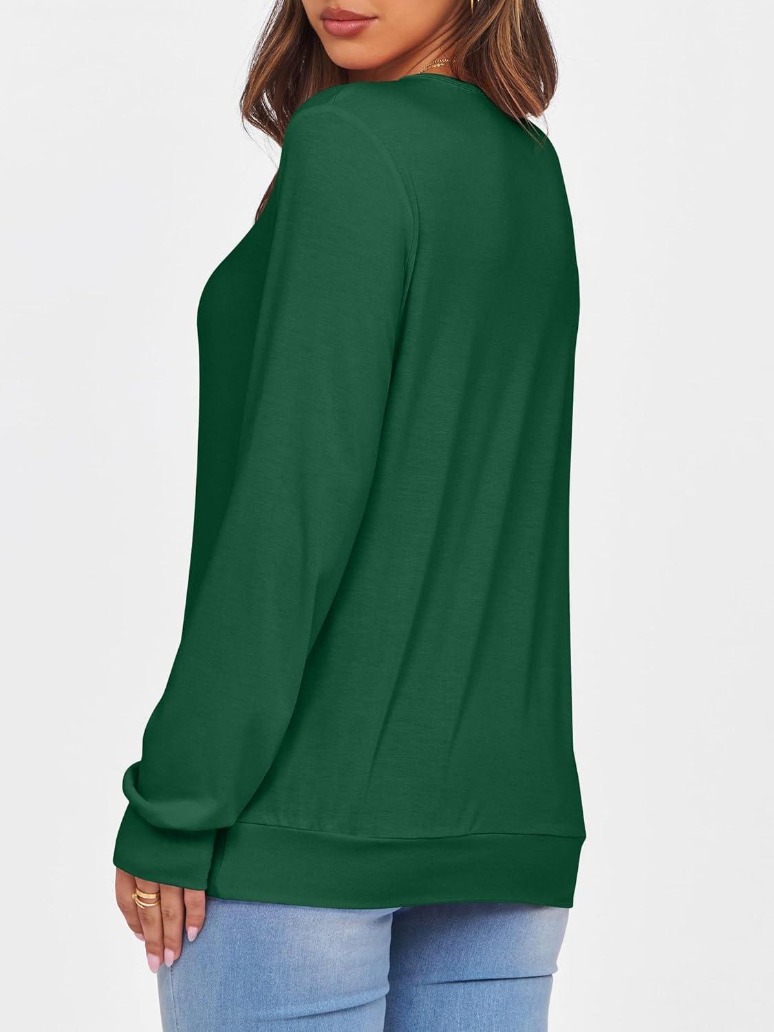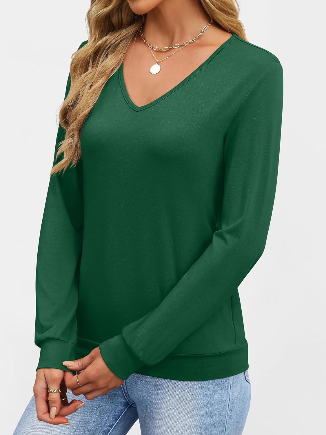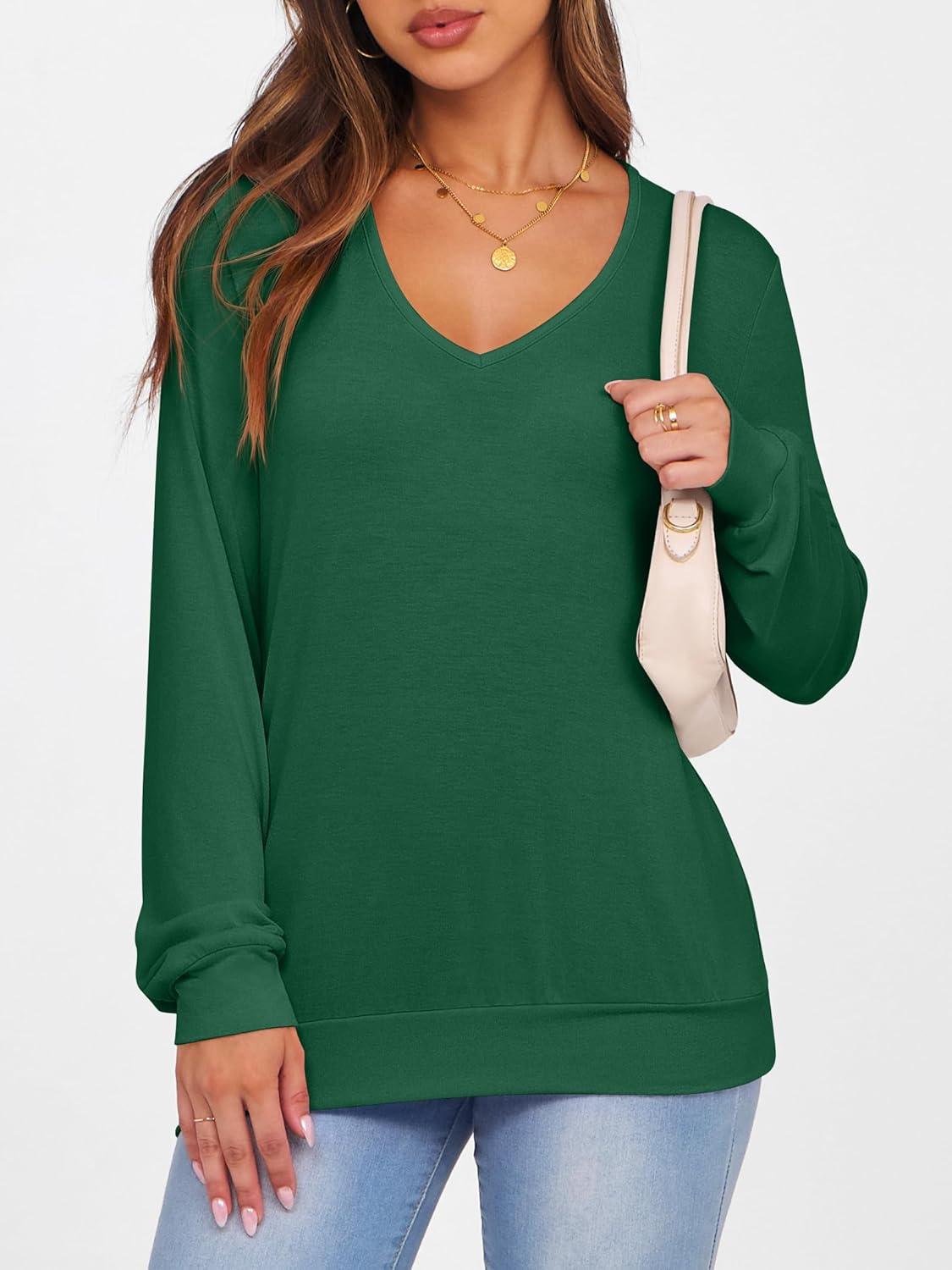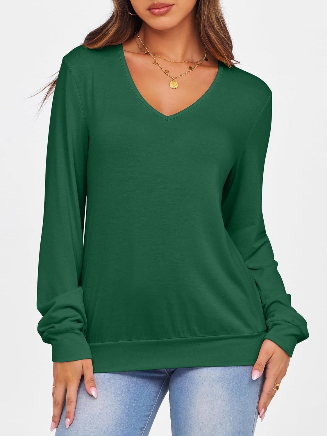ANRABESS Women’s Long Sleeve Shirts Casual Loose V Neck Basic Tees Tops 2025 Fall T-Shirt Outfits(Green)