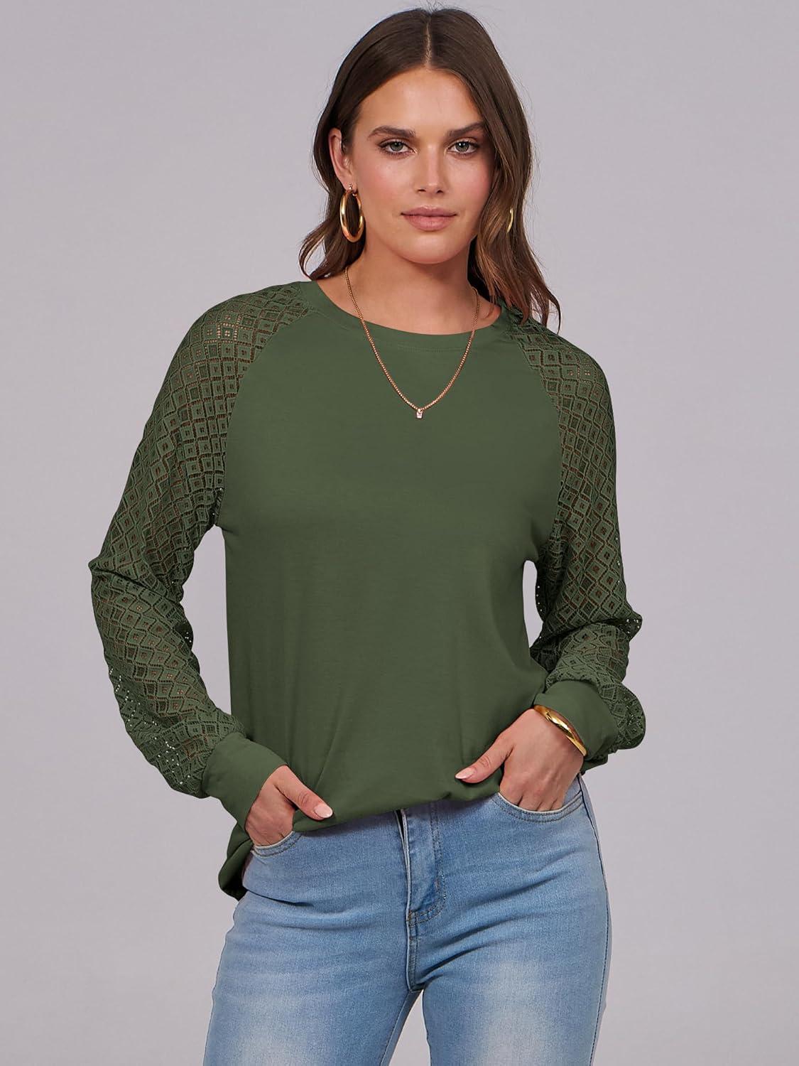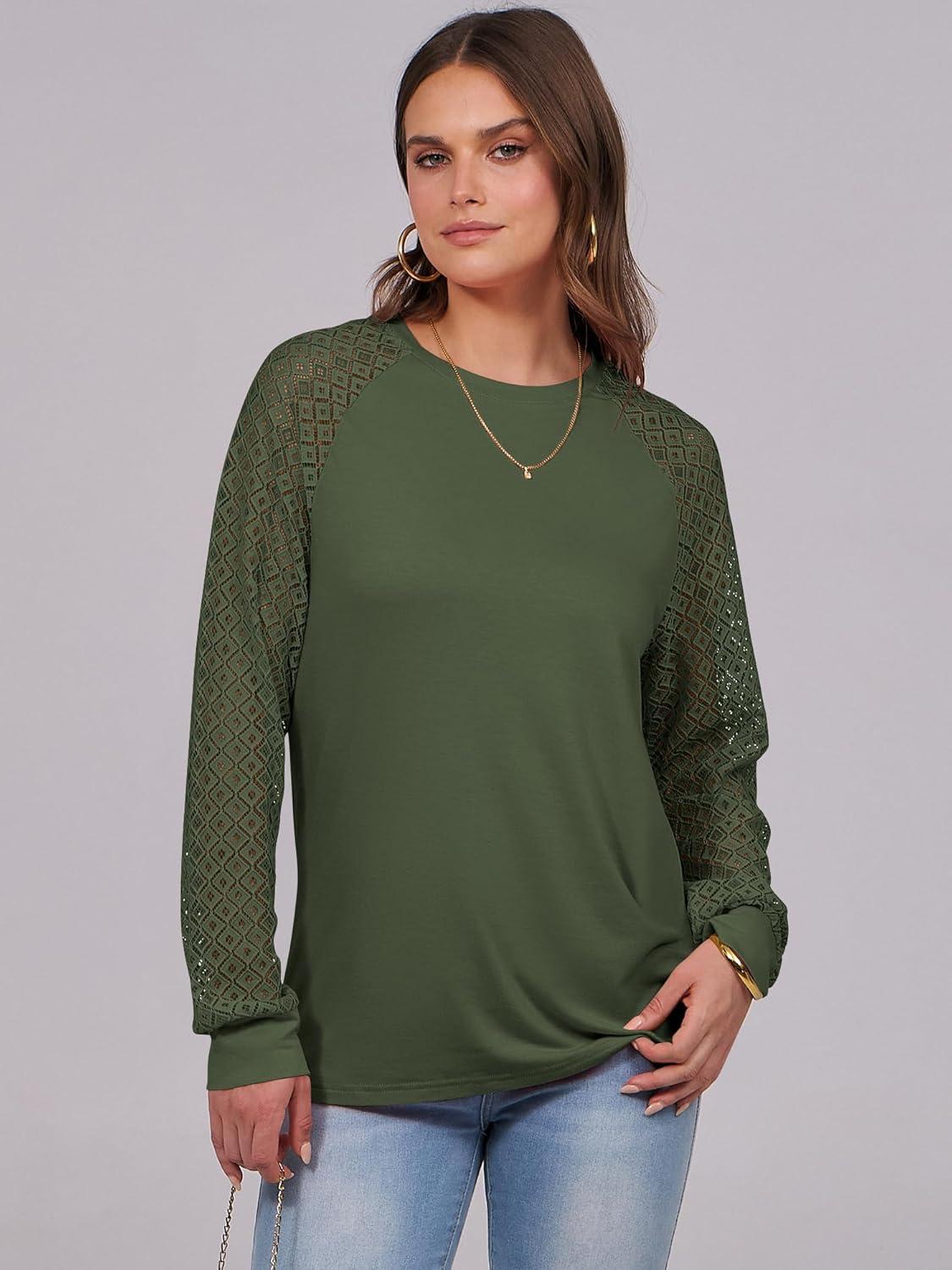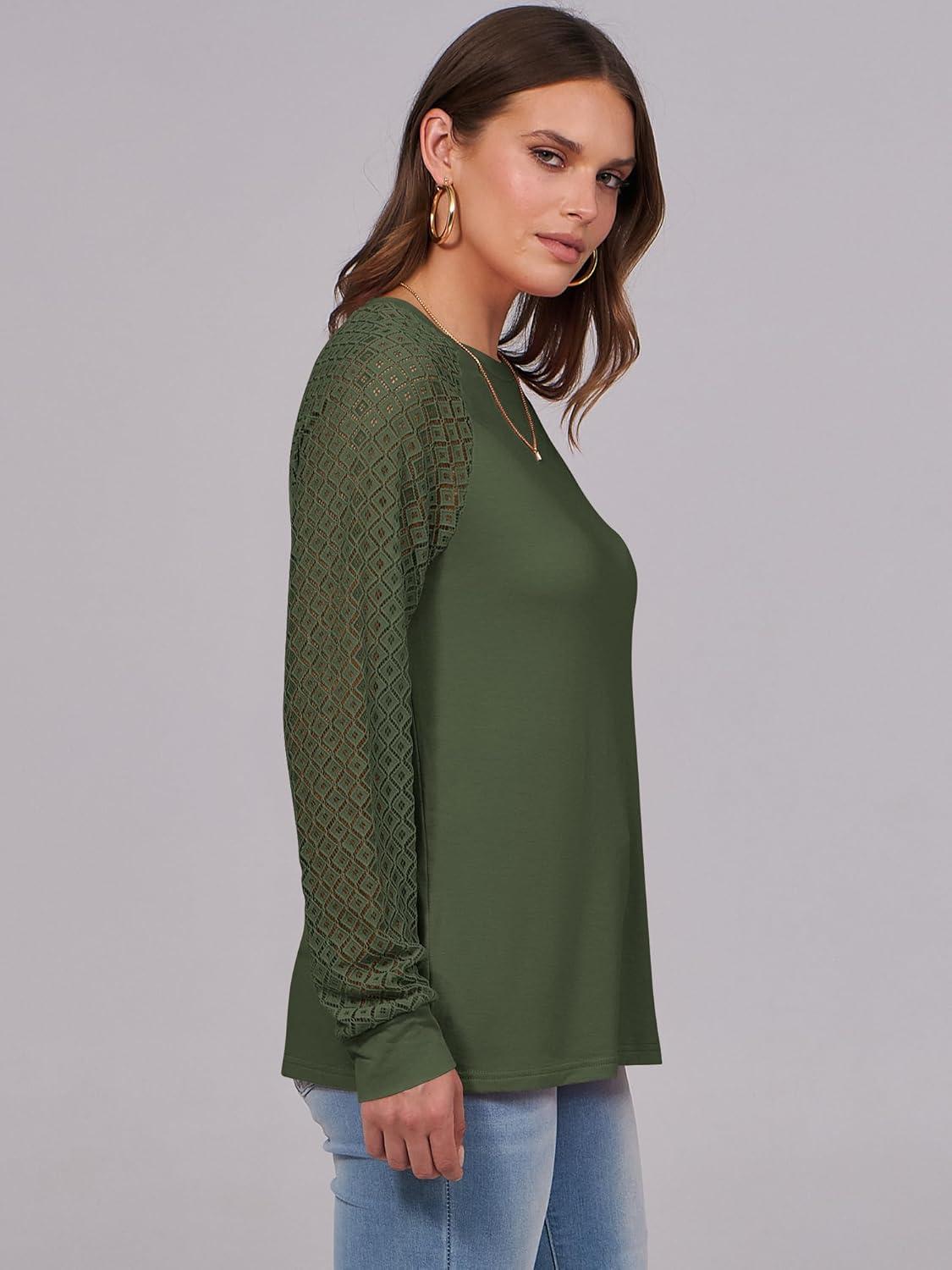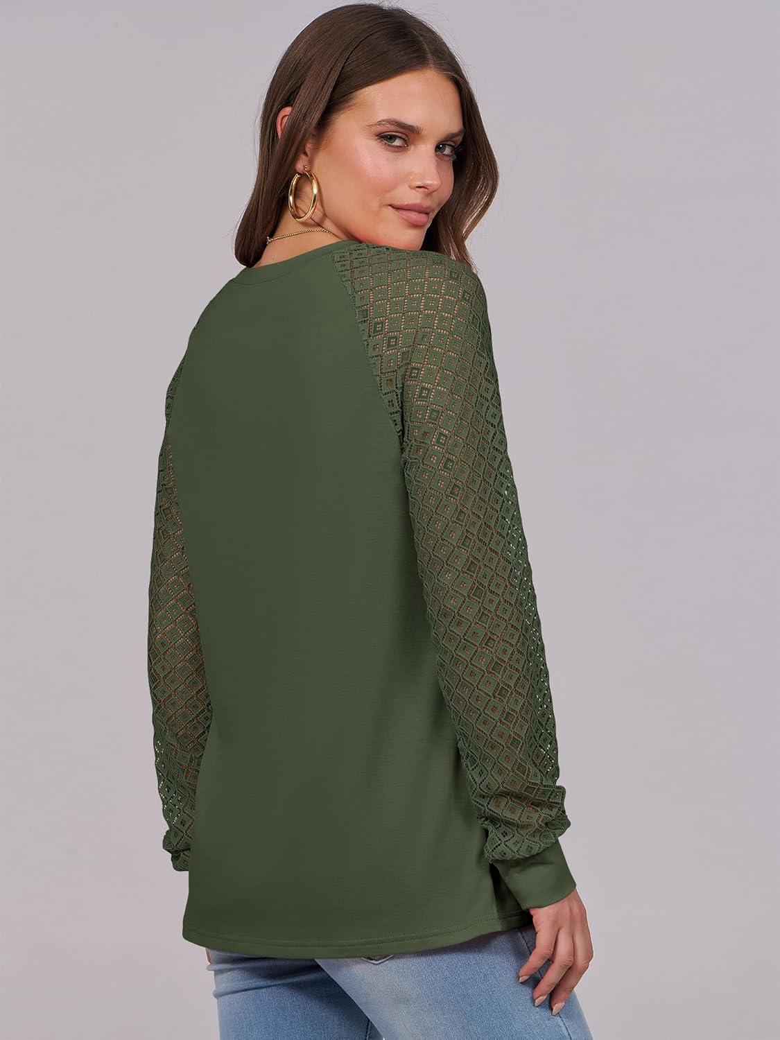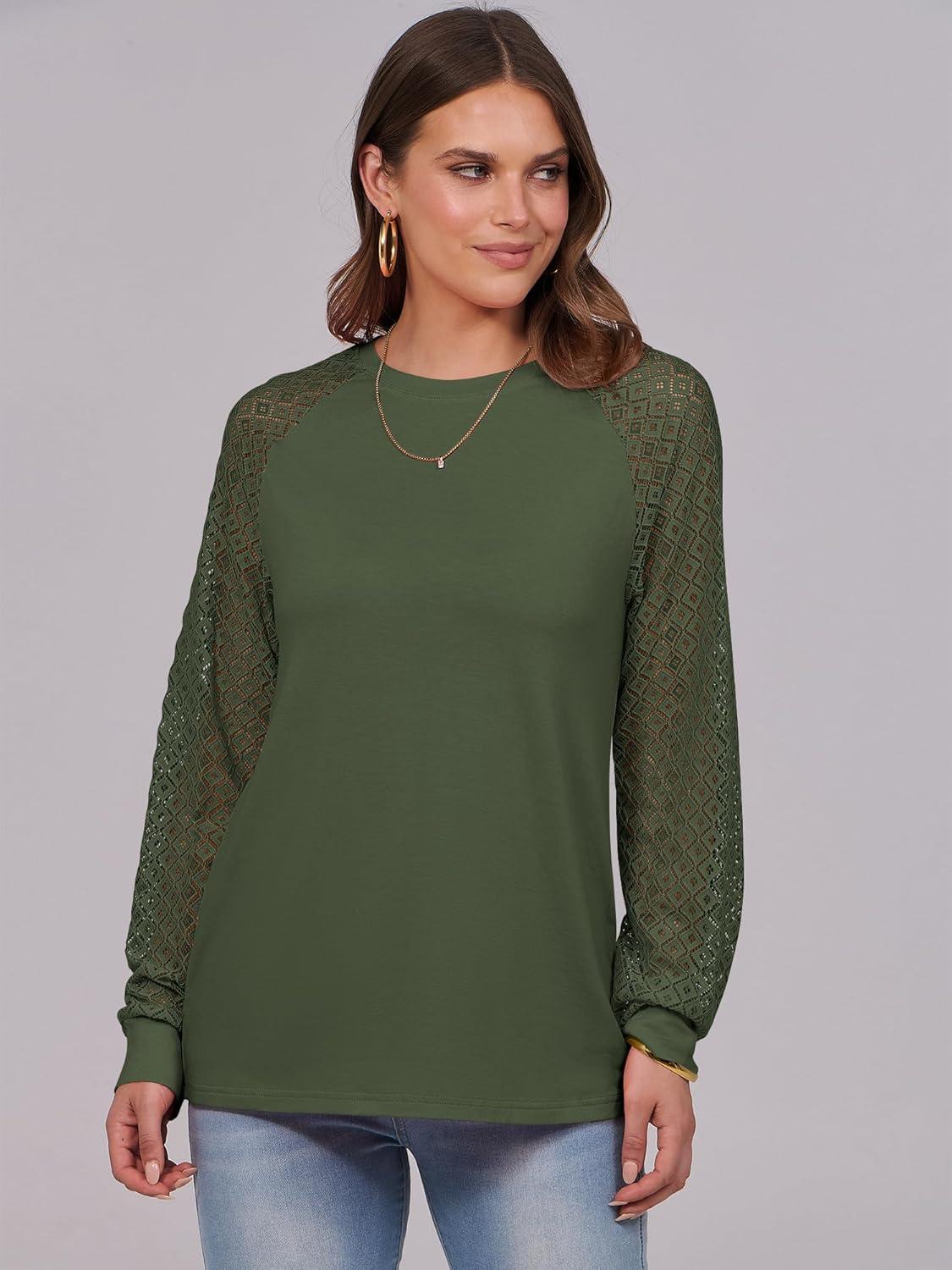 ANRABESS Womens Long Sleeve Shirts Lace Tops Business Casual Blouses 2025 Fall Fashion Outfits(Army Green)