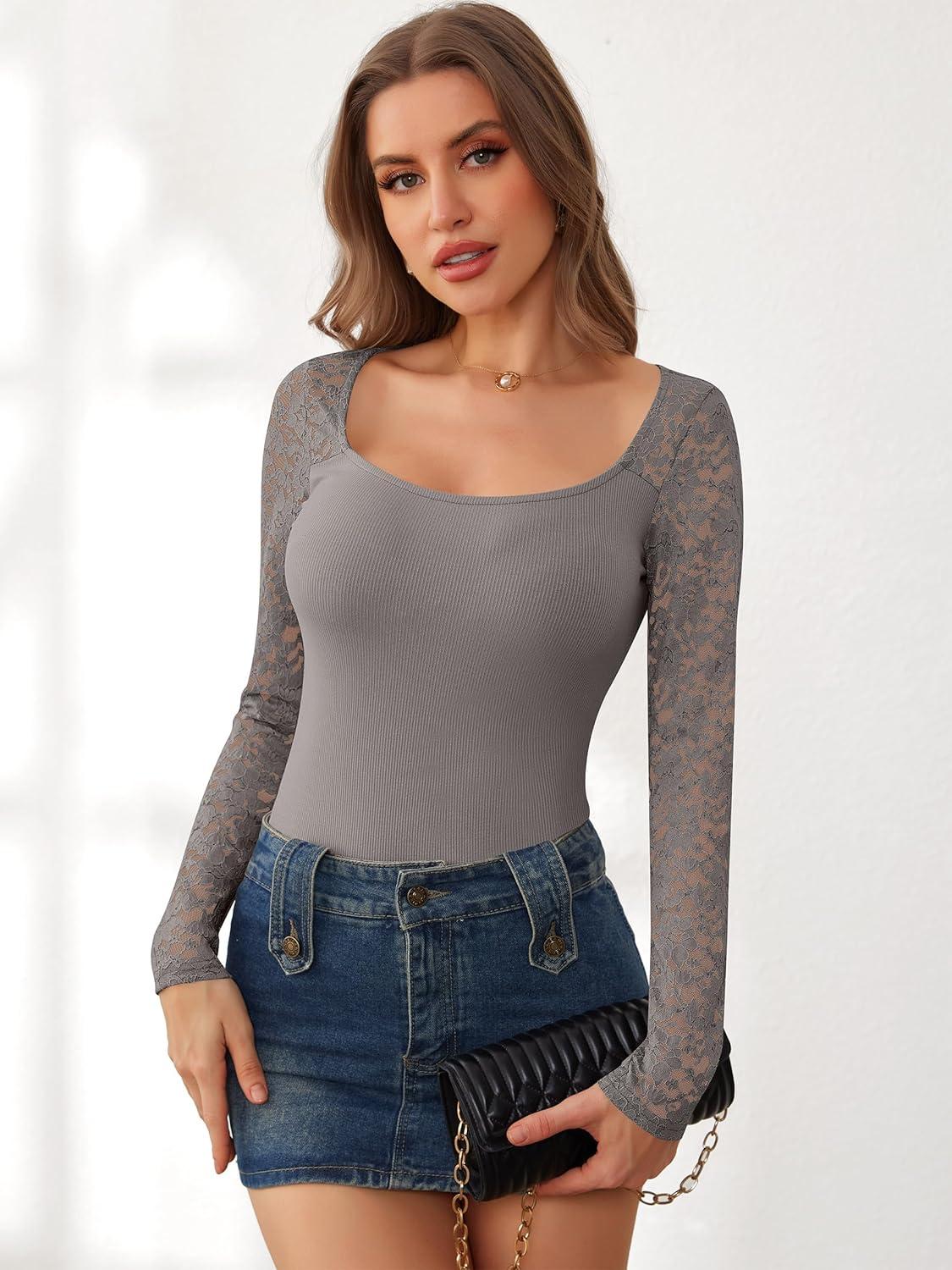 Be the first to review “ANRABESS Womens Long Sleeve Shirts Scoop Neck Lace Going Out Tops Slim Fit Rib Knit Casual Blouses 2025 Fall Fashion Outfits(Dark Khaki)”