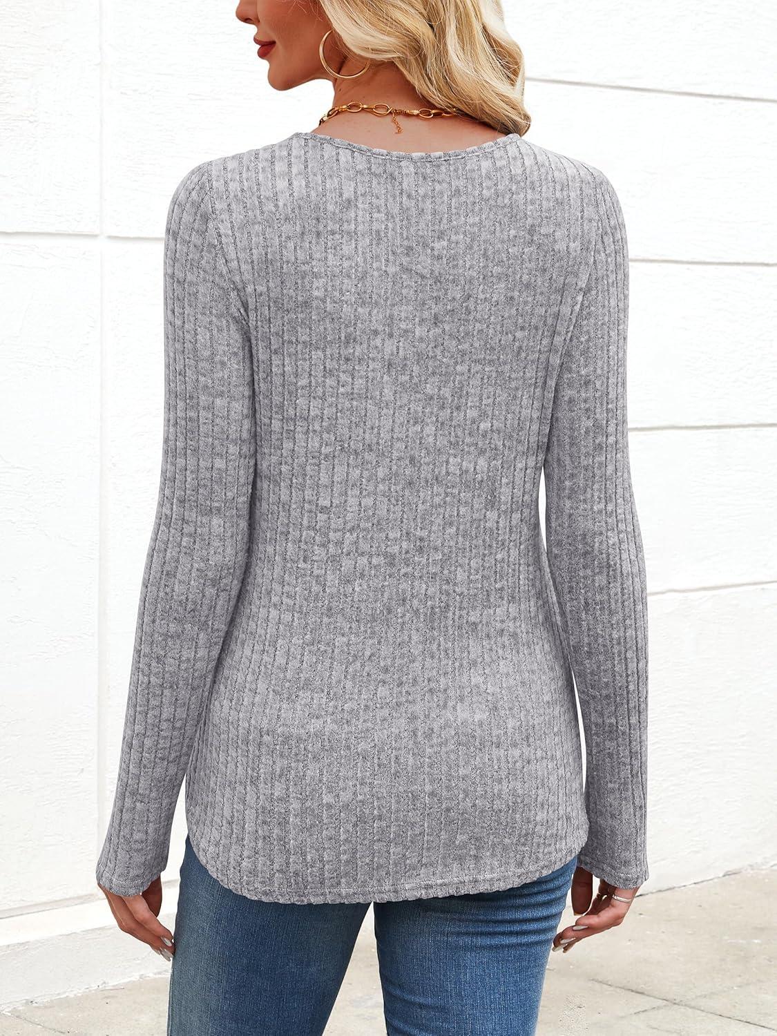 ANRABESS Womens Long Sleeve Shirts V Neck Lightweight Sweater Tops 2025 Fall Dressy Casual Work Tunic Blouse(Grey)