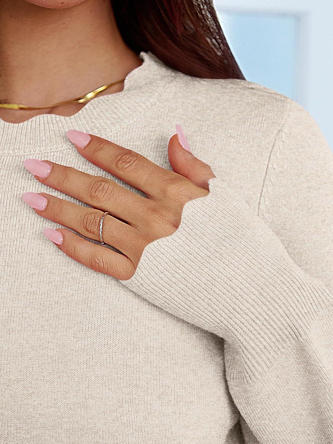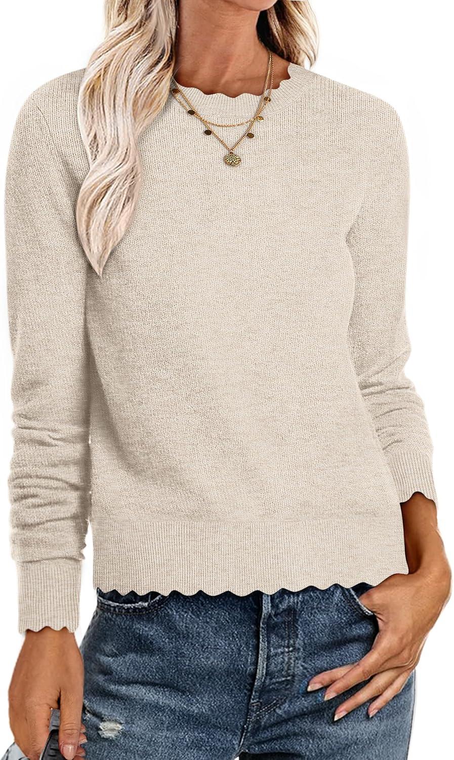 ANRABESS Womens Long Sleeve Sweaters Loose Fit Lightweight Scalloped Knit Soft Dressy Pullover Tops 2025 Fall Casual Outfits(Almond)
