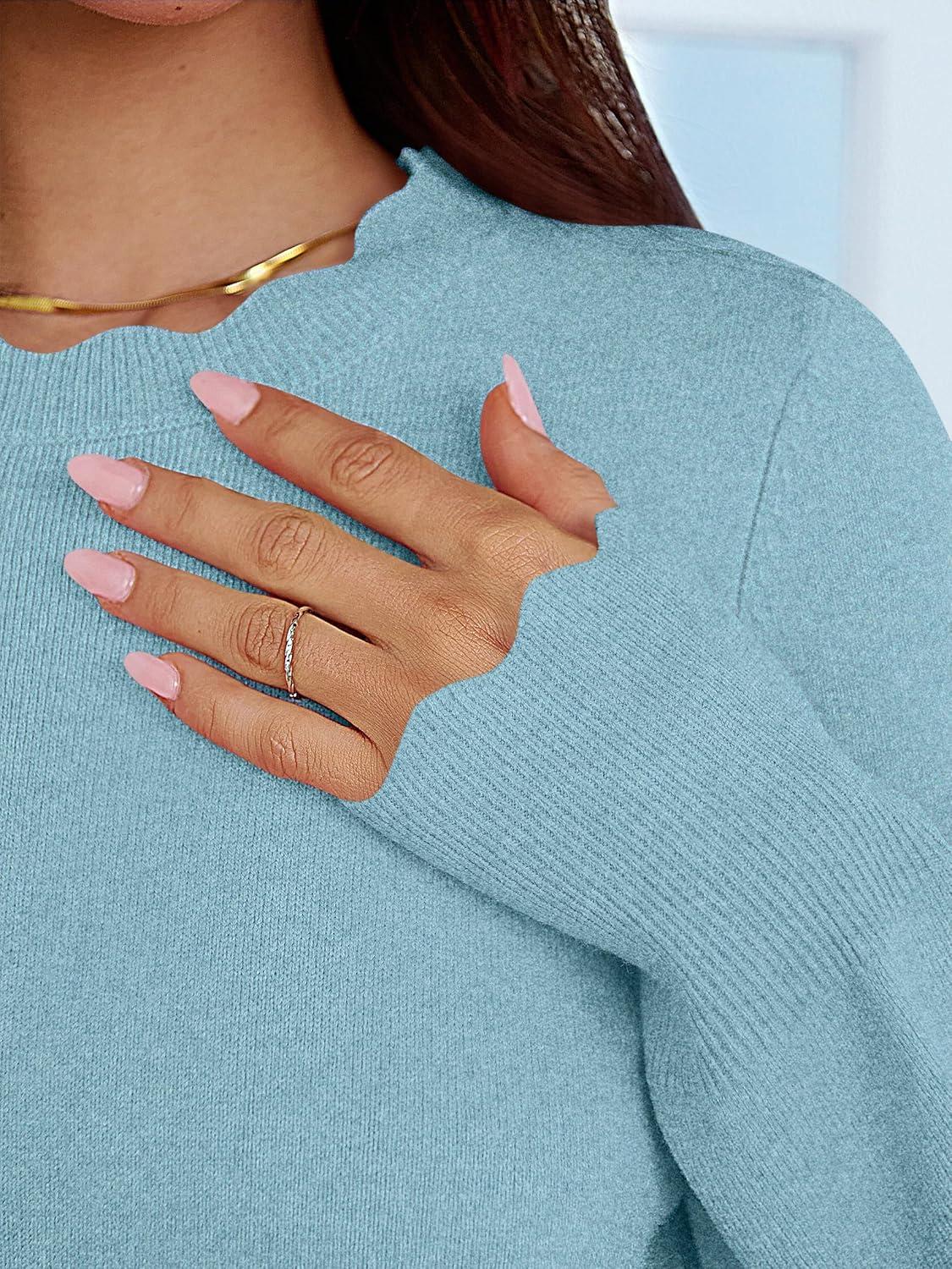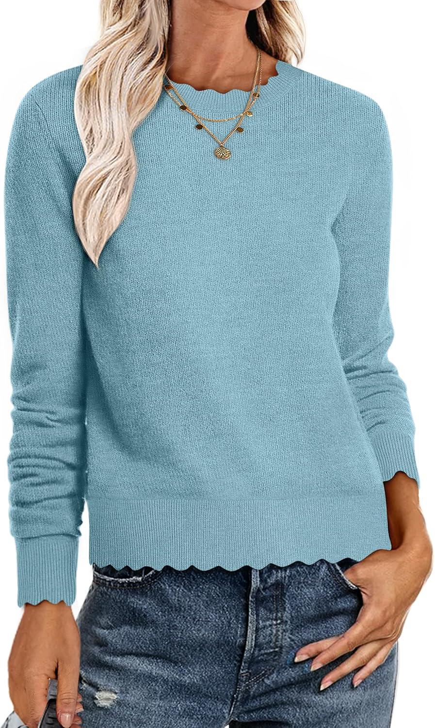 ANRABESS Womens Long Sleeve Sweaters Loose Fit Lightweight Scalloped Knit Soft Dressy Pullover Tops 2025 Fall Casual Outfits(Light Blue)