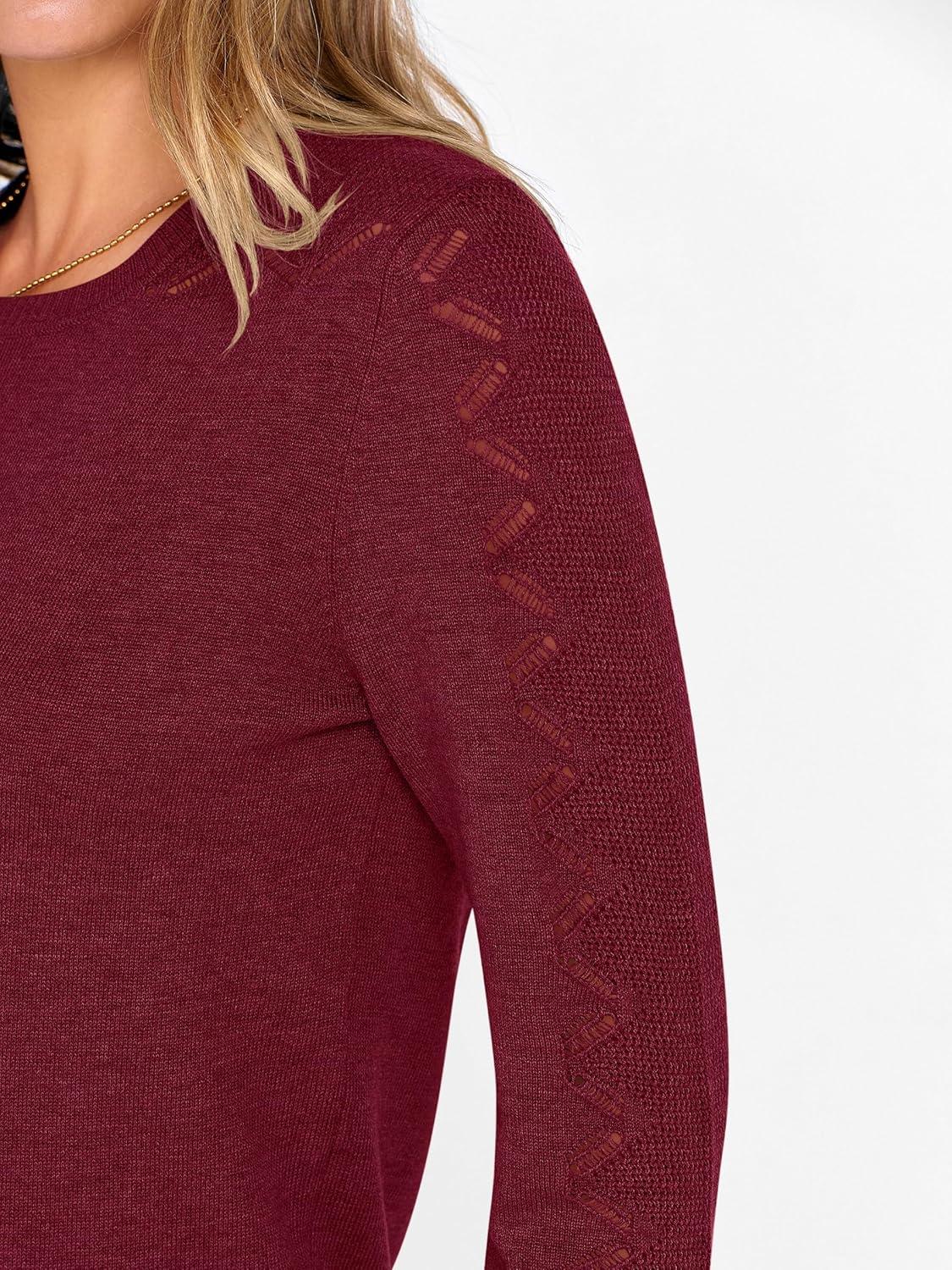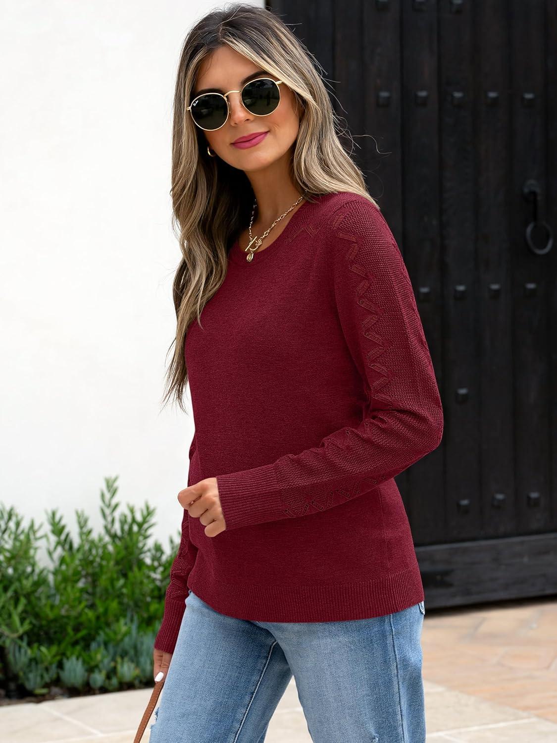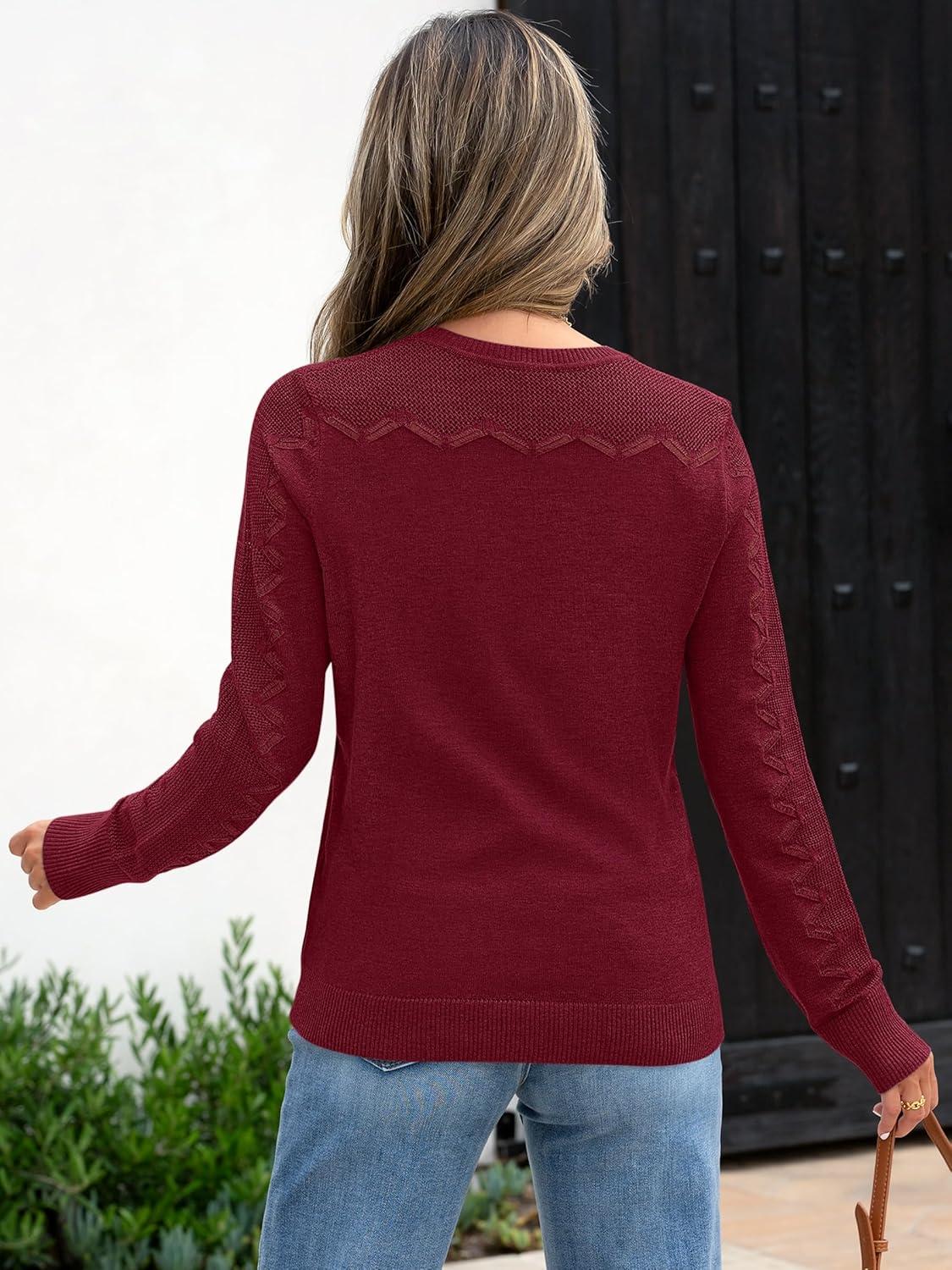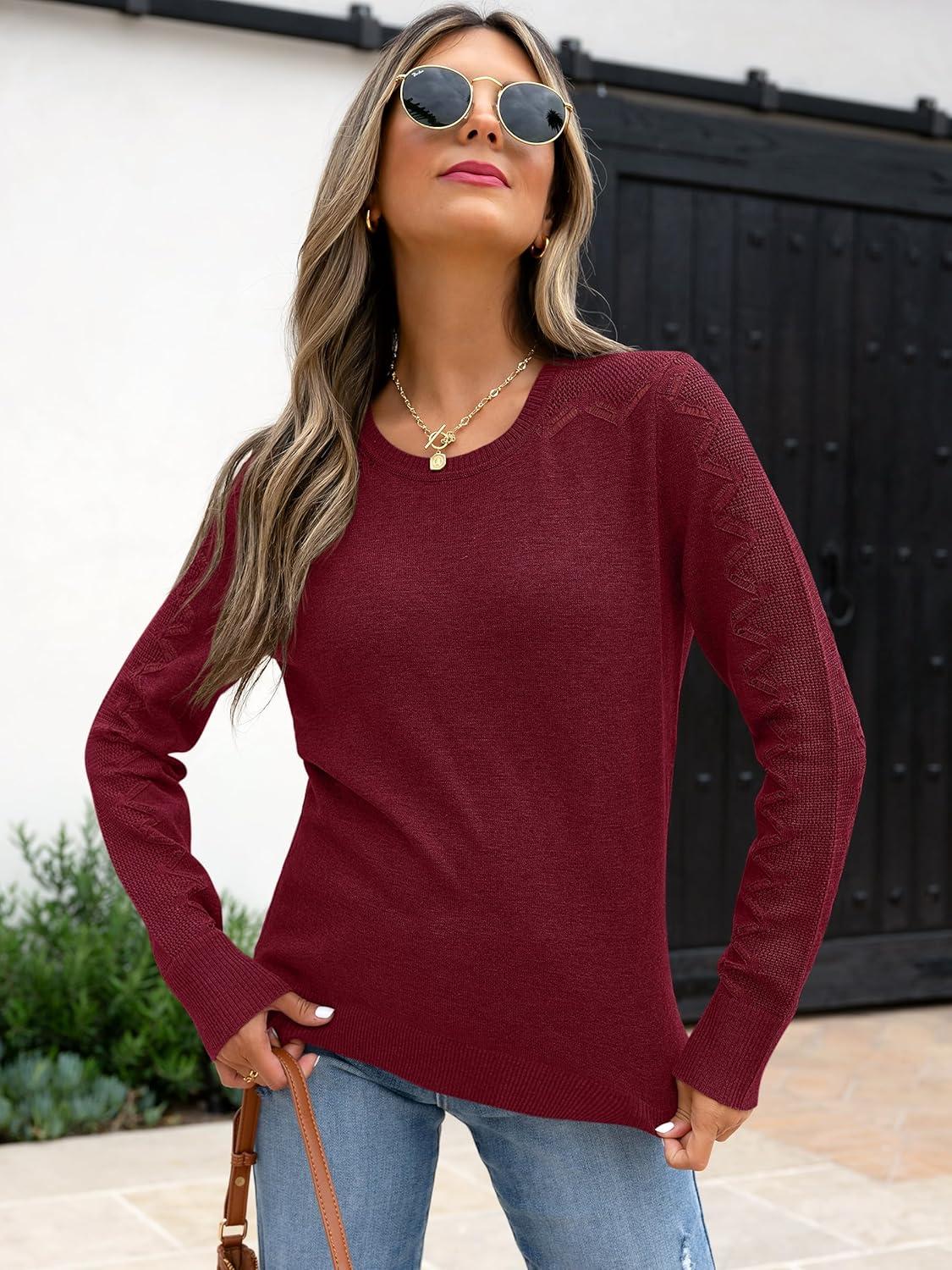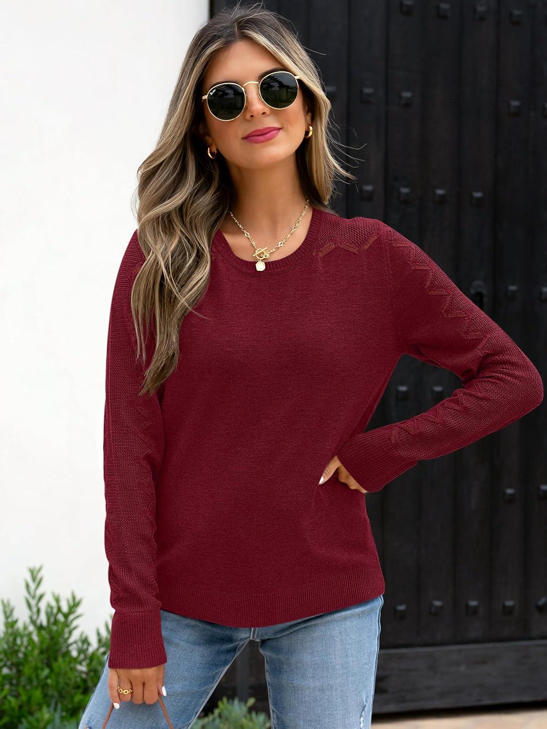 ANRABESS Womens Long Sleeve Sweaters Wool Blend Crew Neck Hollow Out Business Casual Work Tops 2025 Fall Outfits(Wine Red)