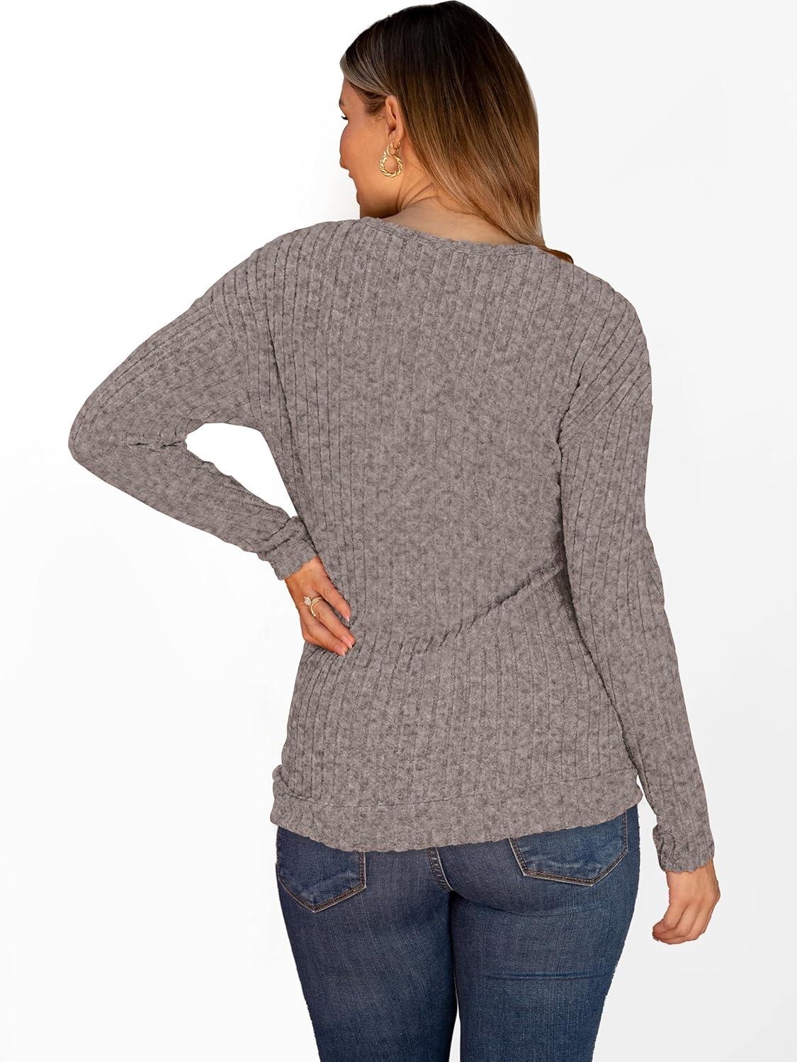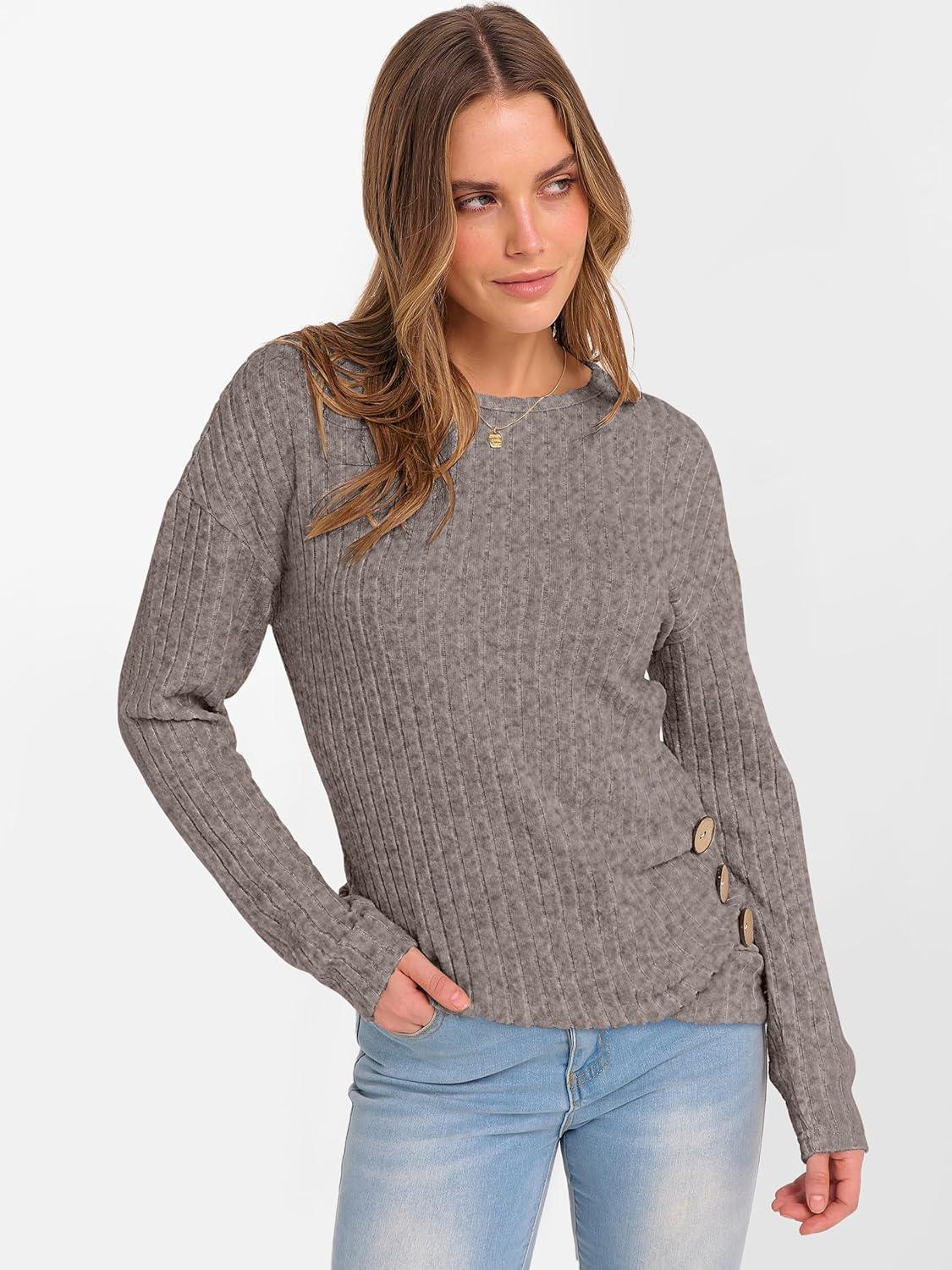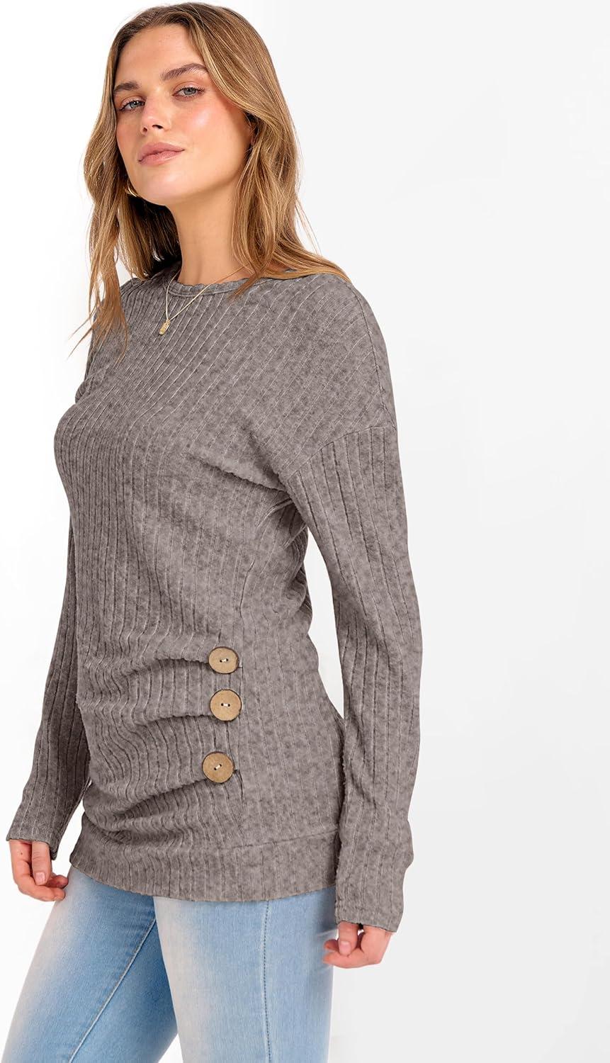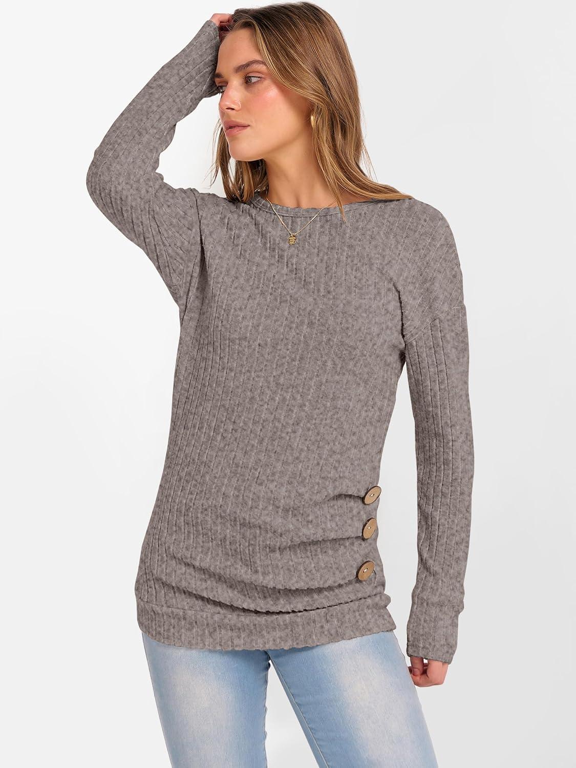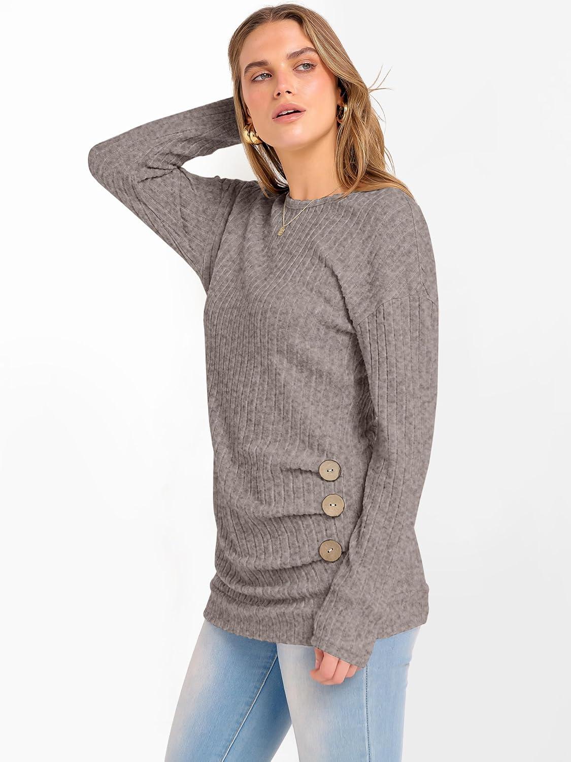 ANRABESS Womens Long Sleeve Tunic Top 2025 Fall Sweaters Lightweight Ribbed Knit Buttons Shirts Casual Work Outfits(Cool Ash Brown)