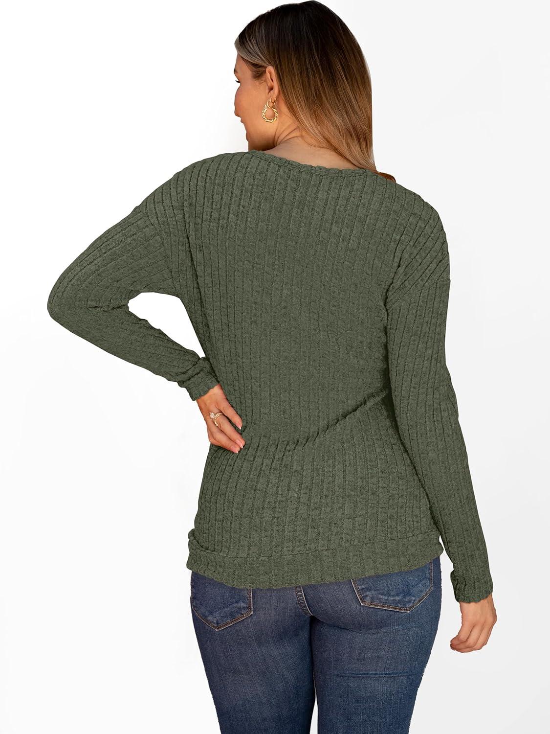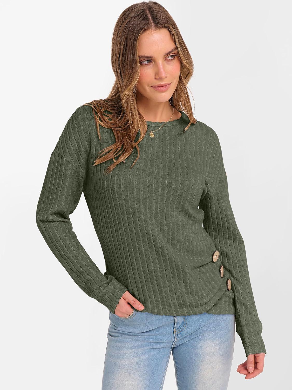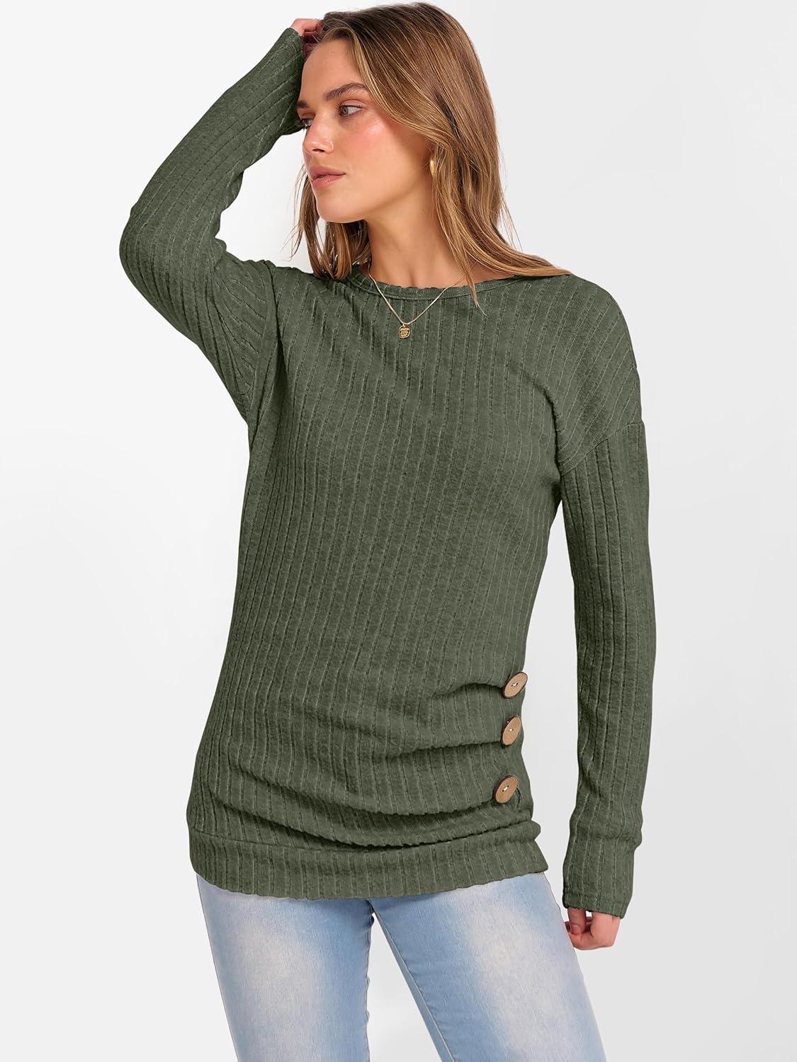 ANRABESS Womens Long Sleeve Tunic Top 2025 Fall Sweaters Lightweight Ribbed Knit Buttons Shirts Casual Work Outfits(Deep Green)