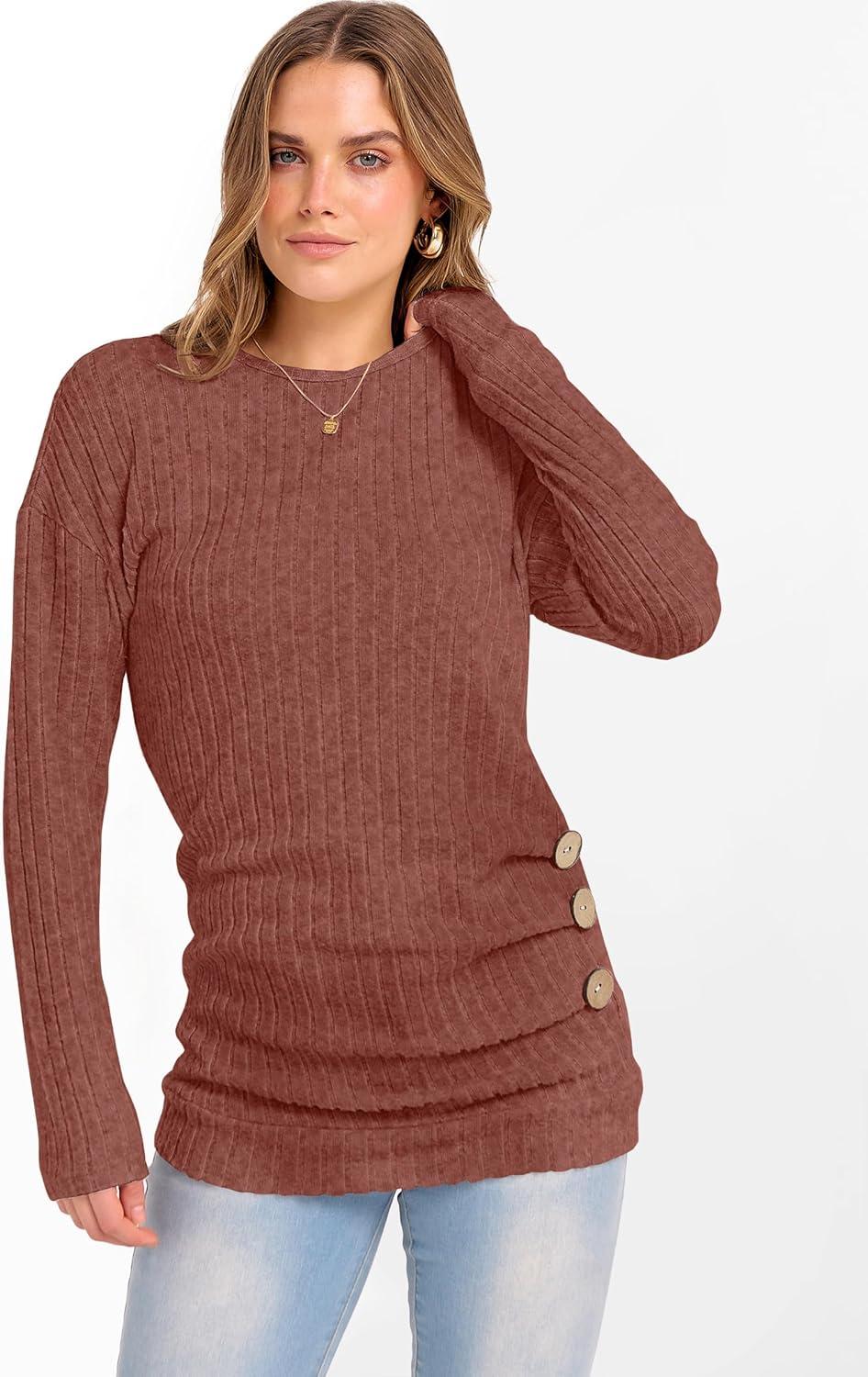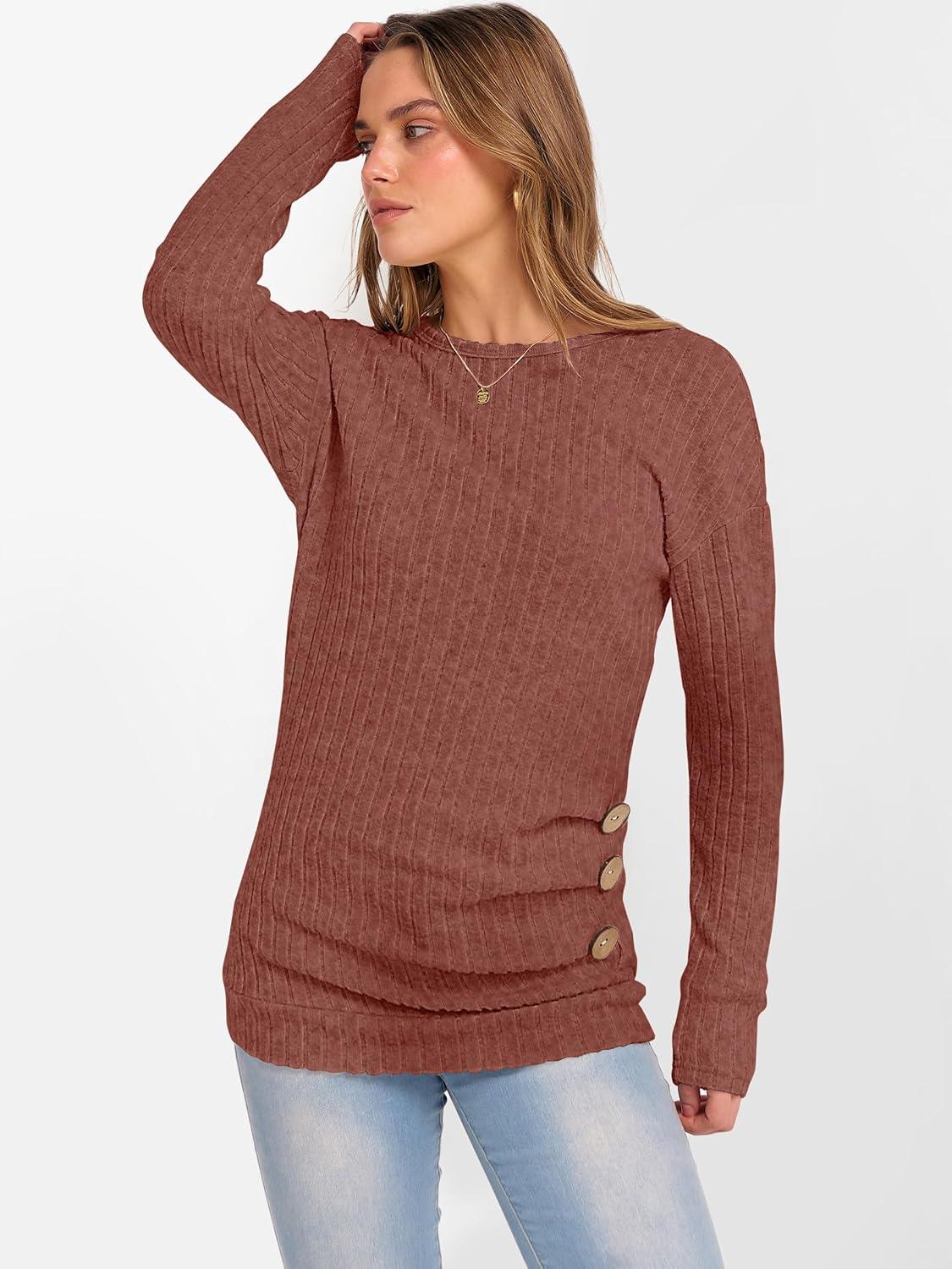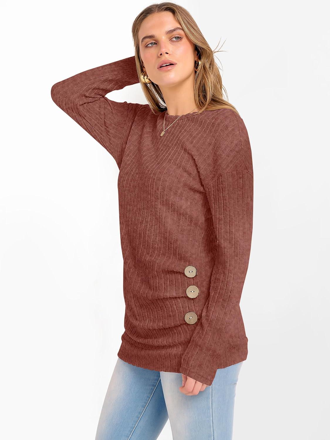 ANRABESS Womens Long Sleeve Tunic Top 2025 Fall Sweaters Lightweight Ribbed Knit Buttons Shirts Casual Work Outfits(Rust Orange)