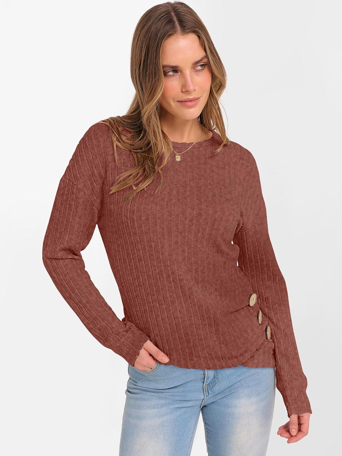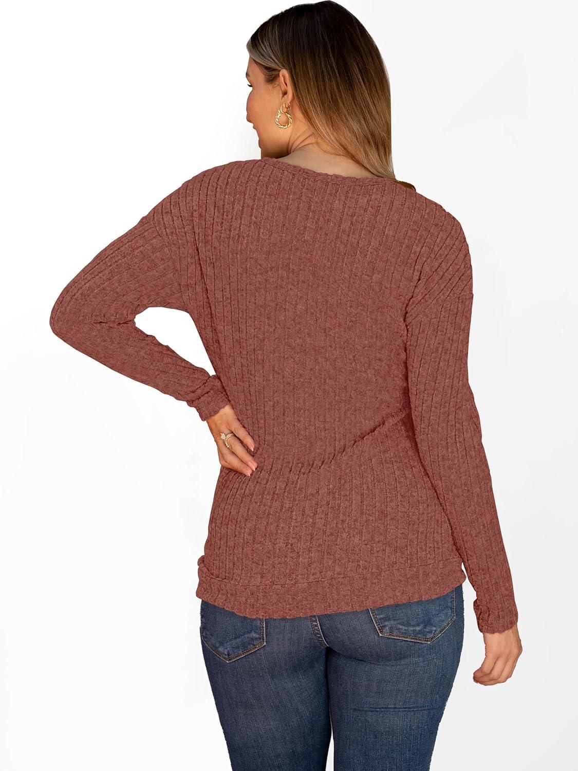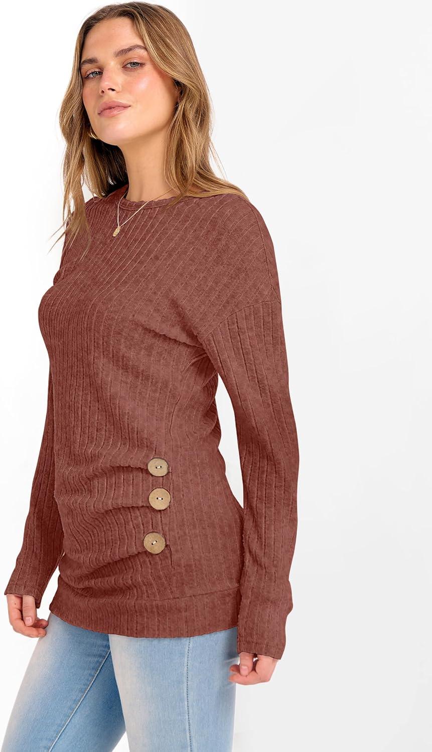 ANRABESS Womens Long Sleeve Tunic Top 2025 Fall Sweaters Lightweight Ribbed Knit Buttons Shirts Casual Work Outfits(Rust Orange)
