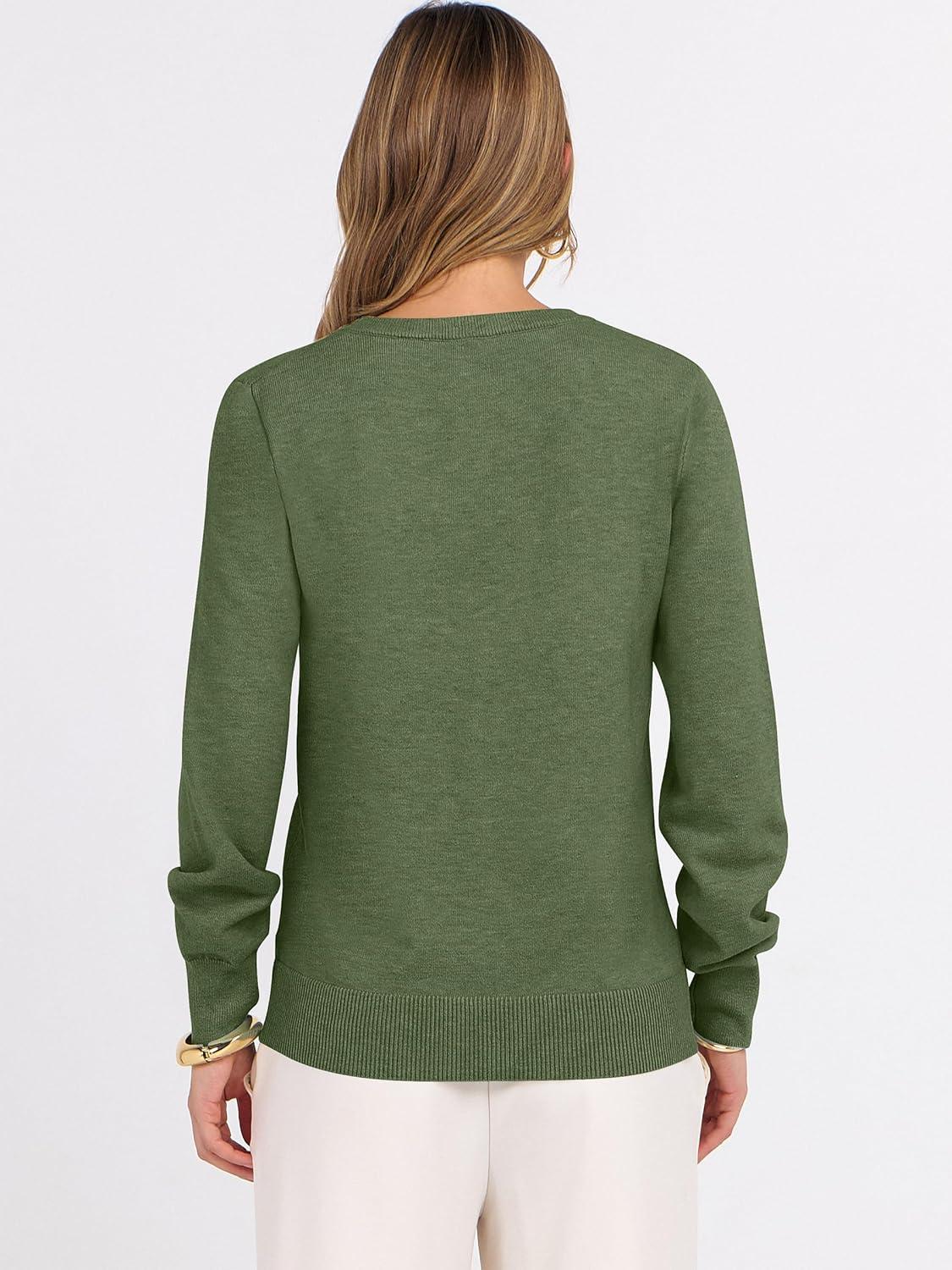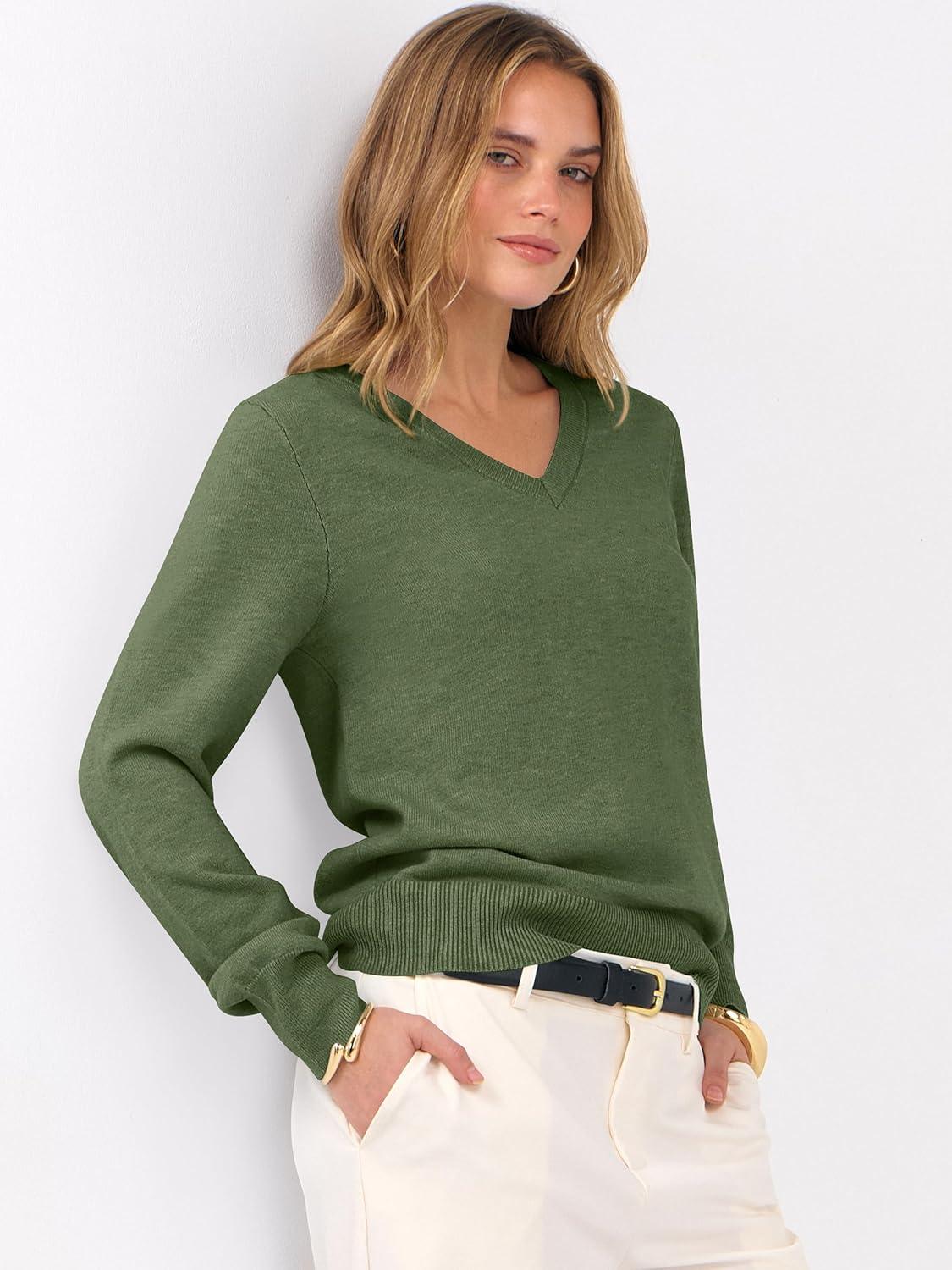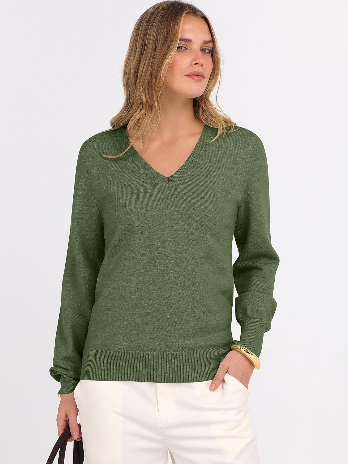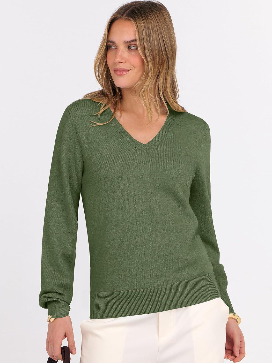 ANRABESS Womens Long Sleeve V Neck Sweaters 2025 Fall Casual Classic Soft Loose Fit Basic Pullover Jumper Top(Army Green)