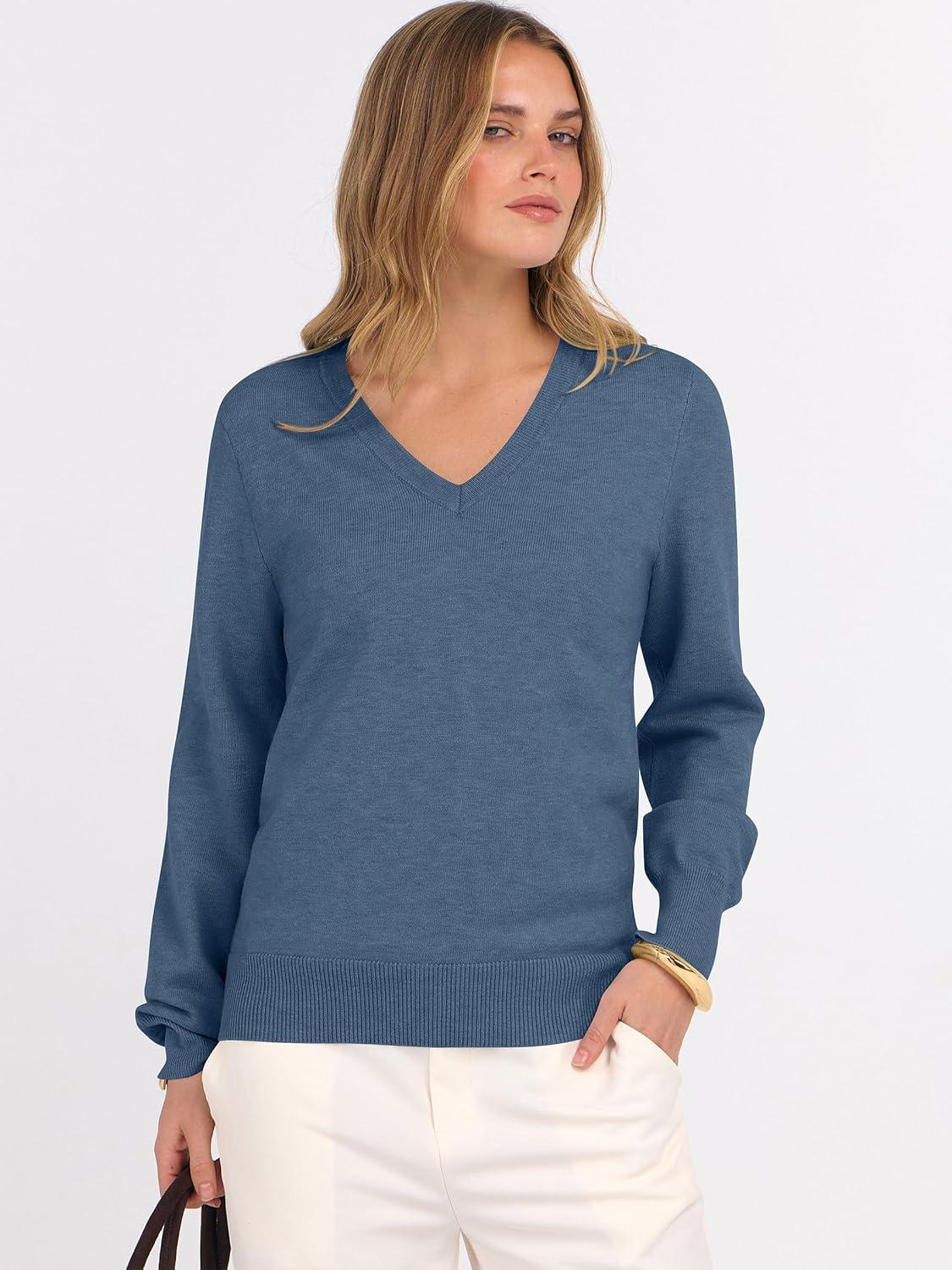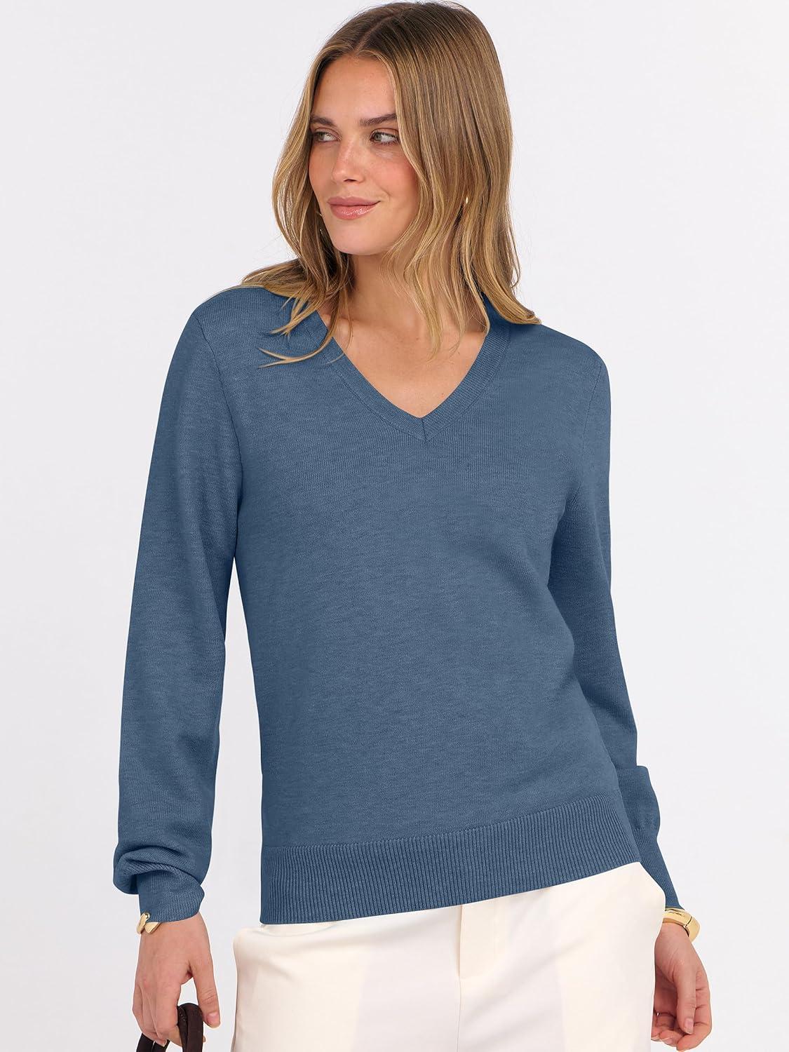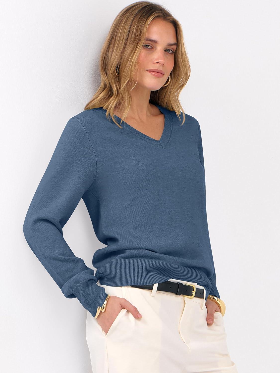 ANRABESS Womens Long Sleeve V Neck Sweaters 2025 Fall Casual Classic Soft Loose Fit Basic Pullover Jumper Top(Deep Blue)