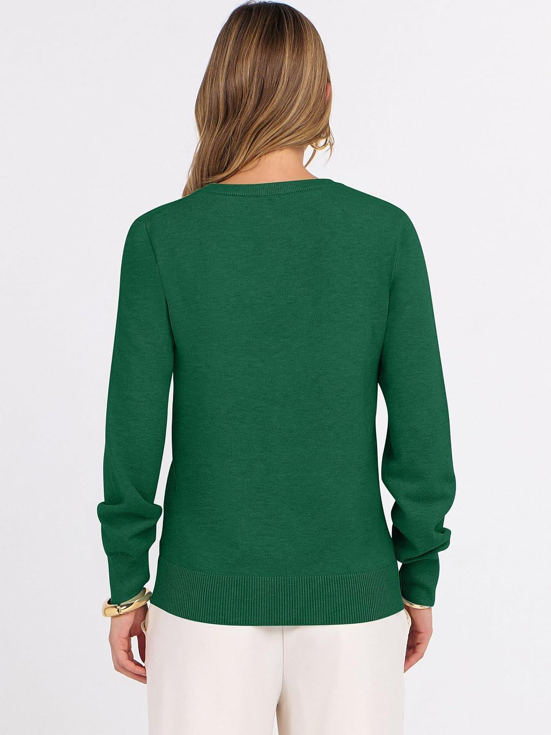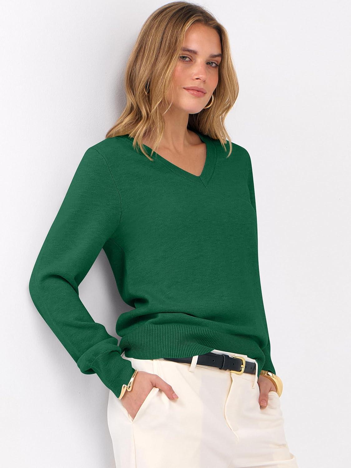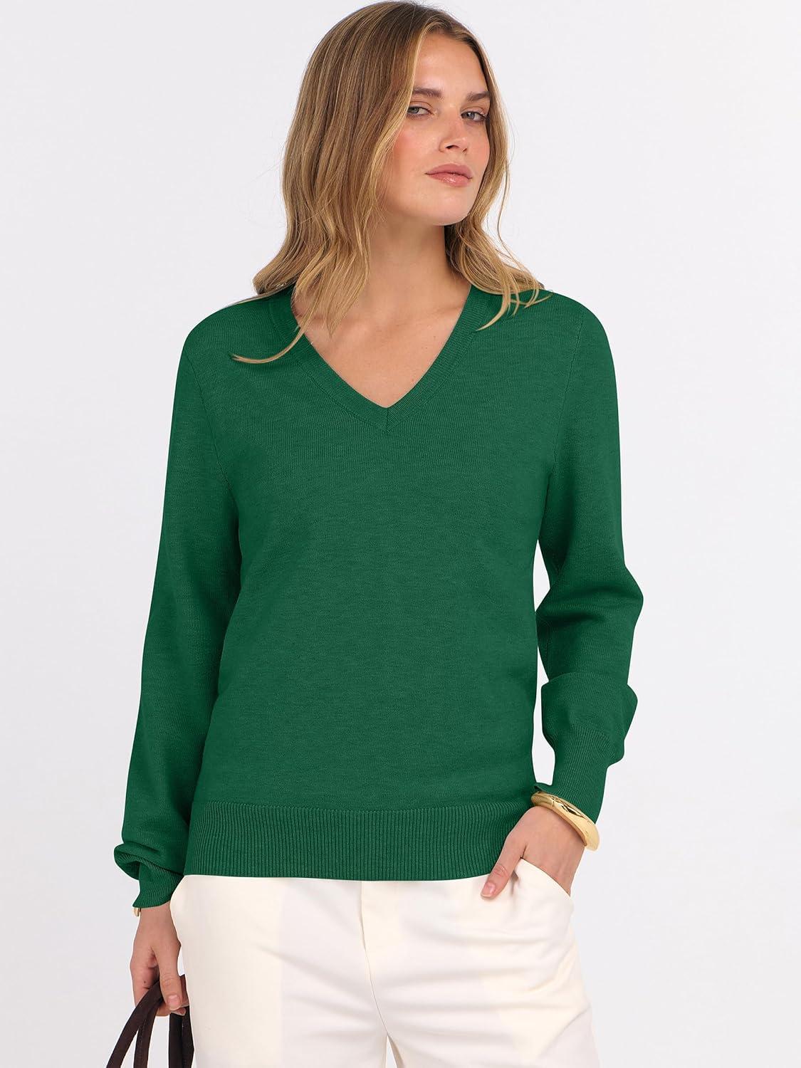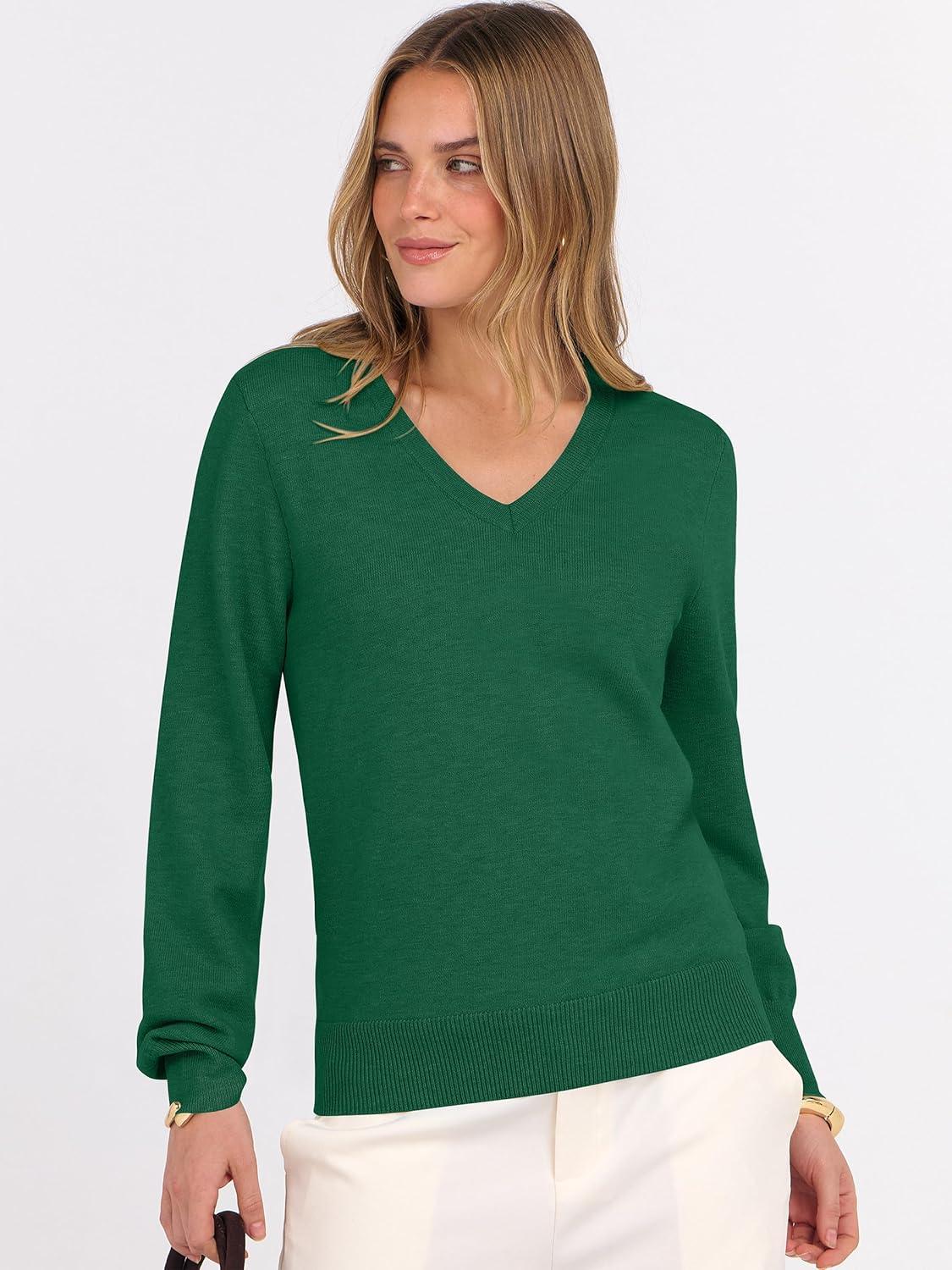 ANRABESS Womens Long Sleeve V Neck Sweaters 2025 Fall Casual Classic Soft Loose Fit Basic Pullover Jumper Top(Forest Green)