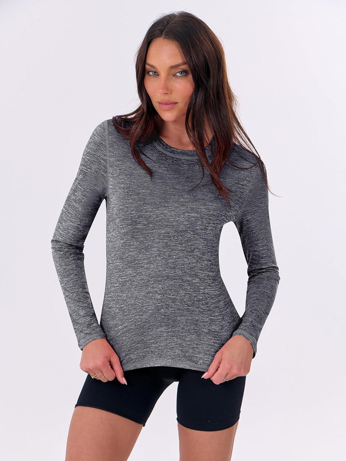 ANRABESS Womens Long Sleeve Workout Quick Dry Fitted Yoga Gym Athletic Shirts(Black)