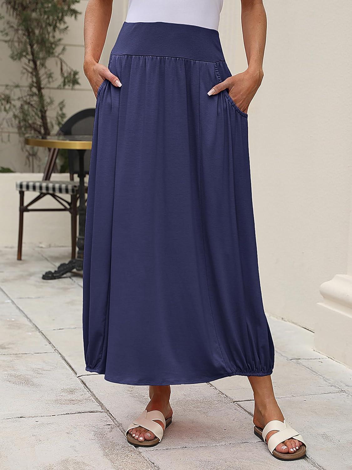 ANRABESS Women’s Maxi Skirts 2025 Fall Trendy Ankle Length High Waisted Boho Flowy Beach Long Skirt with Pockets Fashion(Navy Blue)
