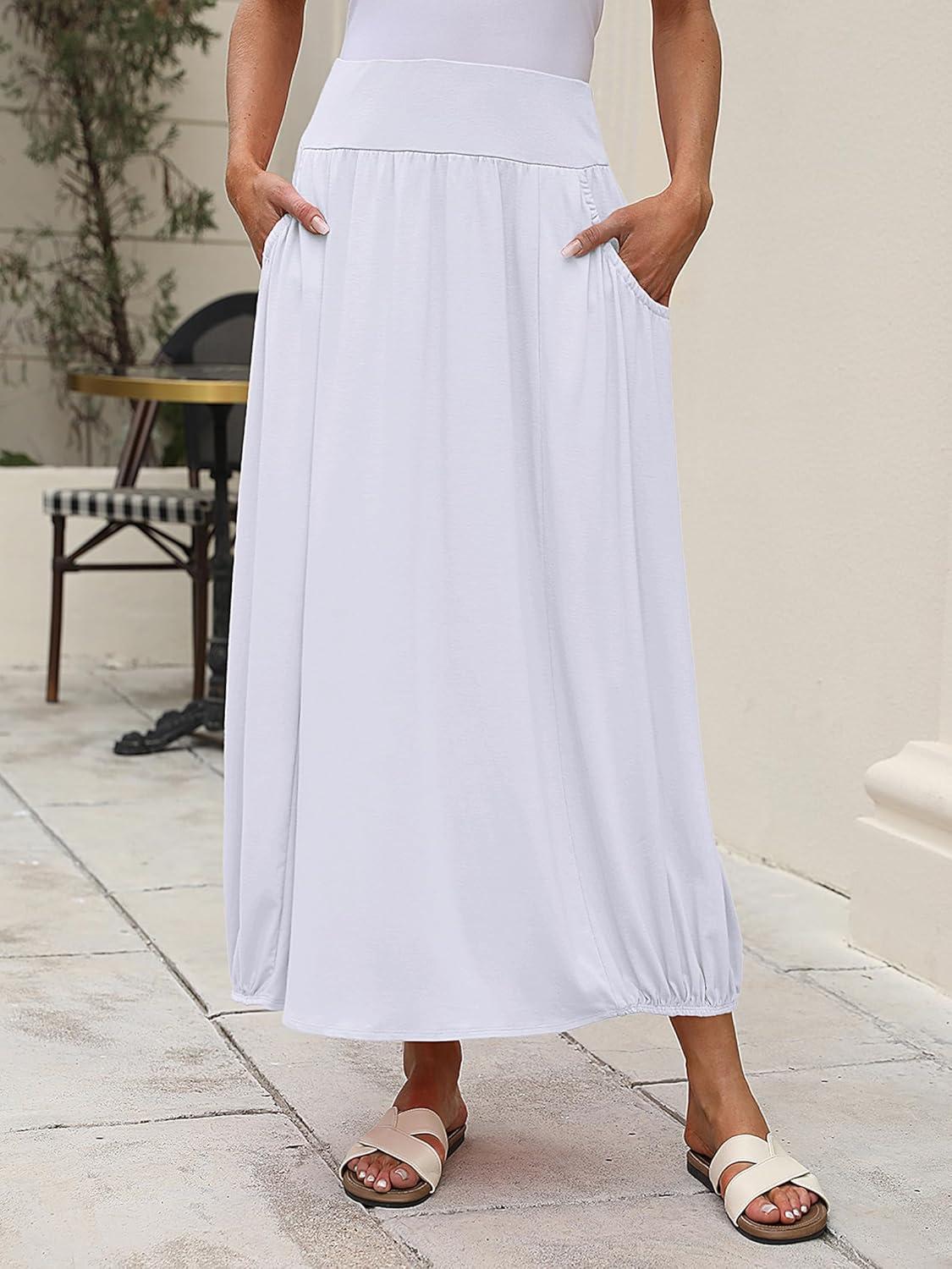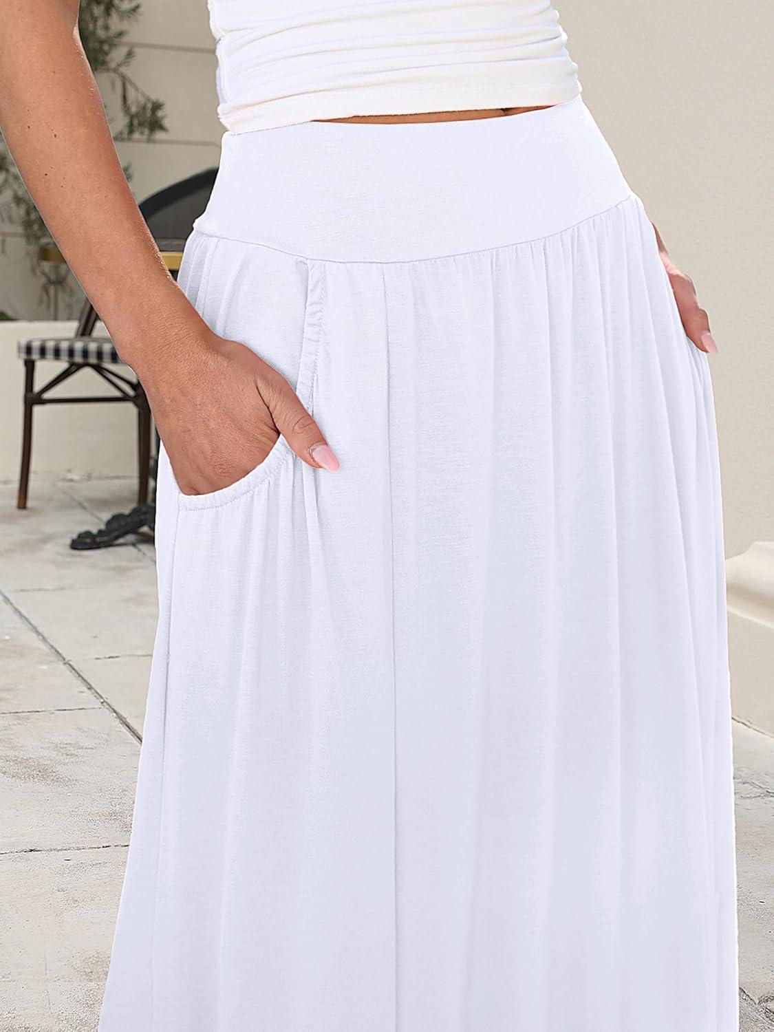 ANRABESS Women’s Maxi Skirts 2025 Fall Trendy Ankle Length High Waisted Boho Flowy Beach Long Skirt with Pockets Fashion(White)