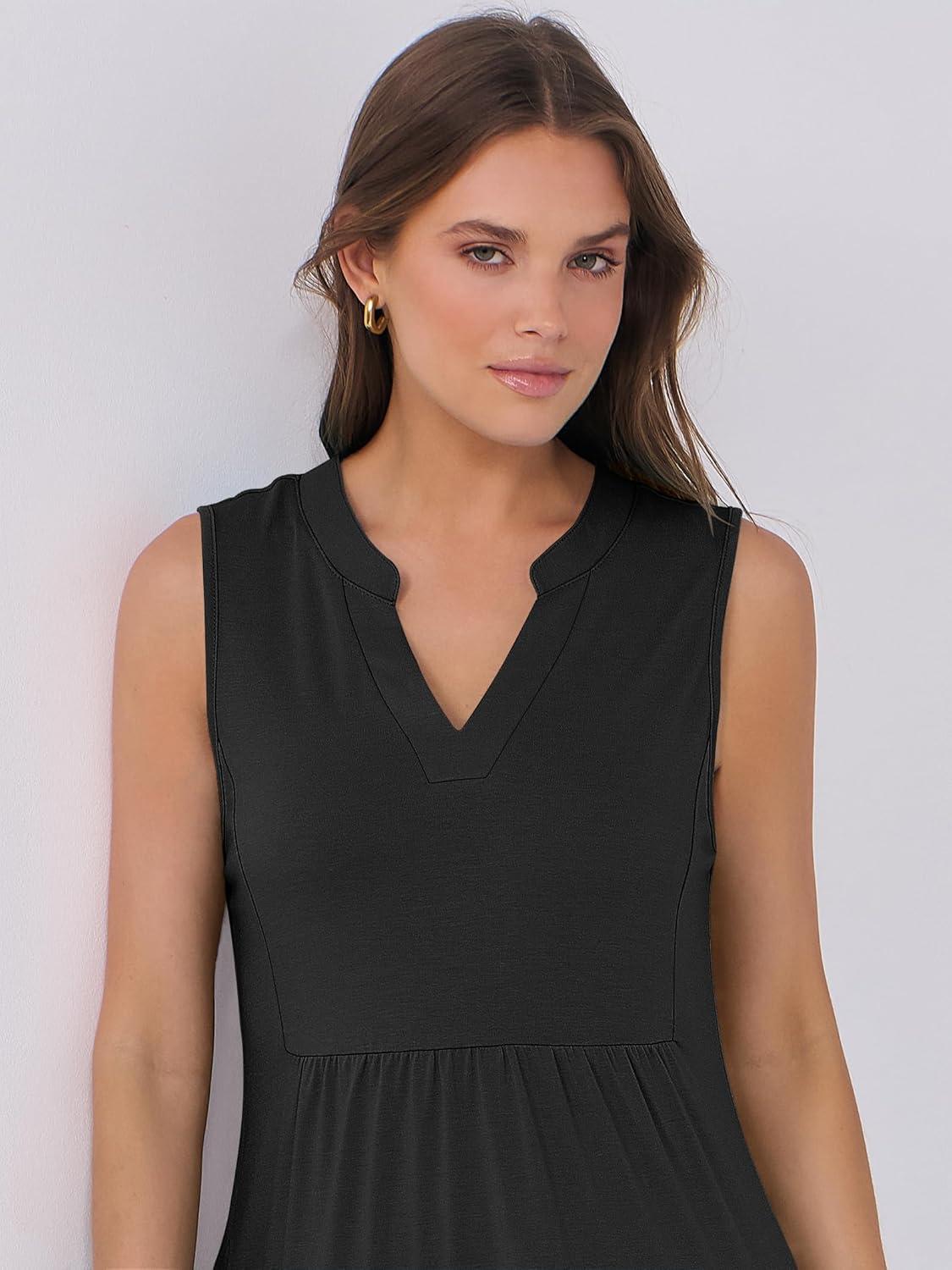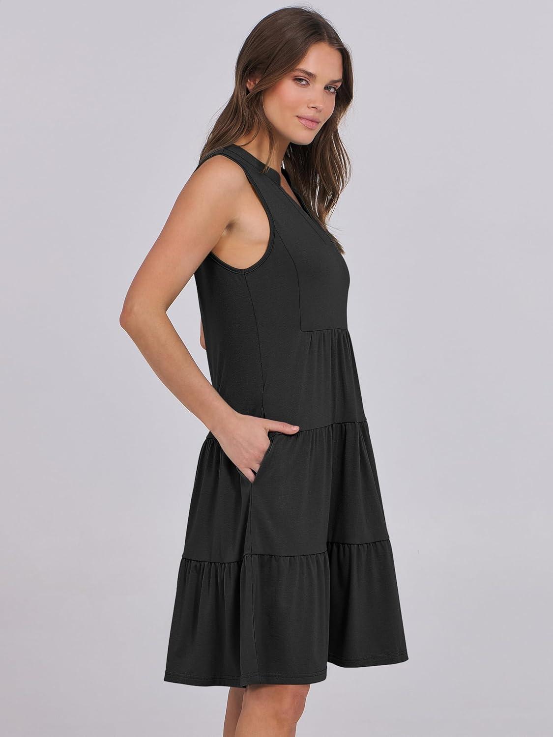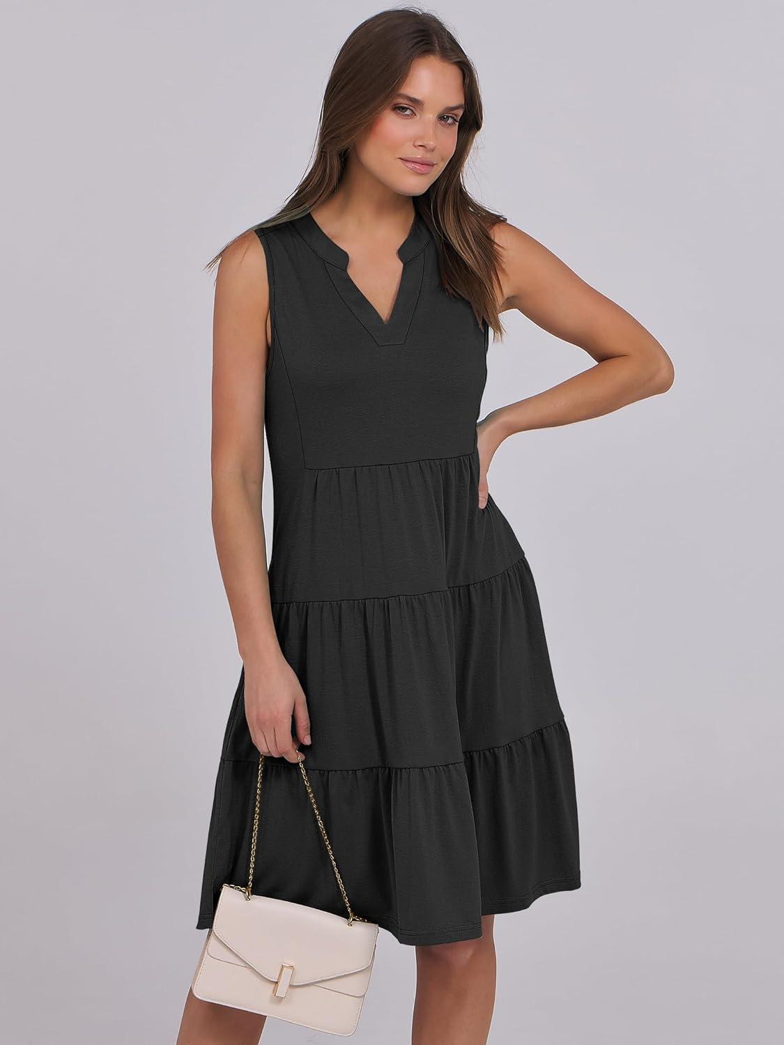 ANRABESS Womens Mini Dresses Sleeveless V Neck Tiered Swing Going Out Beach Vacation Sundress 2025 Summer Casual Outfits(Black)
