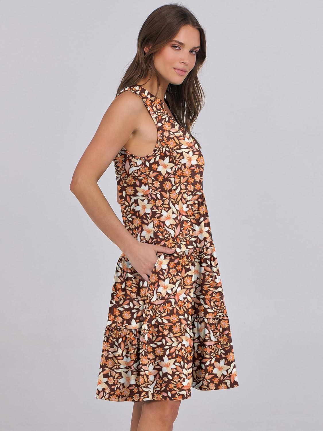 ANRABESS Womens Mini Dresses Sleeveless V Neck Tiered Swing Going Out Beach Vacation Sundress 2025 Summer Casual Outfits(Gradient Orange Floral)