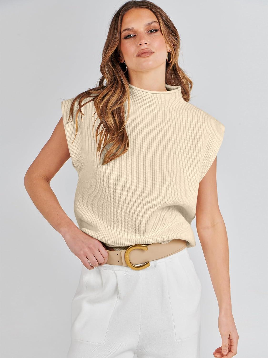 Be the first to review “ANRABESS Women’s Mock Neck Sleeveless Sweater Vest Casual Cap Sleeve Knit Pullover Tank Tops 2025 Fall Clothes(Apricot)”