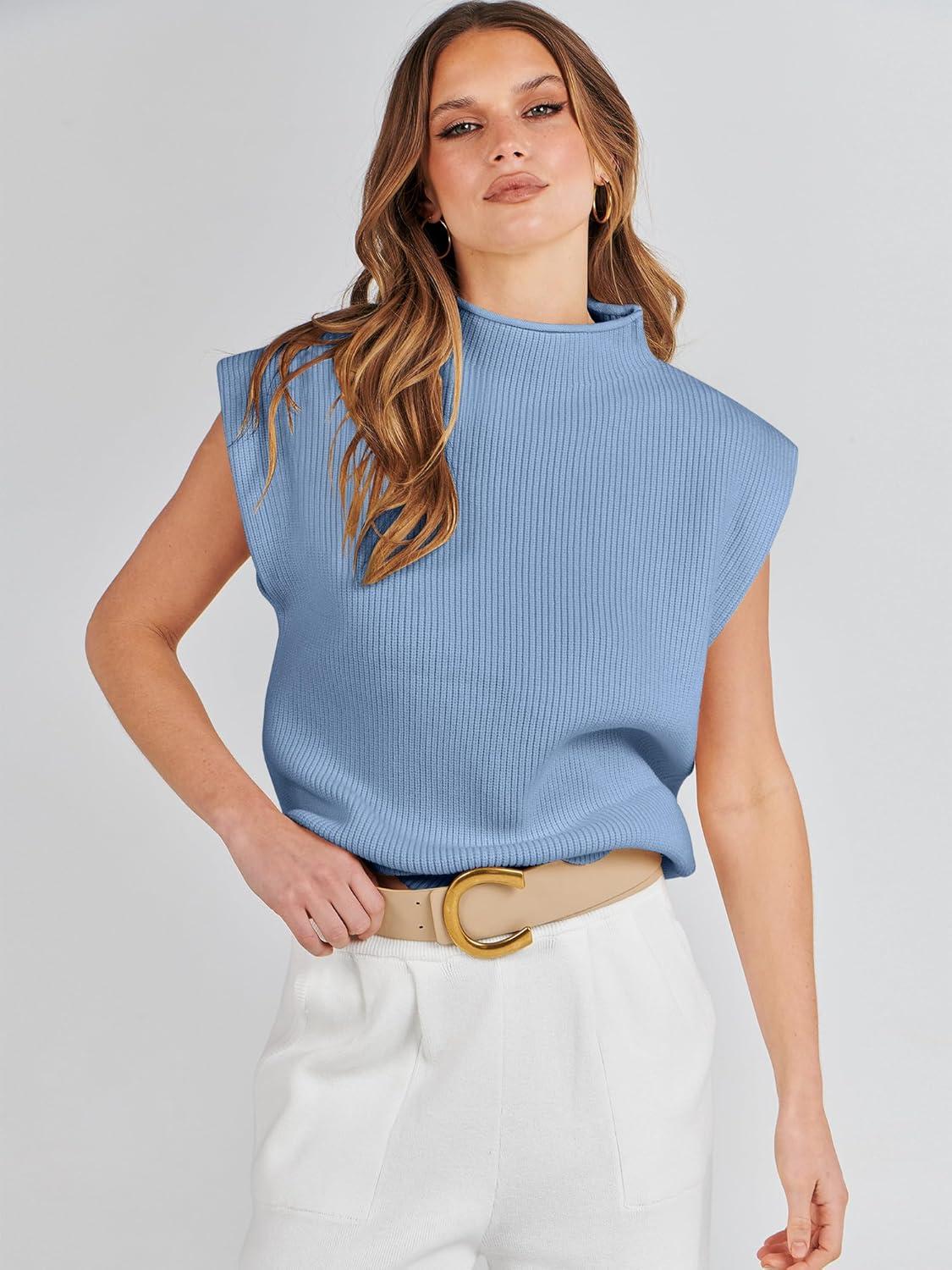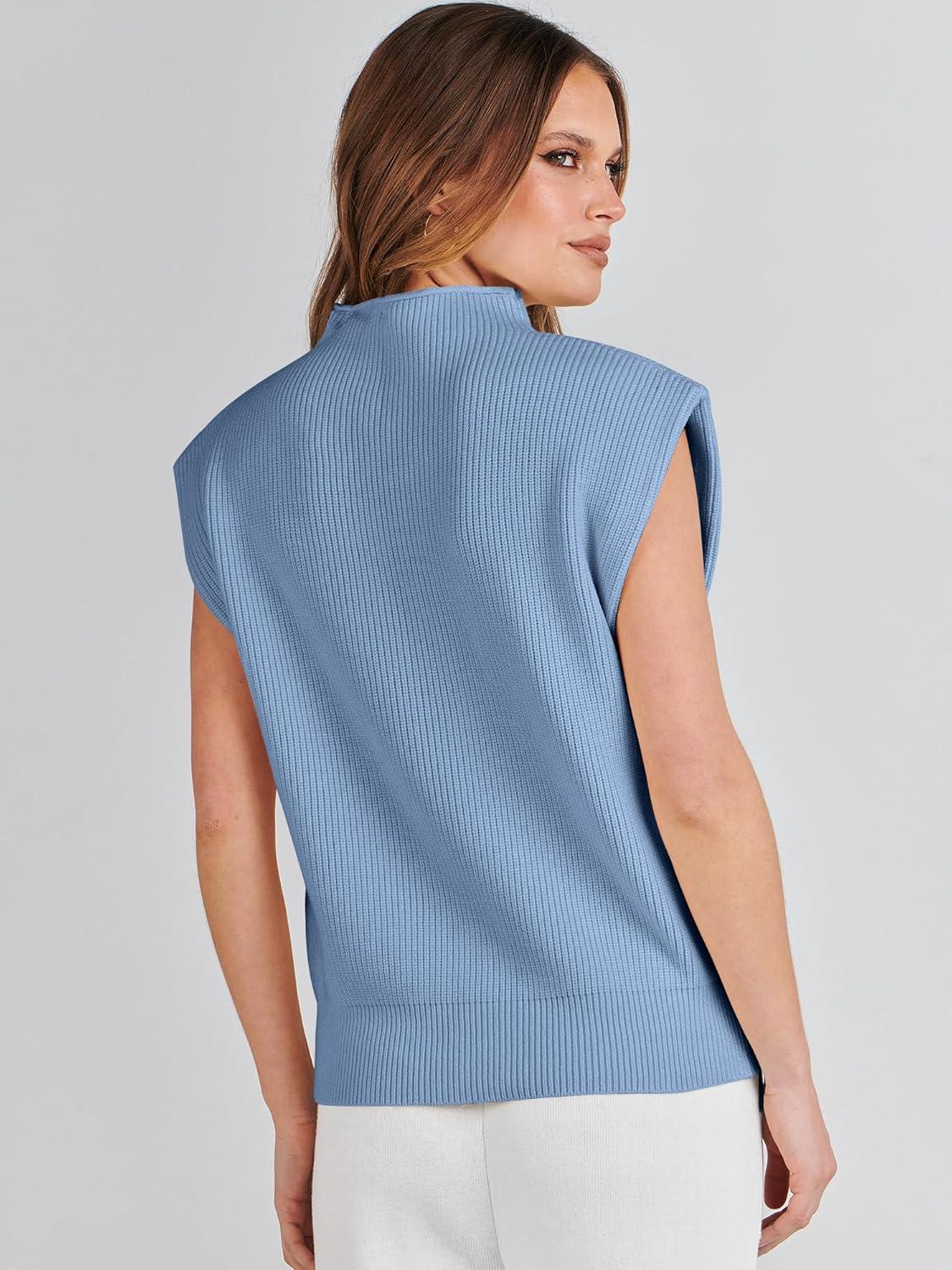 ANRABESS Women’s Mock Neck Sleeveless Sweater Vest Casual Cap Sleeve Knit Pullover Tank Tops 2025 Fall Clothes(Blue)