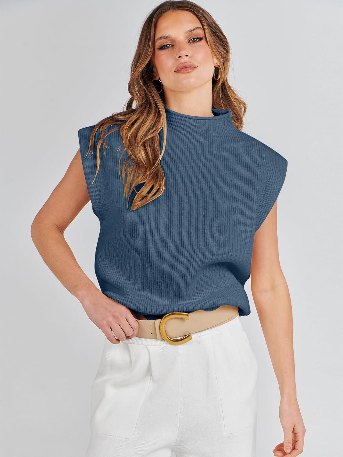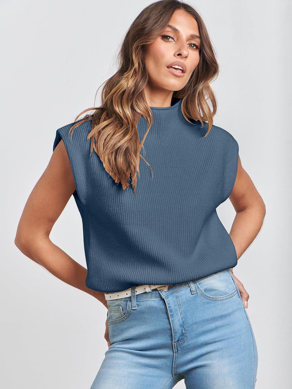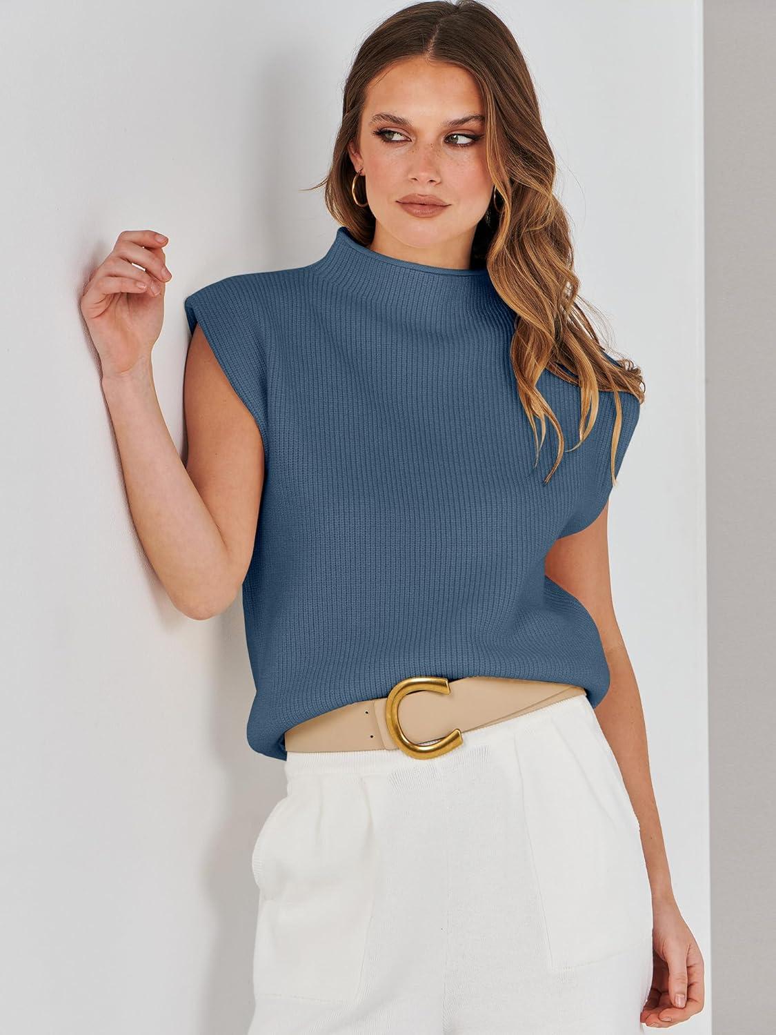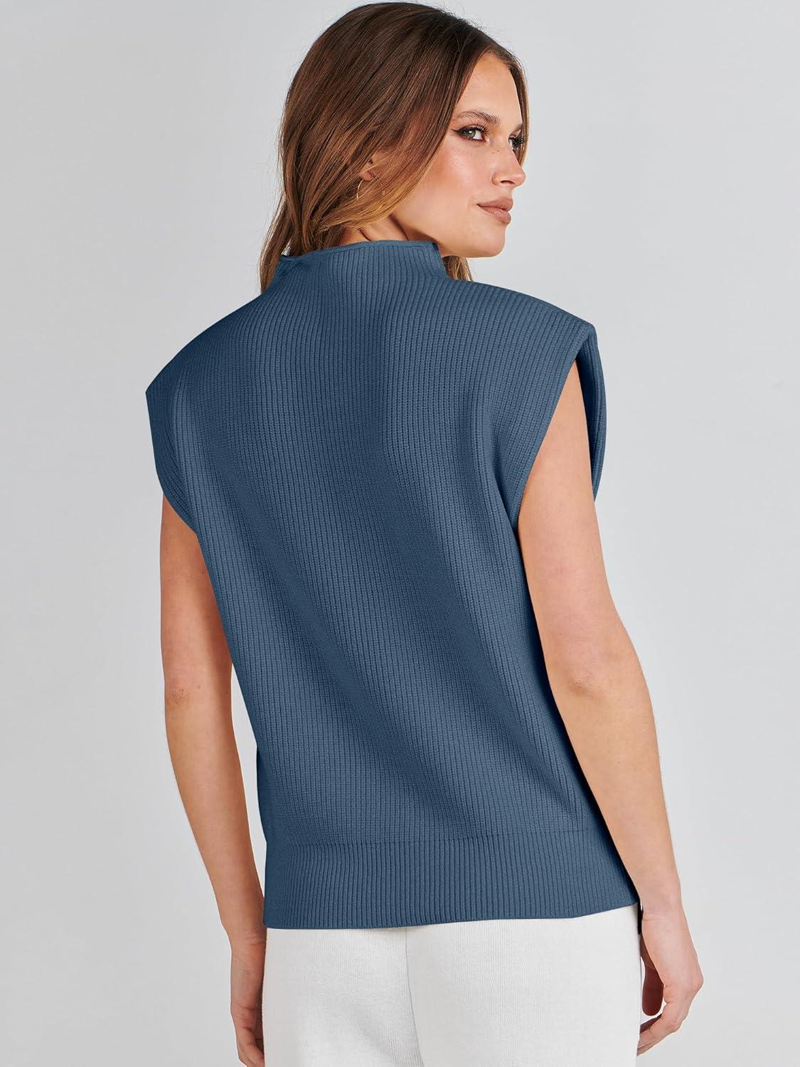 ANRABESS Women’s Mock Neck Sleeveless Sweater Vest Casual Cap Sleeve Knit Pullover Tank Tops 2025 Fall Clothes(Navy Blue)