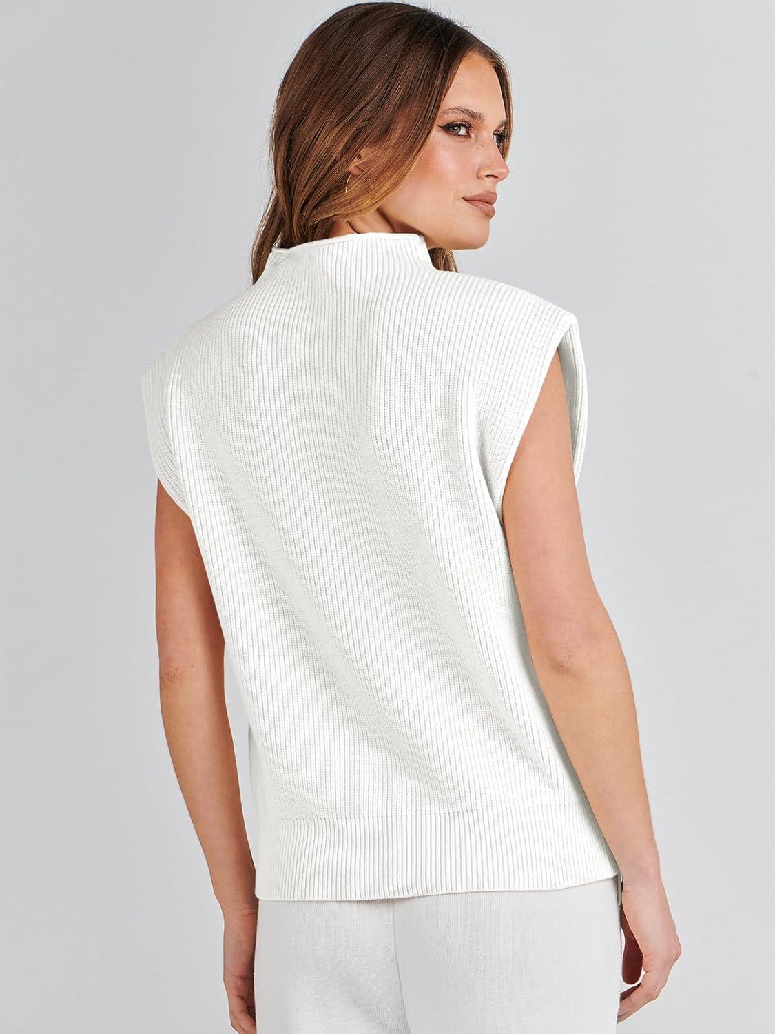 ANRABESS Women’s Mock Neck Sleeveless Sweater Vest Casual Cap Sleeve Knit Pullover Tank Tops 2025 Fall Clothes(White)