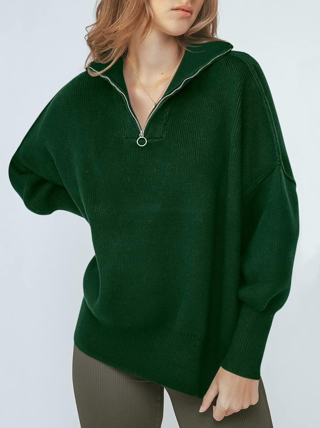 ANRABESS Women’s Oversized Fashion Long Sleeve Quarter Zip Baggy Loose Slouchy Sweater Pullover Tops 2025 Fall Outfits(Dark Green)