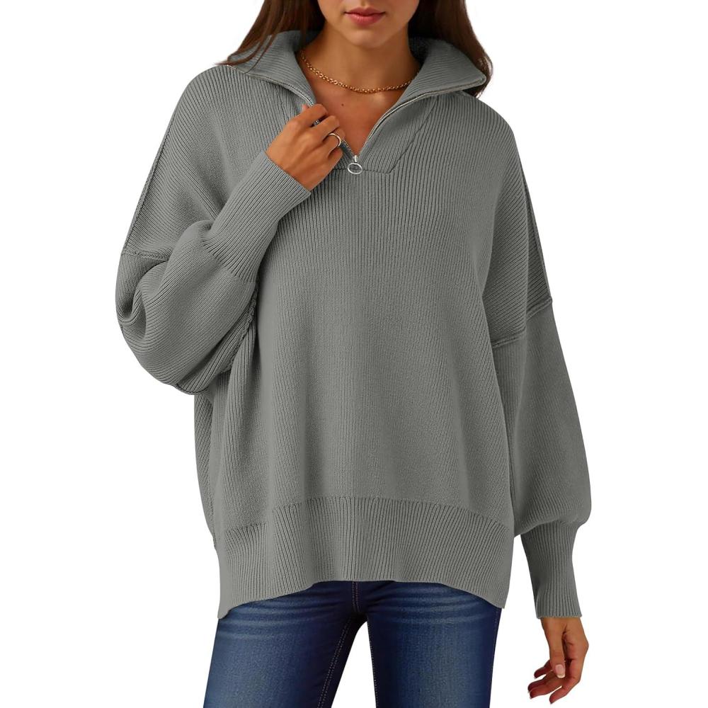ANRABESS Women’s Oversized Fashion Long Sleeve Quarter Zip Baggy Loose Slouchy Sweater Pullover Tops 2025 Fall Outfits(Deep Gray)