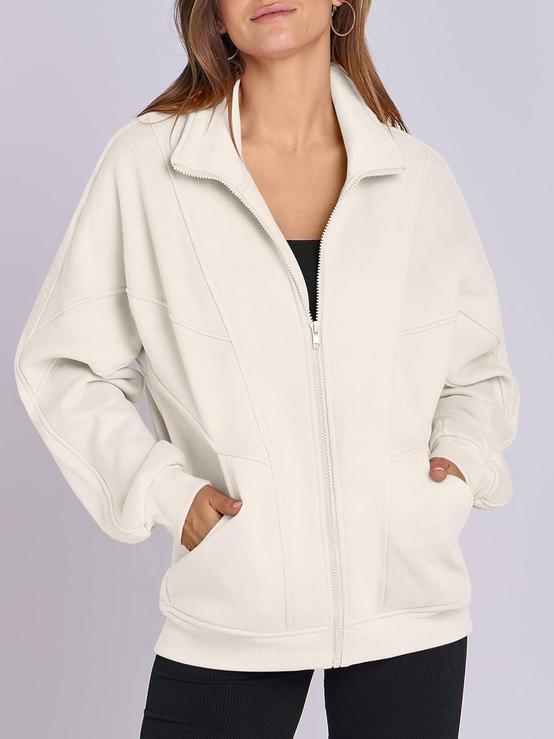 ANRABESS Women’s Oversized Full Zip Up Sweatshirts Jacket 2025 Fall Fleece Long Sleeve Hoodies Outfits(Beige)